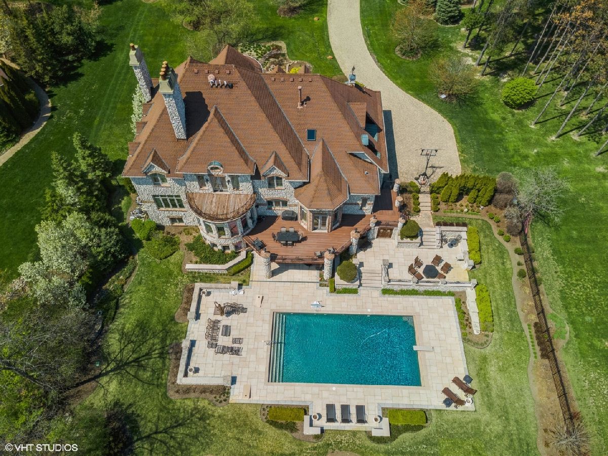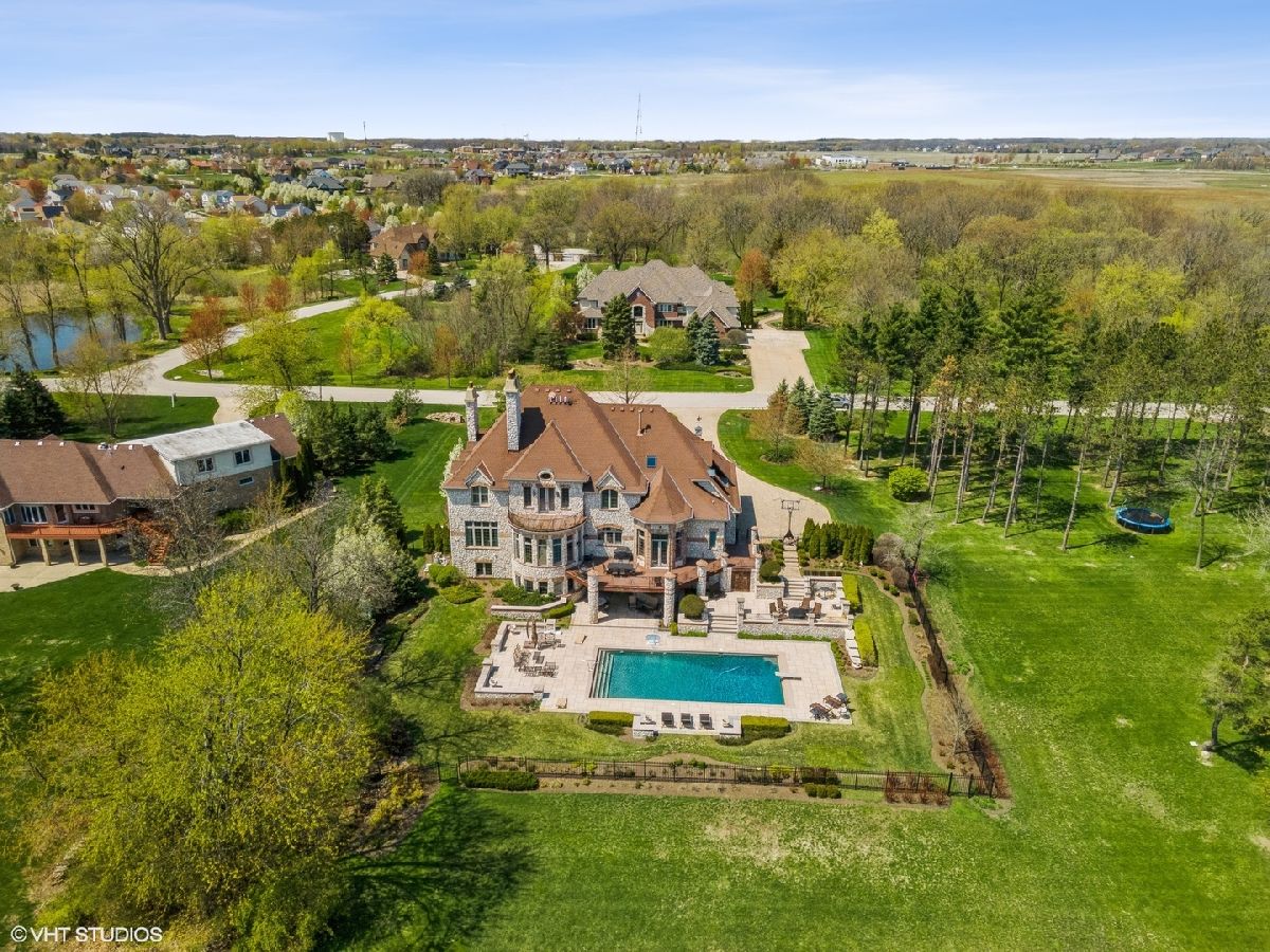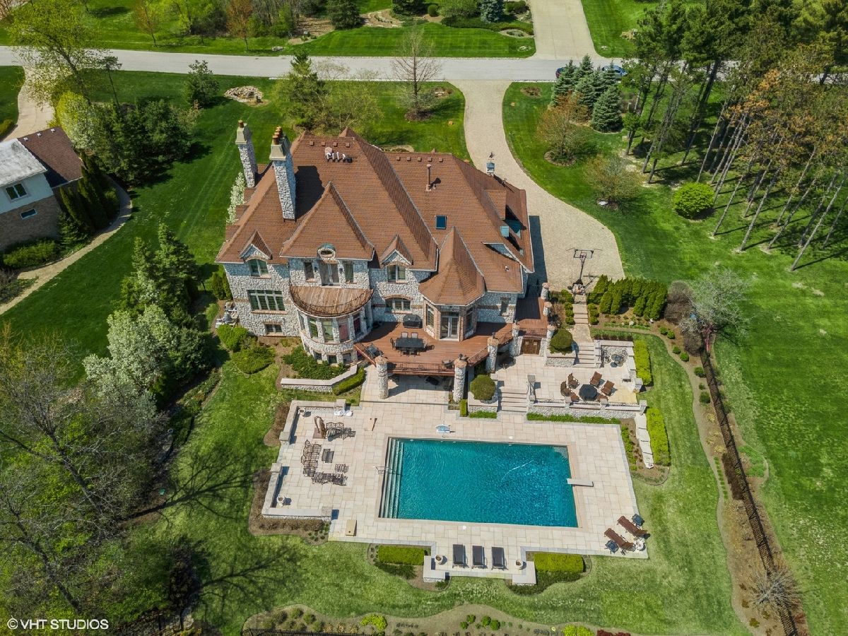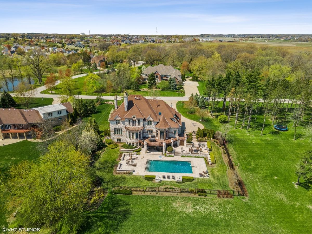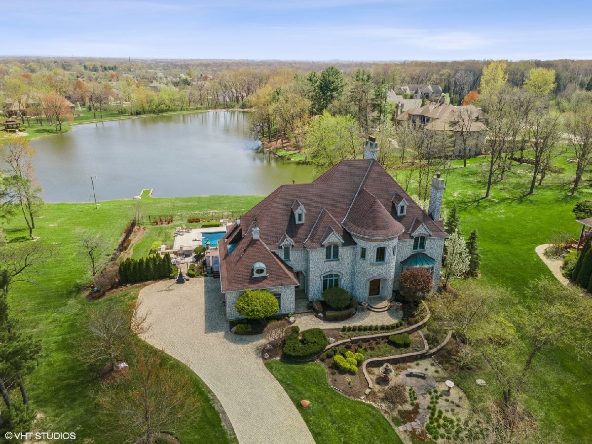 Exceptional Custom stone home truly one of a kind in desirable Evergreen a gated community. Inspiring estate with expansive 3 finished levels of living space -app.10,000 sq ft. Amazing Open floor plan with soaring ceilings, uncompromising quality & attention to every detail. Grand foyer with winding staircase, formal living room with fireplace, dining room with butlers pantry , office/study with custom wood work & fireplace. Grand Family room with wall of windows, built is bookshelves & fireplace. Gourmet Kitchen with Gorgeous custom cabinetry, island, top of the line stainless steel appliances, granite, wet bar, pantry and spacious eating area. 2nd floor- Large Master bedroom with fireplace, balcony, 2 walk in closets. Ultra bath with double sink, whirlpool, separate shower. Additional 4 spacious bedrooms with their own private baths. Amazing Walk out finished english basement with recreation room with fireplace, two game room areas, theatre room, exercise room, wine room, bedroom with full bath, kitchenette area and custom Sauna. Elaborate and breathtaking private yard with luxury custom pool, multilevel custom tile patios, deck & extensive landscaping, perfect for entertaining. Private pier on the serene pond, brick paver driveway, heated 3+car side garage, 5 fireplaces , walnut & brazilian cherry flooring. The list of upgrades and amenities is very extensive, so please schedule your own private showing today! Minutes to Rte 355, shopping, etc