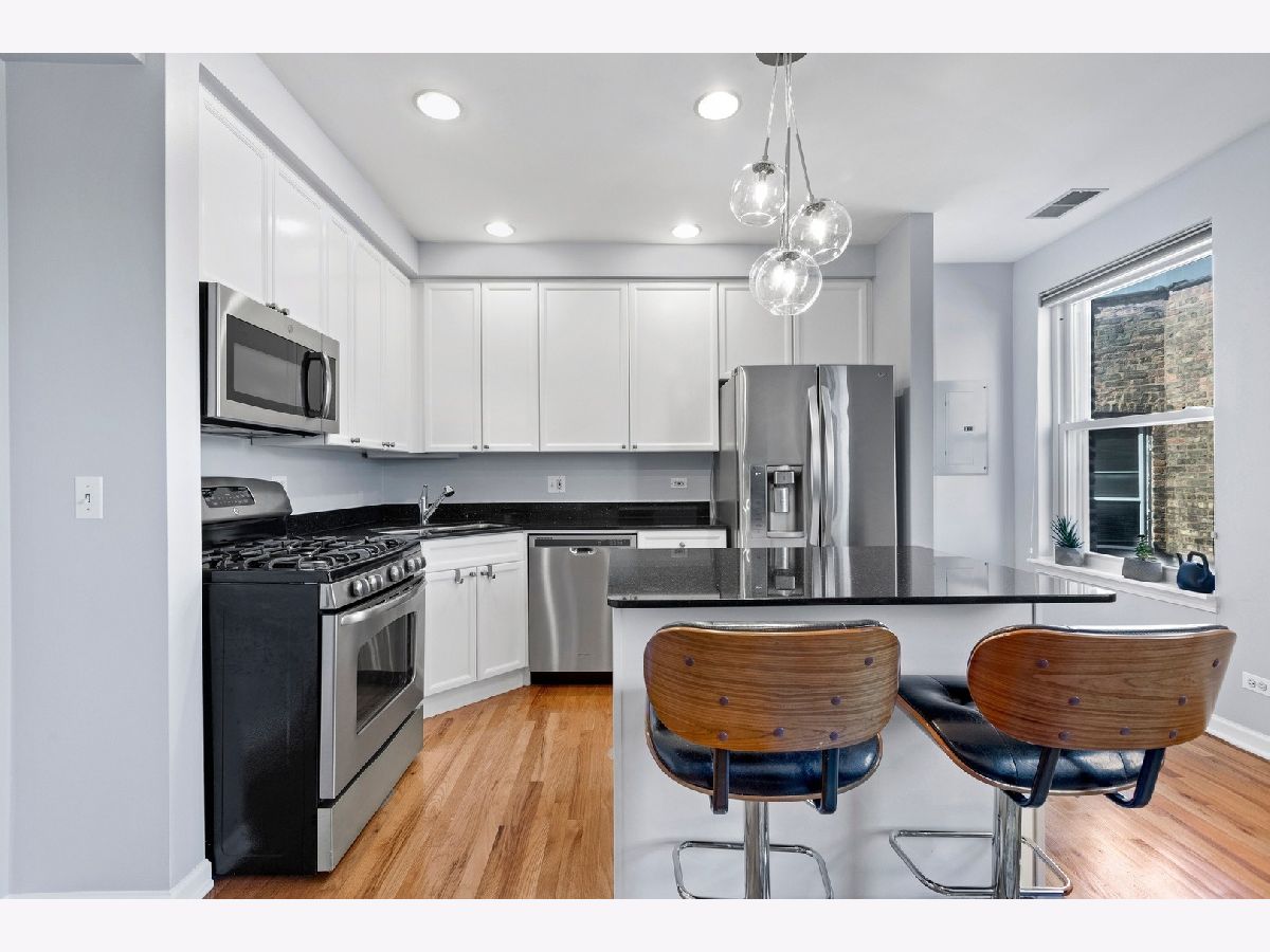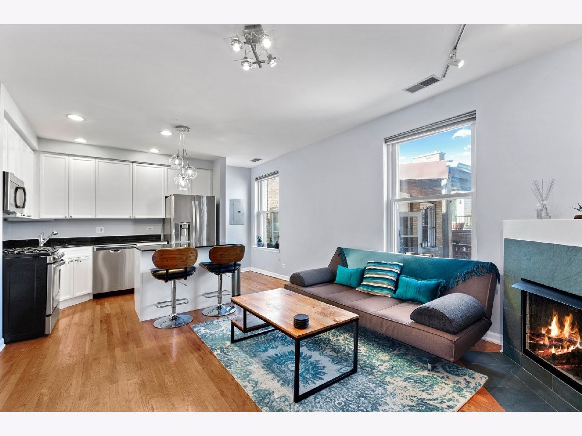 This top floor, bright and sunny 1 bedroom condo has a lot to love, starting with its ideal location just steps from Whole Foods, Target, gyms, trendy dining, shopping, nightlife and the Brown line. A stylish kitchen offers newer stainless steel appliances, granite counter-tops and beautiful 42' white cabinetry. Living room is picture perfect with a fireplace and windows bringing in natural light. Large and bright bedroom with organized closet. Freshly painted throughout, in unit washer/dryer and a roof deck with stunning views make this the ideal place to live! You won't want to miss this perfect Roscoe Village/Lake View home.