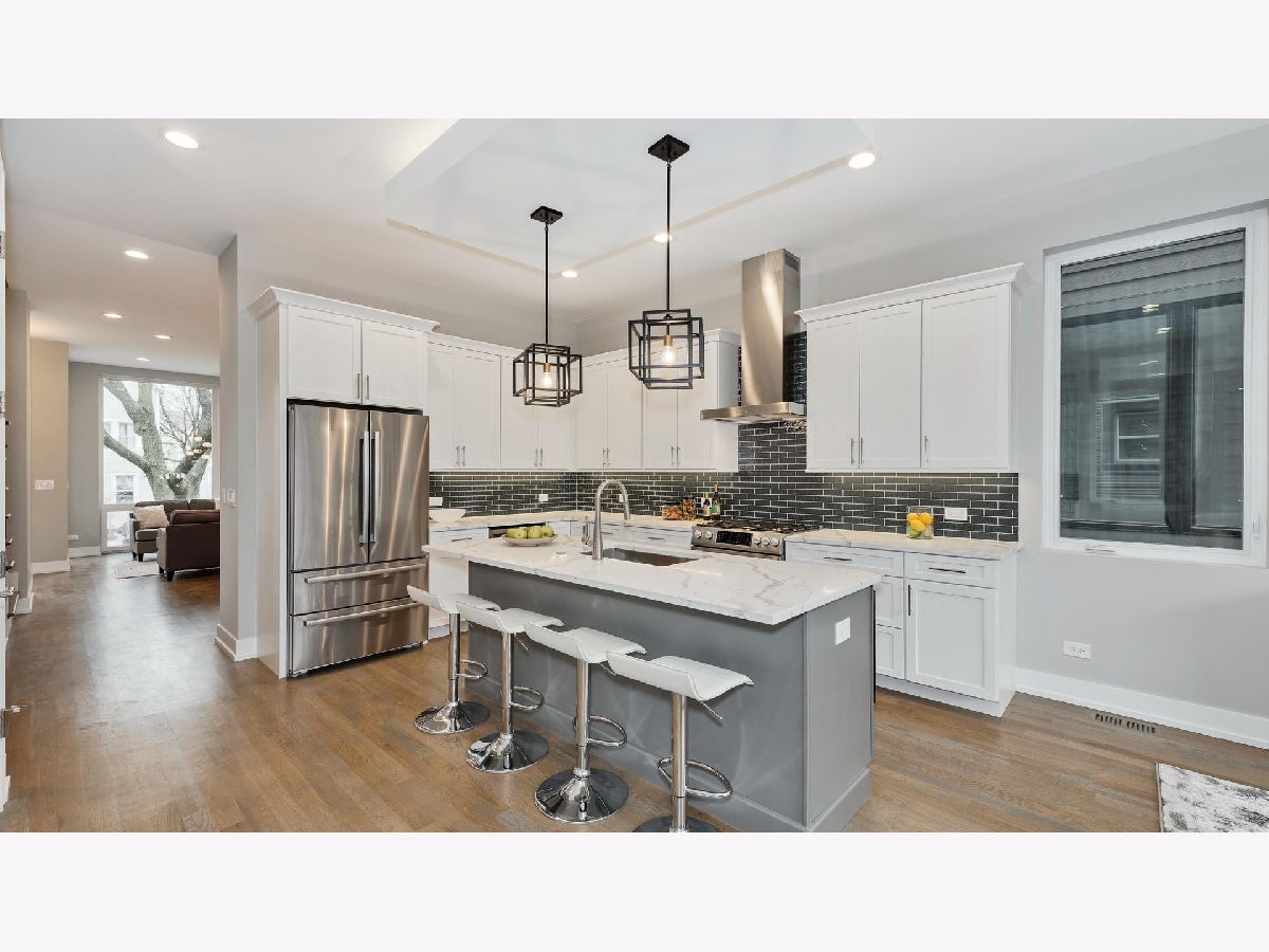 Stylish and spacious 4 bedroom, 3.5 bath home in a spectacular Humboldt Park / South Logan Square location! Designed and constructed with an exceptional level of detail, this home features a contemporary and sleek facade with floor-to-ceiling Oknoplast windows that flood the home with natural light! This 3100 sqft floor plan has an open living/dining room with tall ceilings and a gas fireplace while the separate & spacious family room adjoins a Chefs kitchen complete with Bosch appliances, a large island with counter seating, quartz countertops, and maximum storage including a pantry! The home's upper level features three large bedrooms and two full bathrooms including a primary suite with two walk-in closets, a spa-quality bath featuring a frameless glass shower, full-body sprays, rain shower head as well as a dual vanity & radiant heated flooring! The lower level provides an oversized recreation room with a wet bar, a sizable 4th bedroom, and an additional full bath also with a glass shower. Completed in 2019 this home is very lightly lived in and is better than new with a number of key improvements throughout including custom closet systems, window blinds, additional exterior fencing (ideal for pets!), and an expansive rooftop deck constructed entirely of MoistureShield composite decking that is scratch resistant and developed to significantly reduce heat absorption! No expenses spared and move-in ready! Unbeatable location with easy access to parks, the 606, and public transportation. This terrific treelined street is close to it all and surrounded by a number of Chicago's premier destinations for dining and nightlife including the heart of Armitage Ave's commercial district. Welcome home!