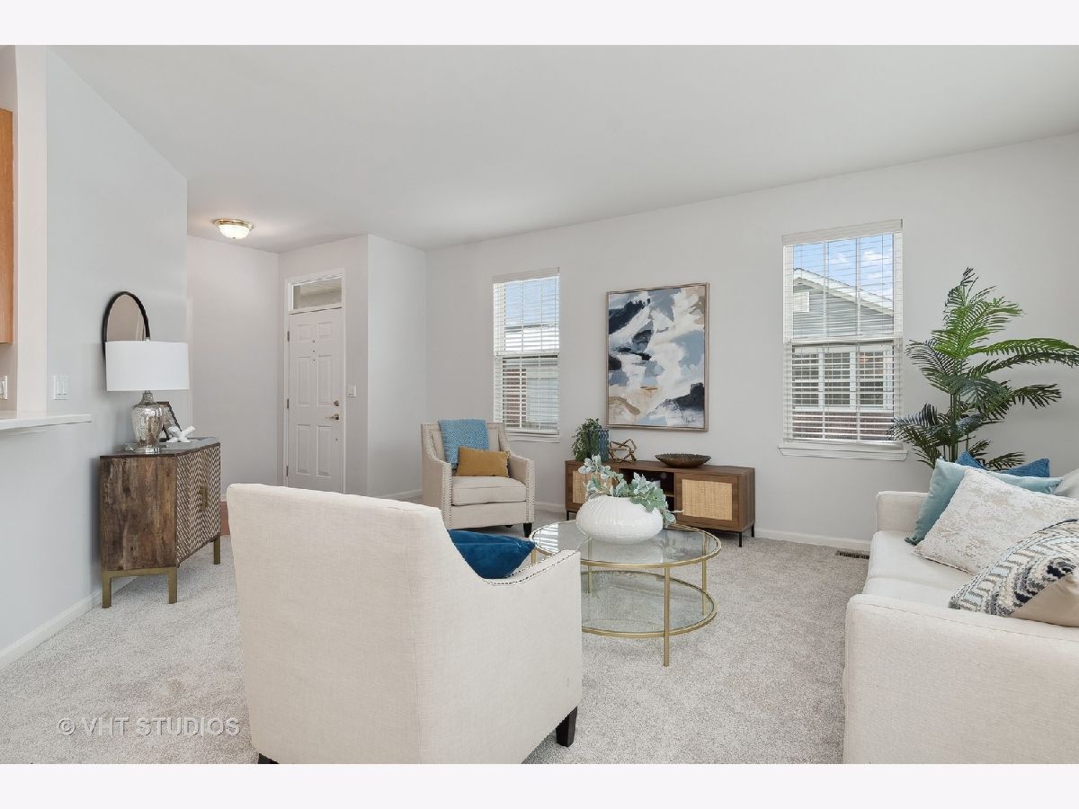Resort style living ~ 55+ community Carillon Lakes in Crest Hill. Ranch style 1300 sq.ft. 2 bedrooms, 2 baths, open floor plan end unit. Lots of natural light. Freshly painted in neutral color and new carpeting throughout. Kitchen and entryway have hardwood floors. Attached 2 car garage and front porch. The list of amenities at Carillon Lakes is endless