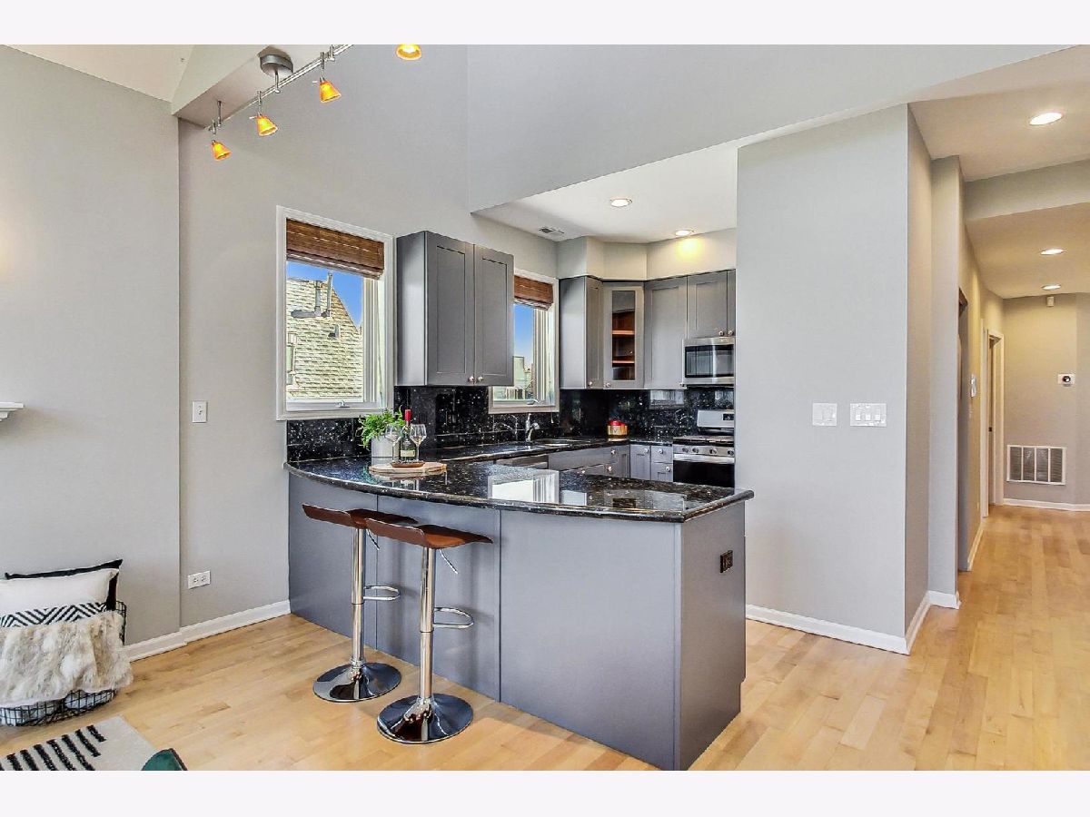 WONDERFUL WICKER PARK! Penthouse duplex-up three-bedroom, three full bath residence with 14-foot vaulted ceilings, two outdoor decks, and parking included! Your private entrance in this boutique three-unit ALL BRICK building leads you up to the main level which is flooded with light as the home has North, South, East, and West exposures. Spacious open living room/dining/and kitchen with gas fireplace, and beautiful charcoal grey cabinetry and NEW (2024) stainless steel dishwasher, oven/range, microwave, and refrigerator. New (2024) LG washer/dryer in unit. The first floor has two bedrooms and two bathrooms, one features en-suite bath with large, jetted tub and walk-in shower. Top floor has a grand primary suite with private balcony, and third full bathroom is adjacent. Monthly assessments include water, common Insurance, exterior maintenance, lawn care, scavenger, snow removal. Additional storage located in the building. This is a beautiful home, freshly painted and refinished maple hardwood floors. Dog and cat friendly - no weight limit. Available immediately. Well-run, self-managed building has worked to keep monthly HOA fees low. Close to everything Wicker Park/Bucktown have to offer including restaurants (Dove's, BLOOM kitchen, Mott Street, Club Lucky, Etta), Bars (The Violet Hour, Machine: Engineered, Estelle's) shopping (Belmont Army, Gemini, Penelope's), music venues such as the Salt Shed, Subterranean and Concord Music Hall, plus great events such as the Wicker Park Farmer's Market, the nearby Bucktown Garden Walk, annual Wicker Park Fest and more! Close to transportation (CTA Blue Line, and multiple bus routes including 56 Milwaukee, 72 North Ave., 50 Damen, 9 Ashland, and 70 Division.)