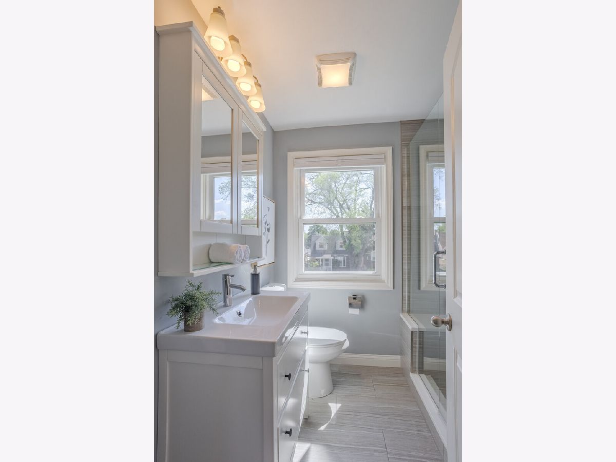 This Elmwood Park Georgian home, recently renovated from top to bottom with a stylish, modern interior, is an ideal choice for your new residence! The main floor boasts a bright living room that flows into a dining area with sliding glass doors leading to an outdoor deck. The kitchen is fully equipped with stainless steel appliances, granite countertops, and white cabinetry, and there is also a half bath. Upstairs, you'll find the master bedroom, two additional bedrooms, and a stunning full bathroom. The finished lower level offers a cozy family room, another full bathroom, and a separate laundry area. The private rear deck and fully fenced yard provide a serene retreat. Conveniently located within walking distance of popular local restaurants, schools, and parks. The comprehensive 2015 renovation included overhead sewers, drain tiles, a new roof, new windows, new HVAC system, copper plumbing, and updated electrical work. This home is ready for you to move in and enjoy!