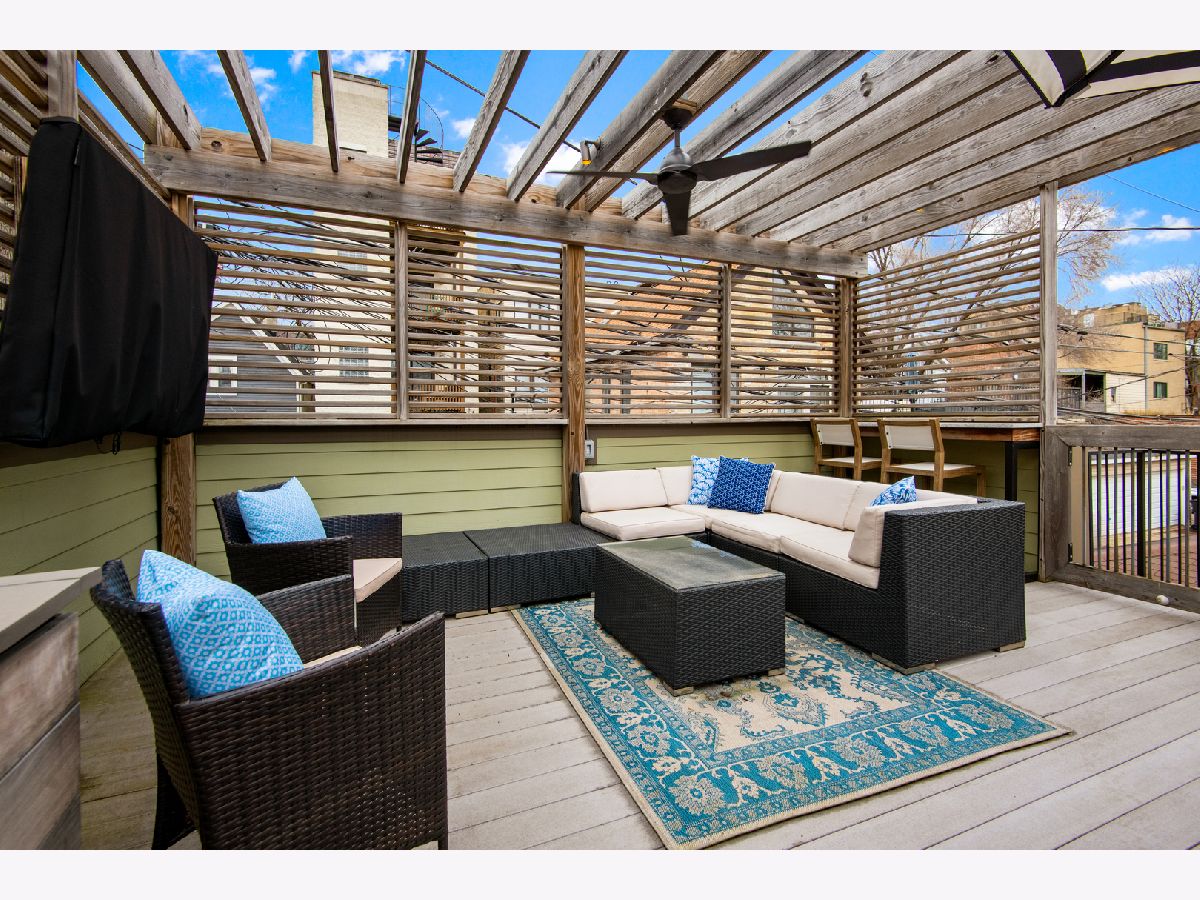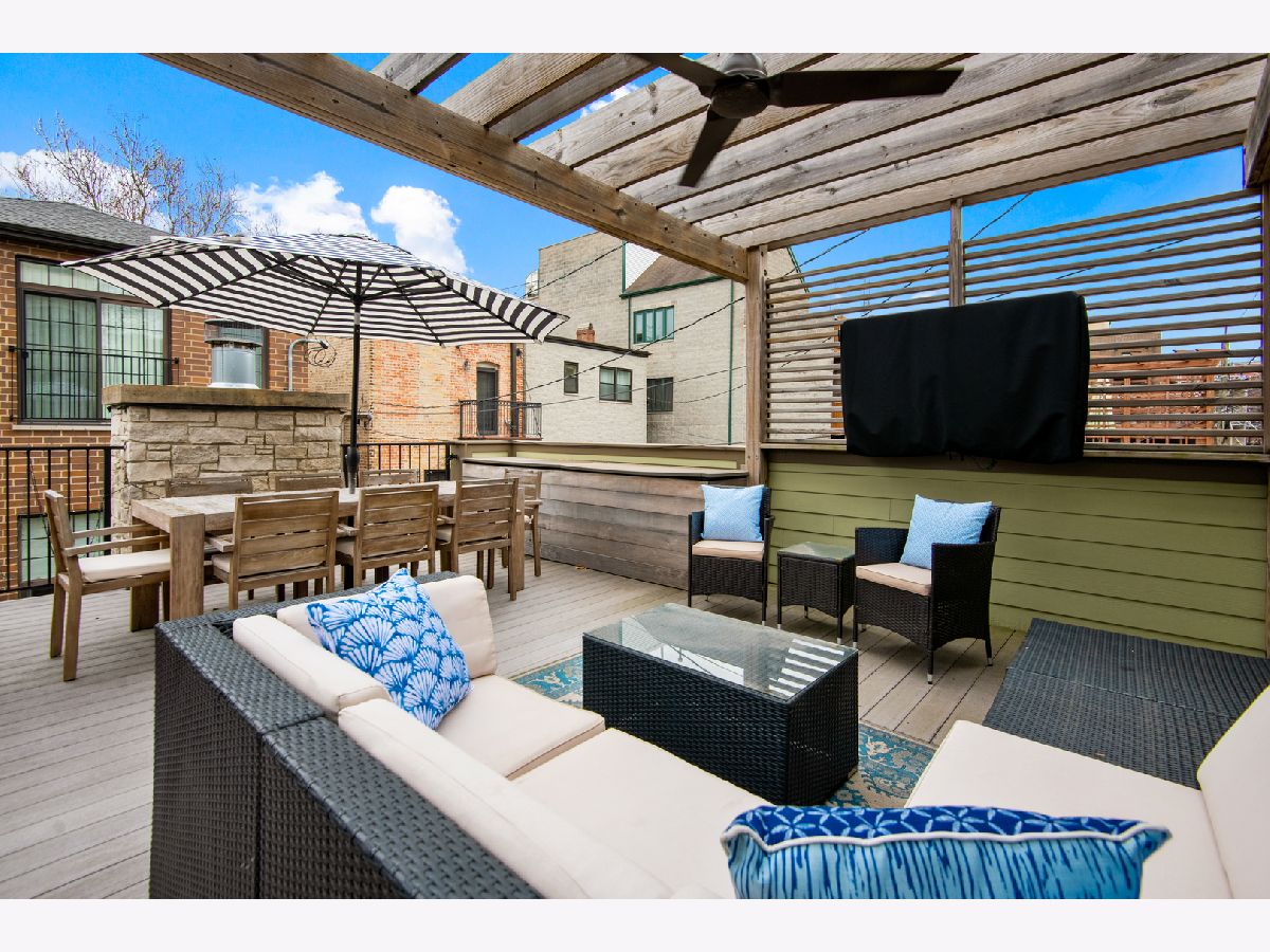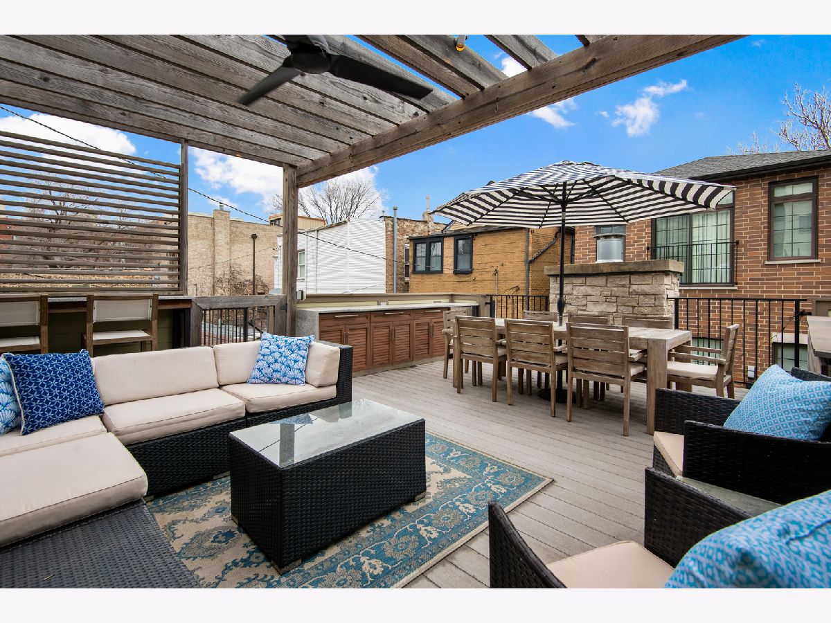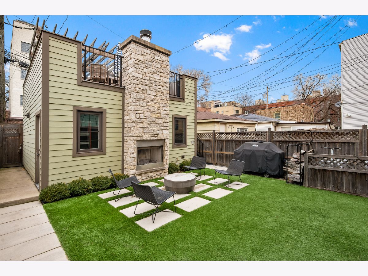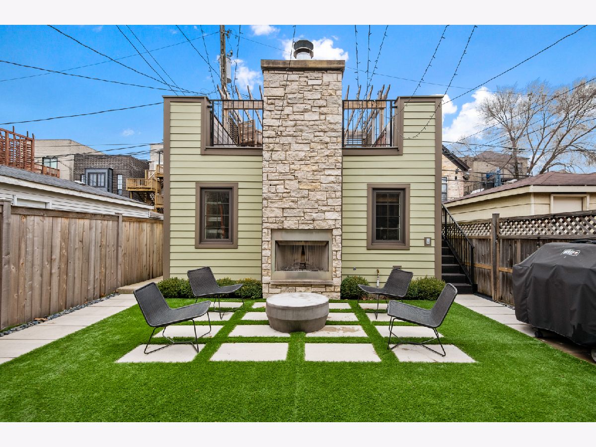 Exceptional quality all-brick 5BR/3.5BA custom built home on a full 25' x 125' lot with very useable outdoor spaces which were upgraded by current owner including an impressive 25' x 20' back yard as well as a garage roof deck. This meticulously maintained home boasts gorgeous millwork, oak hardwood flooring, custom lighting, designer wallpaper, two fireplaces, two laundry rooms and heated floors in all full baths. Chef's kitchen features quartz countertops, glass and marble backsplash, commercial grade appliances, walk-in pantry and butler's pantry, and a chic built-in banquette. Impressive primary suite features two walk-in-closets, Juliet balcony, custom built-ins, luxurious bathroom with heated floors, dual vanities, soaking tub, and steam shower. The lower level features radiant heated flooring, a wet bar, and abundant storage. Most sought-after new construction floor plan with coveted mudroom at rear entry leading directly into a landscaped yard with synthetic turf and pavers with an outdoor fireplace and a garage roof deck fully built-out with cabinetry, beverage center, outdoor TV, and pergola. Walk to blue line, 606 Trail, and endless restaurants and boutiques of Bucktown.