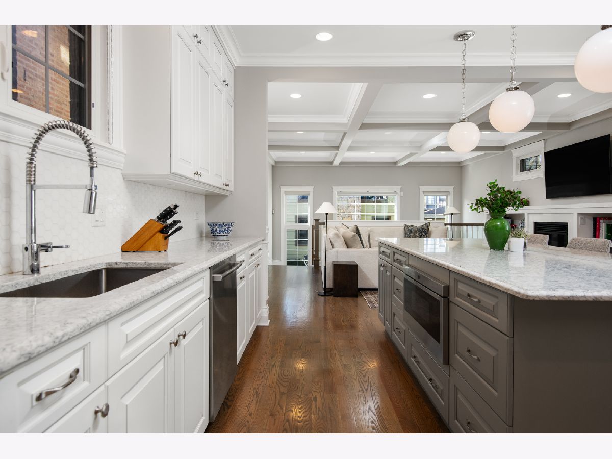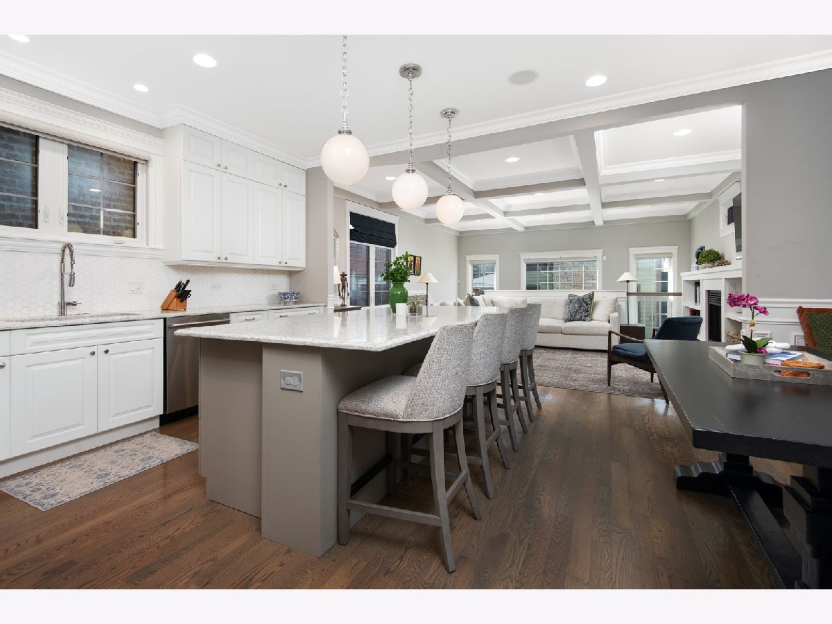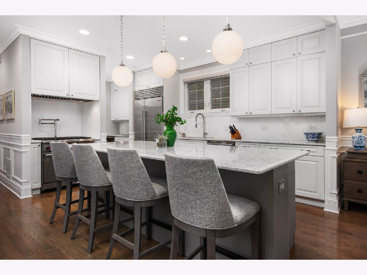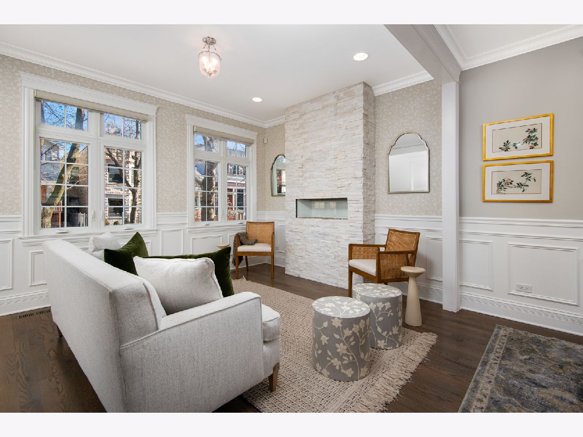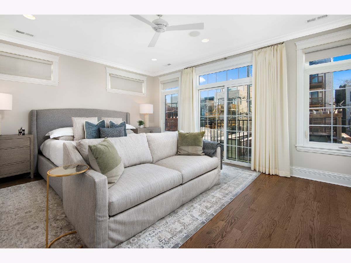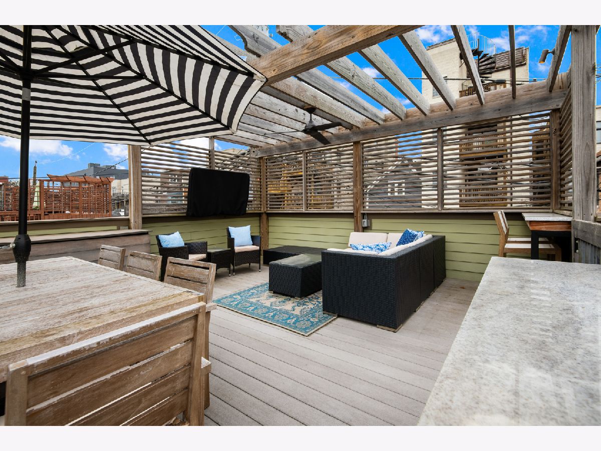 Exceptional quality all-brick 5BR/3.5BA custom built home on a full 25' x 125' lot with very useable outdoor spaces which were upgraded by current owner including an impressive 25' x 20' back yard as well as a garage roof deck. This meticulously maintained home boasts gorgeous millwork, oak hardwood flooring, custom lighting, designer wallpaper, two fireplaces, two laundry rooms and heated floors in all full baths. Chef's kitchen features quartz countertops, glass and marble backsplash, commercial grade appliances, walk-in pantry and butler's pantry, and a chic built-in banquette. Impressive primary suite features two walk-in-closets, Juliet balcony, custom built-ins, luxurious bathroom with heated floors, dual vanities, soaking tub, and steam shower. The lower level features radiant heated flooring, a wet bar, and abundant storage. Most sought-after new construction floor plan with coveted mudroom at rear entry leading directly into a landscaped yard with synthetic turf and pavers with an outdoor fireplace and a garage roof deck fully built-out with cabinetry, beverage center, outdoor TV, and pergola. Walk to blue line, 606 Trail, and endless restaurants and boutiques of Bucktown.