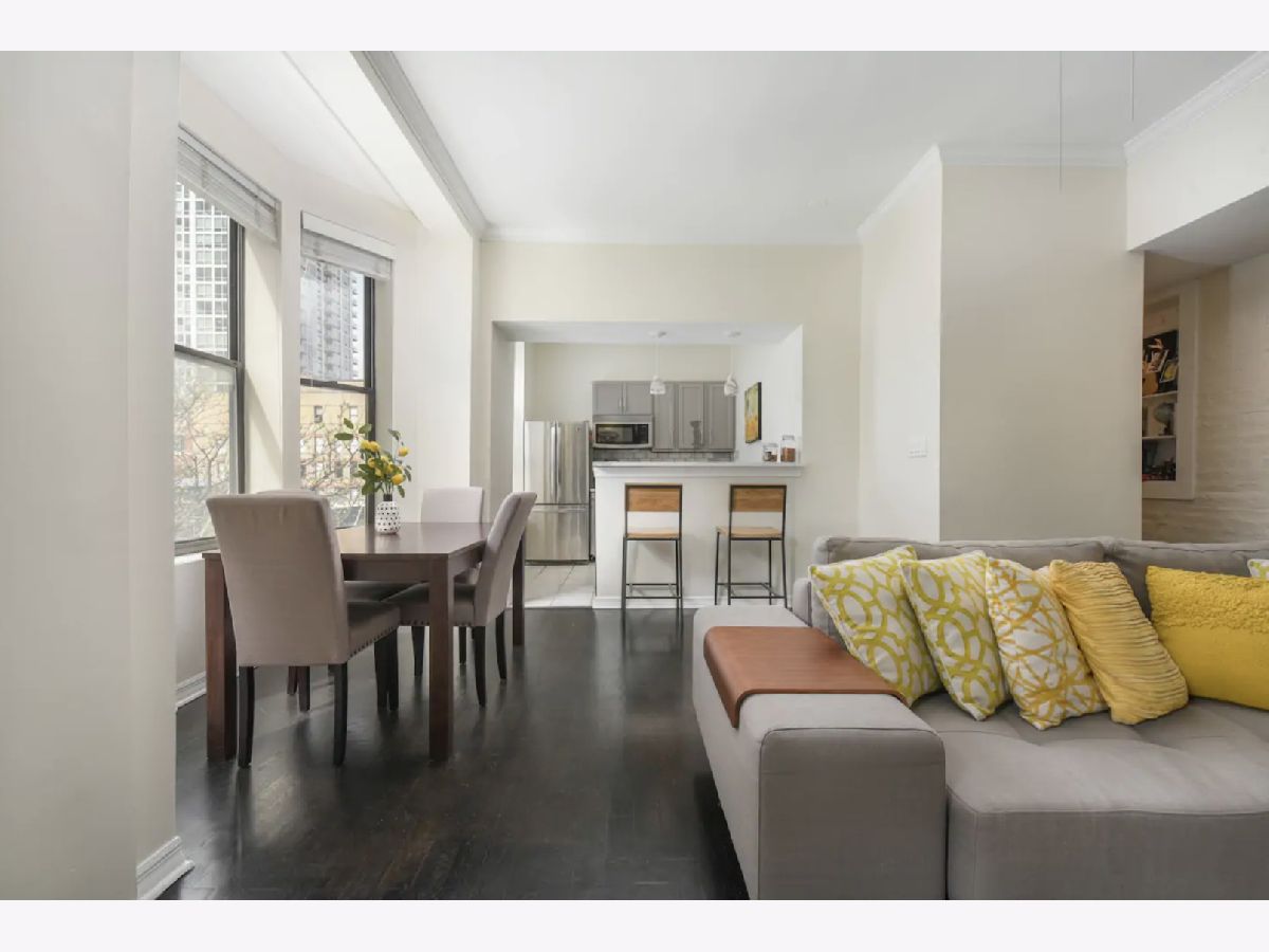 This charming and spacious newly remodeled 2 bedroom, 2 bath condo is perfectly located in the heart of River North. Its southwest exposure brings in an abundance of sun light throughout the day. There are hardwood floors, a lovely wood burning brick fireplace in the primary bedroom and a charming brick wall which spans the entire home. Stainless steel appliances and granite countertops with an eat-in breakfast bar. In unit washer/dryer. 0.1 mile walk to the Brown and Purple lines. Surrounded by some of the best shopping, dining and entertainment in the city.