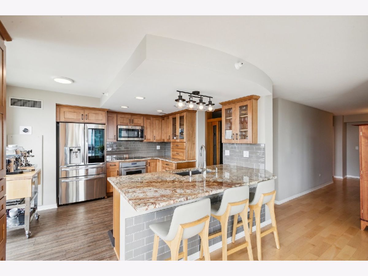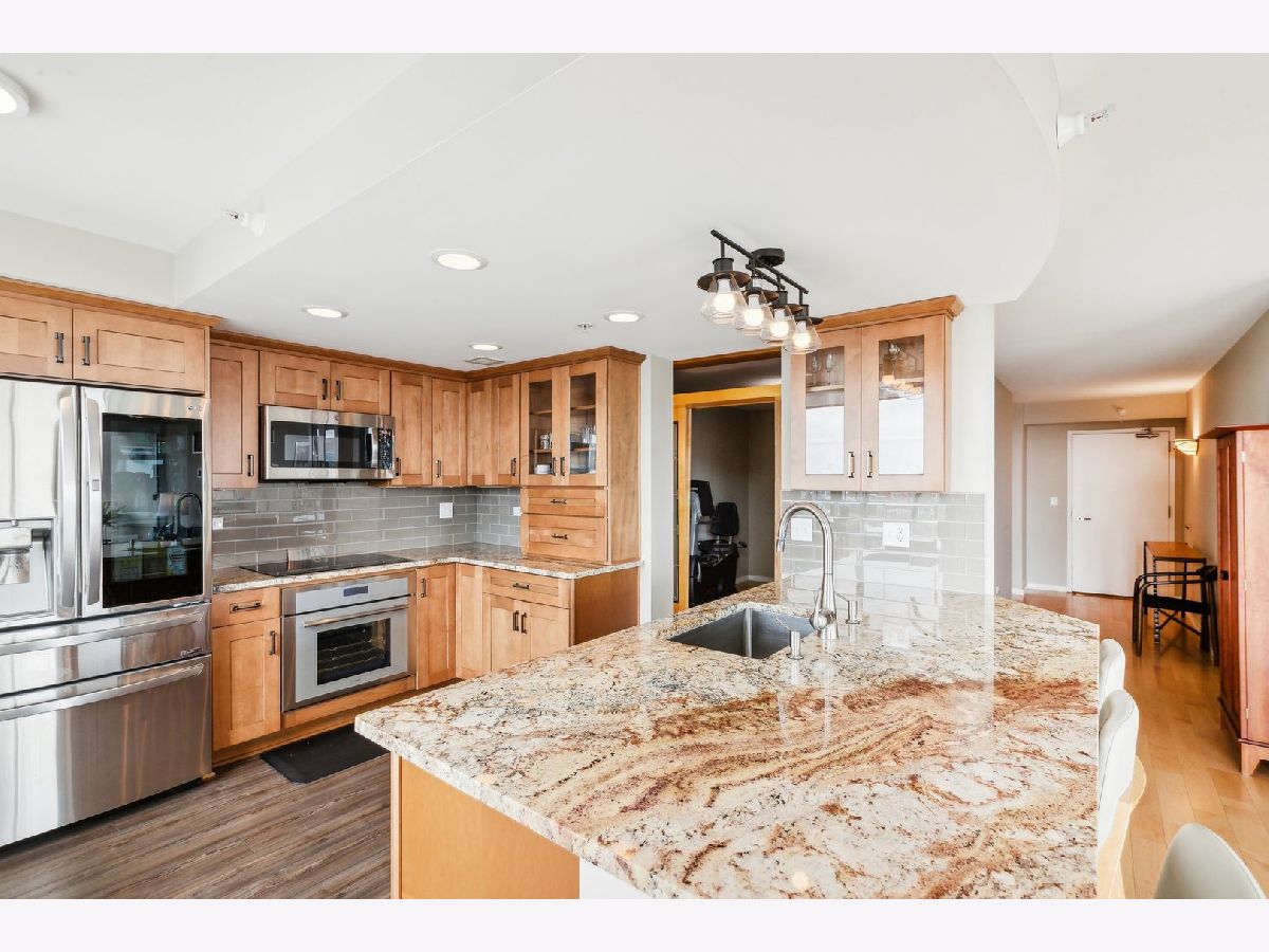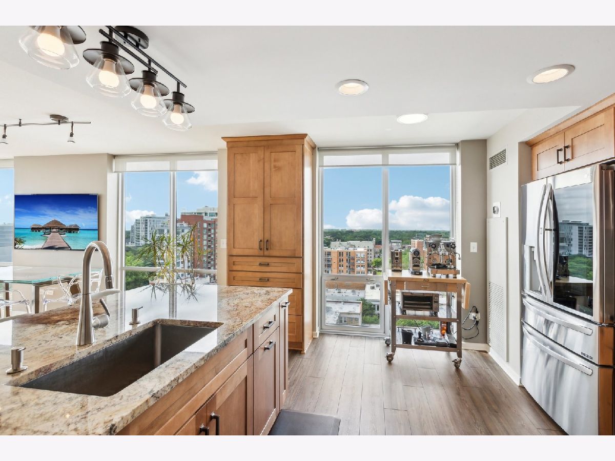 Highest and best due Tuesday, June 25th at 5pm. Prepare to be impressed! One of Church Street Stations finest, perfect for downsizers and condo lovers alike. Amazing east, south and west views! This condo has been completely remodeled with added storage and features high end finishes throughout. Over 1600 square feet of living space, this unit is truly move-in ready with floor to ceiling windows, open floor plan, and gorgeous maple flooring.The new kitchen is a chef's dream, with Thermador convection/steam oven, Thermador induction cooktop, an expanded island, granite countertops, stainless steel and loads of cabinet space. You'll love the Primary bedroom suite with an extra large walk-in closet and luxury new bathroom with quartz countertops and Kohler fixtures. Aside from the 2nd bedroom, there's a bonus space, perfect for an office, den or a formal dining room. In-unit laundry with new LG washer/dryer, powder room and east facing balcony, 2 parking spaces (P-49 and HP-28) and additional storage all make this a premier Evanston residence. Ideal location close to the Metra, CTA, Theater, Shops, Restaurants, Lake, Beaches, & the Northwestern University Campus. This building features a Door person, helpful maintenance staff, Indoor Pool, Professionally Landscaped Deck and Green Roof, Fitness Center, Party and Bike Rooms. Welcome Home!