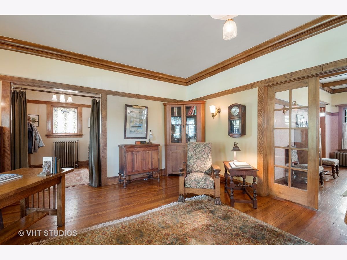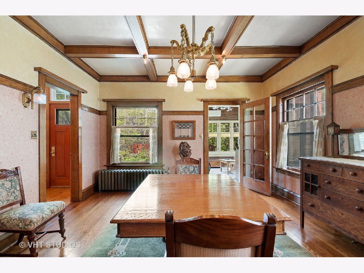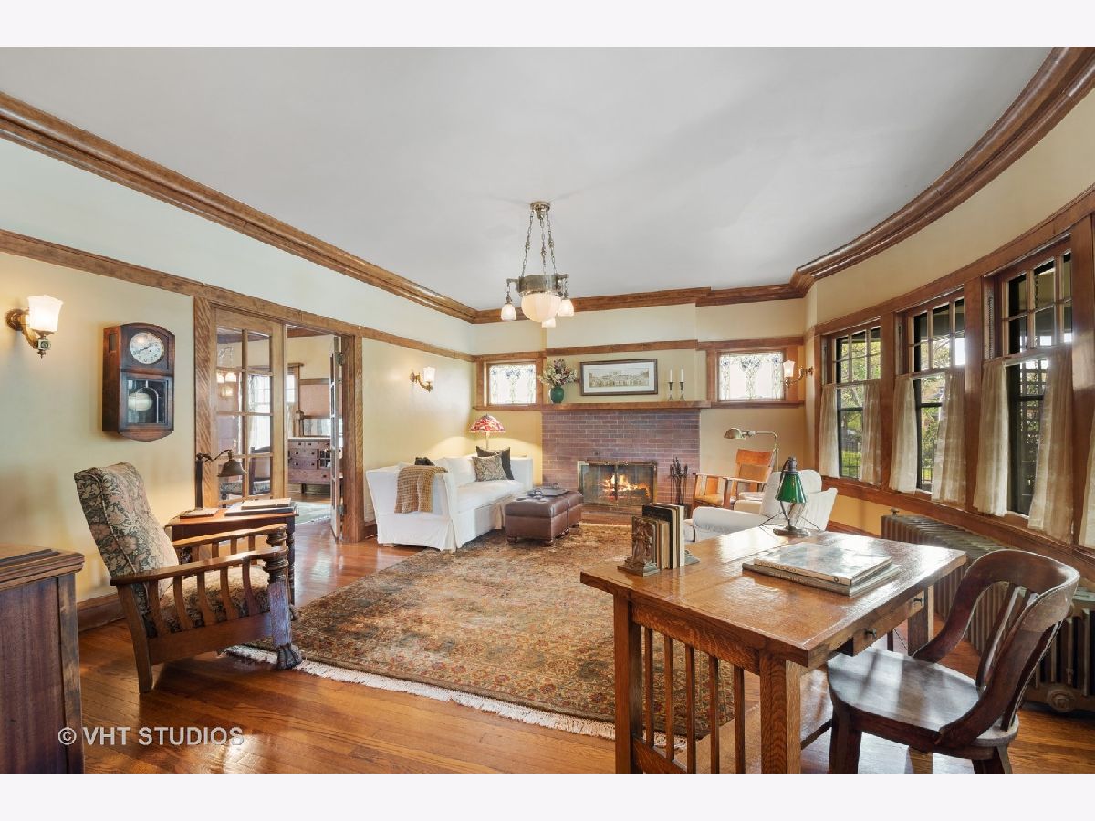 Lovingly restored English Arts and Crafts 4BR, 2.5BA home on double lot, first time on the market in 29 years. You are welcomed to the 29X12 rebuilt front porch which runs the length of the front of the house, w/beadboard ceiling, skylights, ceiling fan & wicker porch swing. Entry foyer and LR feature gorgeous original art glass windows, 2 beautiful chandeliers, restored woodwork, oak HW floors, 5 window bay with original wood mullions, overlooking the porch. Brick WBFP w/ brick hearth and custom glass fireplace screen, stainless steel chimney liner, restored sconces, satin finish woodwork and coved molding. Double 10 pane french-doors lead to restored 12 panel cross beam ceiling with 4 classic beam light outlets and restored, original George Beardsley cast brass chandelier. 10 glass panel french-door leads to heated year round brick porch with beadboard ceiling, Brazilian rotating ceiling fans, concrete floor, 16 original windows with original hardware and custom made wood storms, built-in Mitsubishi A/C. Completely re-imagined kitchen, gutted and redesigned with quarter sawn oak cabinets, glass panes and brushed nickel drawer pulls, maple floors, white subway tile backsplash, soapstone counters, deep, undermount ss sink, picture window overlooking expansive backyard, crank out clerestory windows, ss appliances, very cool restored 1948 Universal six burner stove with double oven and double broiler, ss range hood vents to outside. Matching kitchen island, movable for entertaining with adjustable light fixture above. Butler pantry with pass through, built-in shelving and glass panel doors. First floor half bath with automatic light and pedestal sink. Second floor, 3 good-sized BR's plus sleeping porch, new bath, linen and cedar closet. Closets include built in cabinetry. BR1 includes brick FP surround and hearth, original andirons, replaced double thermopane front windows. BR2 w/ original sconces, opens onto 13 window, heated, year round sleeping porch w/ AC permanently installed and wonderful garden and side yard views. Restored bath with original pier mirror and drawers, reconstructed original opaque diamond shaped bath windows, white porcelain sink with stand, marble subway tile and basket weave marble floor tile. Stunning glass enclosed marble tiled shower. Enormous 3rd floor BR suite includes flexible 17x15 living area--office/den/study/BR--w/ recently refinished light oak floors, new double thermopane front windows, closet, built in cabinet drawers and under eave storage. Good sized 4th BR, bath with restored original sconce, restored clawfoot tub, replaced maple floors. Clean, high ceilinged, dry basement (Parks flood control system), steel beam construction, laundry chute, W/D. Backyard is a private retreat w/ 4 ft. deep fish and lily pond w/ skimmer, fountain and bubbler in winter to keep ice from forming. Tranquil landscaped garden, herb garden with two level deck and hand kiln-made concrete paver patio. 2 car brick garage, upper half rebuilt in the past 10 years w/ plenty of storage, new doors and openers, plus gated parking for two more cars! Don't miss this once-in-a-lifetime opportunity!