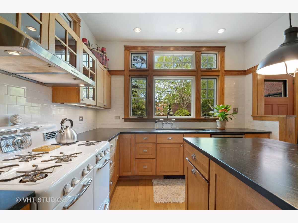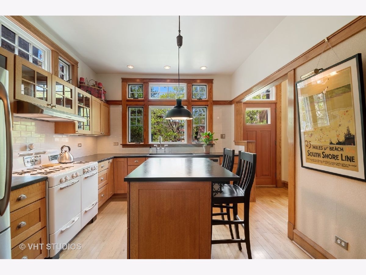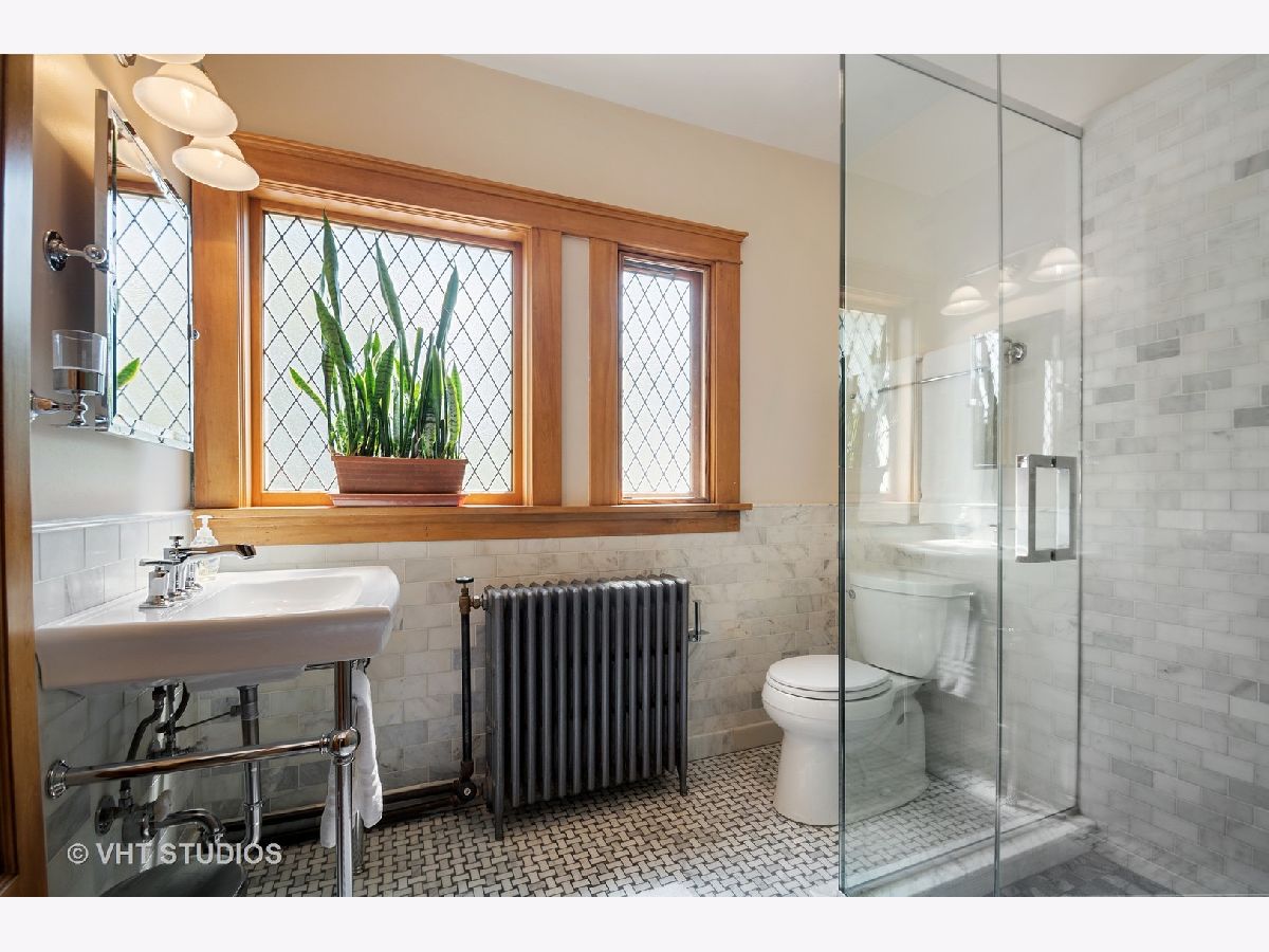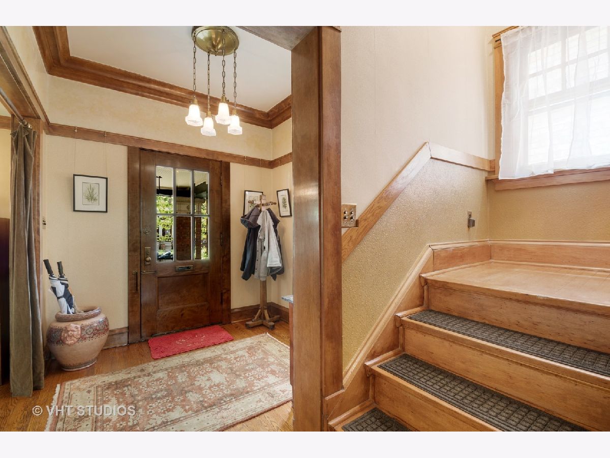 Lovingly restored English Arts and Crafts 4BR, 2.5BA home on double lot, first time on the market in 29 years. You are welcomed to the 29X12 rebuilt front porch which runs the length of the front of the house, w/beadboard ceiling, skylights, ceiling fan & wicker porch swing. Entry foyer and LR feature gorgeous original art glass windows, 2 beautiful chandeliers, restored woodwork, oak HW floors, 5 window bay with original wood mullions, overlooking the porch. Brick WBFP w/ brick hearth and custom glass fireplace screen, stainless steel chimney liner, restored sconces, satin finish woodwork and coved molding. Double 10 pane french-doors lead to restored 12 panel cross beam ceiling with 4 classic beam light outlets and restored, original George Beardsley cast brass chandelier. 10 glass panel french-door leads to heated year round brick porch with beadboard ceiling, Brazilian rotating ceiling fans, concrete floor, 16 original windows with original hardware and custom made wood storms, built-in Mitsubishi A/C. Completely re-imagined kitchen, gutted and redesigned with quarter sawn oak cabinets, glass panes and brushed nickel drawer pulls, maple floors, white subway tile backsplash, soapstone counters, deep, undermount ss sink, picture window overlooking expansive backyard, crank out clerestory windows, ss appliances, very cool restored 1948 Universal six burner stove with double oven and double broiler, ss range hood vents to outside. Matching kitchen island, movable for entertaining with adjustable light fixture above. Butler pantry with pass through, built-in shelving and glass panel doors. First floor half bath with automatic light and pedestal sink. Second floor, 3 good-sized BR's plus sleeping porch, new bath, linen and cedar closet. Closets include built in cabinetry. BR1 includes brick FP surround and hearth, original andirons, replaced double thermopane front windows. BR2 w/ original sconces, opens onto 13 window, heated, year round sleeping porch w/ AC permanently installed and wonderful garden and side yard views. Restored bath with original pier mirror and drawers, reconstructed original opaque diamond shaped bath windows, white porcelain sink with stand, marble subway tile and basket weave marble floor tile. Stunning glass enclosed marble tiled shower. Enormous 3rd floor BR suite includes flexible 17x15 living area--office/den/study/BR--w/ recently refinished light oak floors, new double thermopane front windows, closet, built in cabinet drawers and under eave storage. Good sized 4th BR, bath with restored original sconce, restored clawfoot tub, replaced maple floors. Clean, high ceilinged, dry basement (Parks flood control system), steel beam construction, laundry chute, W/D. Backyard is a private retreat w/ 4 ft. deep fish and lily pond w/ skimmer, fountain and bubbler in winter to keep ice from forming. Tranquil landscaped garden, herb garden with two level deck and hand kiln-made concrete paver patio. 2 car brick garage, upper half rebuilt in the past 10 years w/ plenty of storage, new doors and openers, plus gated parking for two more cars! Don't miss this once-in-a-lifetime opportunity!