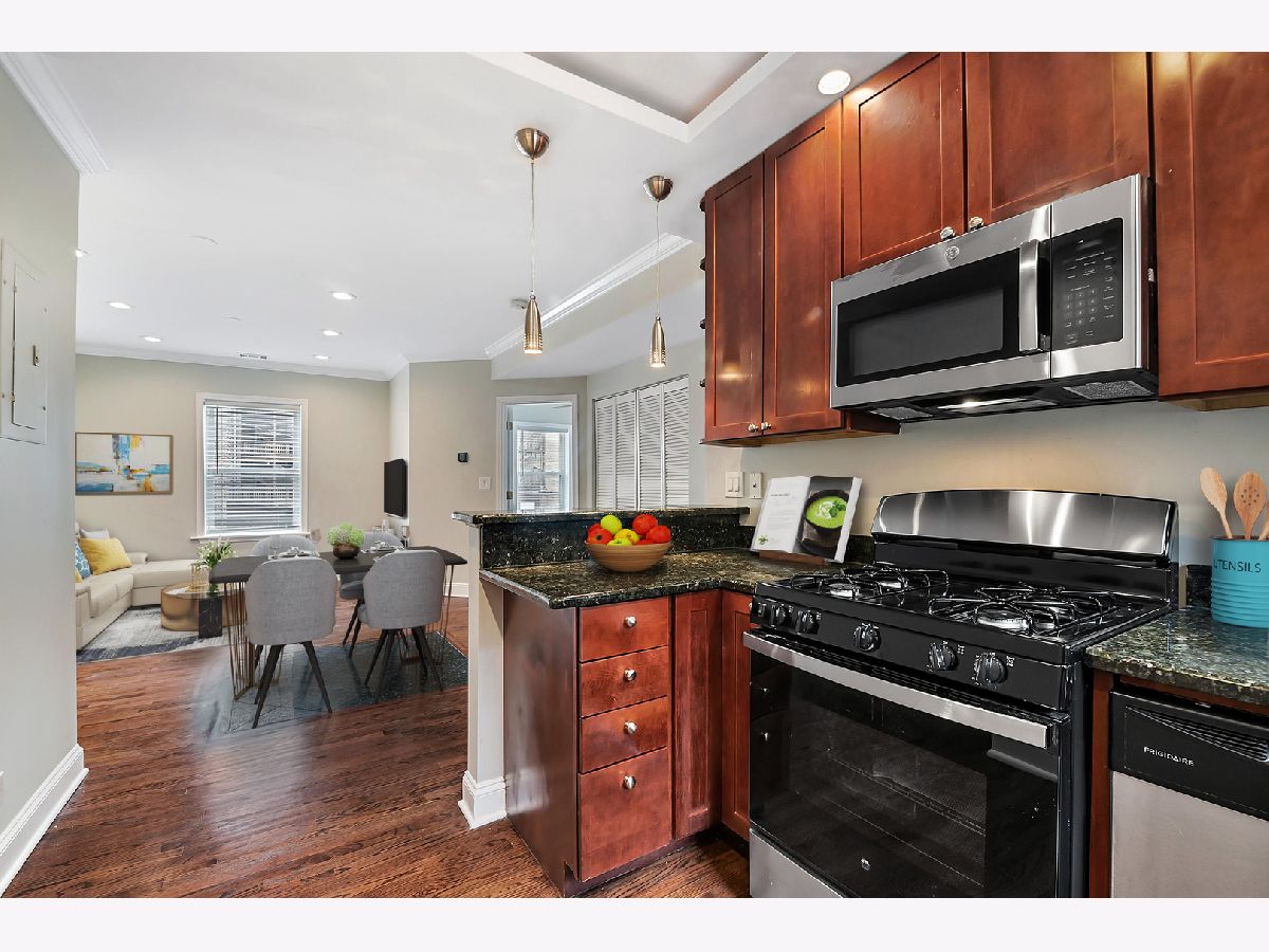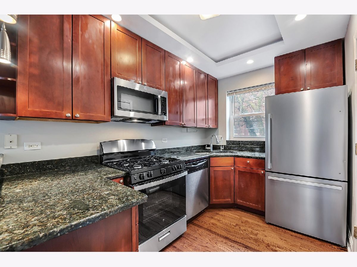 Discover your sanctuary in vibrant East Rogers Park! This charming two-bedroom, two-bathroom condo is the epitome of urban living, offering a seamless mix of comfort, style, and convenience. Situated in a well-kept building amidst scenic tree-lined streets, this home is perfect for anyone desiring an easy-to-maintain living space. As you step inside, the welcoming ambiance is immediately apparent, created by the flood of natural light and elegantly refinished hardwood floors. The kitchen, recently enhanced with new stainless steel appliances, including a new garbage disposal and modern granite countertops, is any cook's delight. It boasts ample cabinetry for all your culinary needs, making it an ideal space for elaborate meals and simple snacks. The main bedroom is a peaceful haven, with its private bathroom and spacious closet ensuring a restful escape. Additionally, the convenience of in-unit laundry is underscored by the addition of a brand-new washer and dryer, while the comfort of the entire home is maintained by a humidifier that's only a year old. The condo has seen numerous recent improvements, including fresh paint throughout, new light fixtures that enhance the ambiance of each room, and updates to the bathrooms. The main bathroom now features a new shower and sink, contributing to the overall appeal and functionality of the space. With its proximity to many shopping, dining, and entertainment venues, this condo is a haven of convenience. Don't miss the opportunity to make it yours. Some photos are virtually staged. Schedule a showing now!