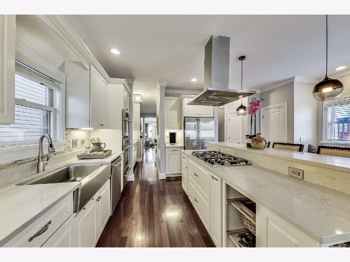 True 5 bedroom home in coveted West Bucktown just blocks from the 606. A floor plan that was ahead of it's time allows for both gracious and intimate entertaining. Formal entry welcomes you to a gracious living room with gas fireplace, grand dining suitable for 12 and dual pass thru to the kitchen via butlers pantry or powder room adjacent pass through. New quartz counters throughout with generous space to prep and entertain. Builtin banquette, full family room with gas fireplace. Two laundry centers (one up one down). LL Rec room with fantastic ceiling height additional gas fireplace and two bedrooms. Unreal storage, proper mud room and utility room. Top floor primary suite, exemplary walk-in closet and spa bath with proper water closet and steam shower. Beds 2 and 3 share additional hall bath with dual vanity. Freshly landscaped, new composite decking on the back deck and up to the garage roof. Whole home water filtration and air purification systems.