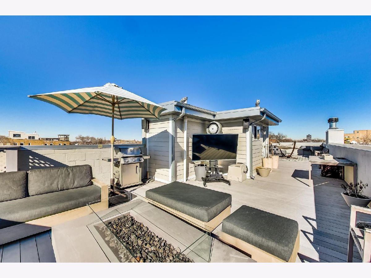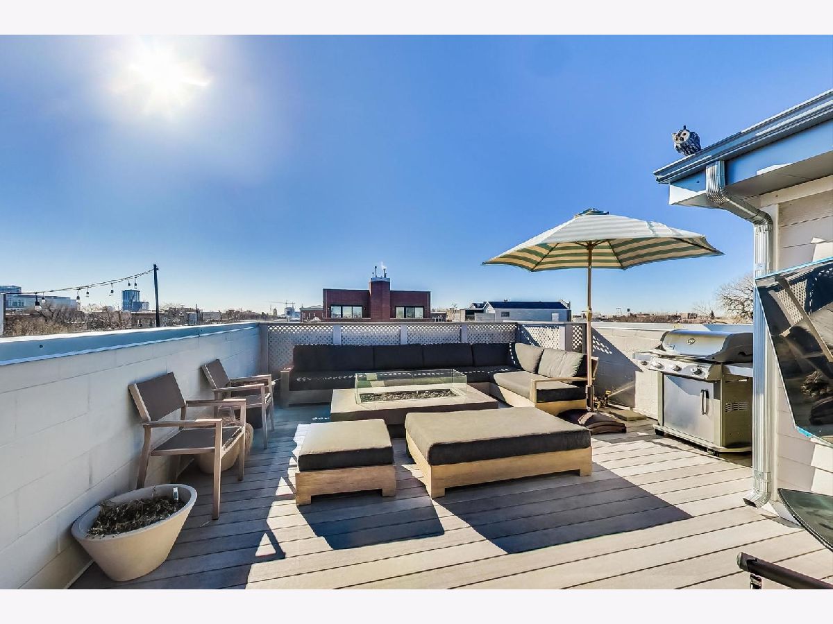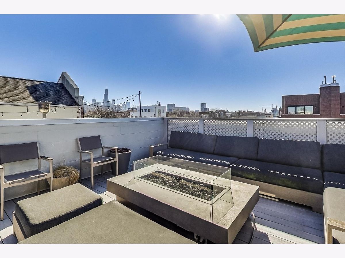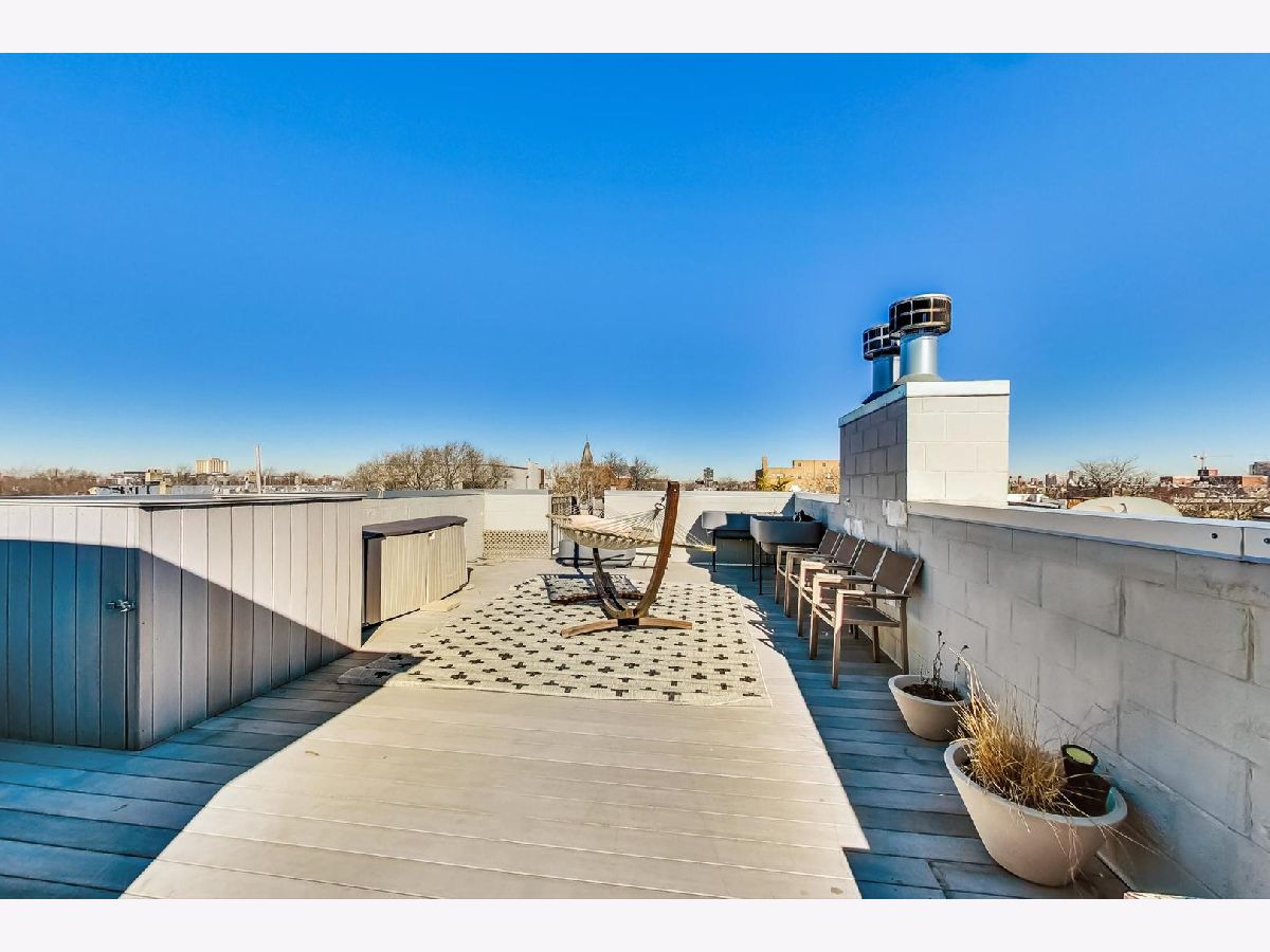 A rare opportunity to own a highly customized, PENTHOUSE 3 bed/2.5 bath duplex-up with full rooftop deck in the ultimate West Town location! This unit was originally purchased pre-construction in 2015 and the owners made custom upgrades throughout the building process, setting this one apart from the rest. Located in an intimate two-unit building, this is one of the taller structures on the block with windows on four sides which offers an abundance of natural light in every room. The main level features two large living spaces, a dining room, open kitchen and convenient half bath. The transitional kitchen features a Thermdor custom designed range hood, Italian style cabinetry and 2.5" thick mitered quartz countertops with waterfall edge. All of the Thermador appliances are fully integrated with front panels that match the cabinets. Convenient U-line beverage center in the kitchen. The focal point of the kitchen is the 10 foot seamless island top with breakfast bar seating for up to 6 people with an additional attached table. There is an extra deep kitchen sink with a luxury Axor Citterio kitchen faucet. The designer family room light fixture was hand selected from Lightology. There are sleek wide plank hardwood floors that carry throughout both levels and the home has been freshly painted from top-to-bottom. On the second level you will find the three bedrooms and two full bathrooms. The spa-caliber primary bath features a HEATED porcelain tile floor, double vanity, frameless glass shower WITH STEAM and a separate tub. Thoughtfully selected Hansgrohe faucets and bath fixtures compliment the richness of the space. The primary bath has a Toto toilet and bidet system. LG washer and dryer located in a separate laundry room and the adjacent bedroom has an oversized large closet. Custom Smith & Noble horizontal, motorized window shades on the first level and custom blinds and drapery on the second level. Smart home automation with Ring doorbell, Ecobee thermostat, wifi connected light switches and Schlage door locks, all compatible with Amazon Alexa or Z-wave technology. The entire home is wired for ceiling speakers. The rooftop deck is the ultimate hangout space with sweeping skyline views. Roof deck is built with maintenance free composite decking and features an outdoor seating area, Definitive Technology speakers wired for music, play area, TV mount, gas and water hook ups, and interior bar with beverage center, sink, and cabinetry. Remarkable block filled with friendly neighbors and impromptu sidewalk happy hours and play dates. Walk down Chicago Ave and stop for groceries at Mariano's, pick up a pizza at Roots or have a beer at Funkenhausen. Quick access to 90/94 Expressway if you need to head to the airport or downtown. This is a commuter's dream! Ample street parking available for guests. Pet friendly building with a common turfed back yard. Imagine spending your next Chicago summer living here!