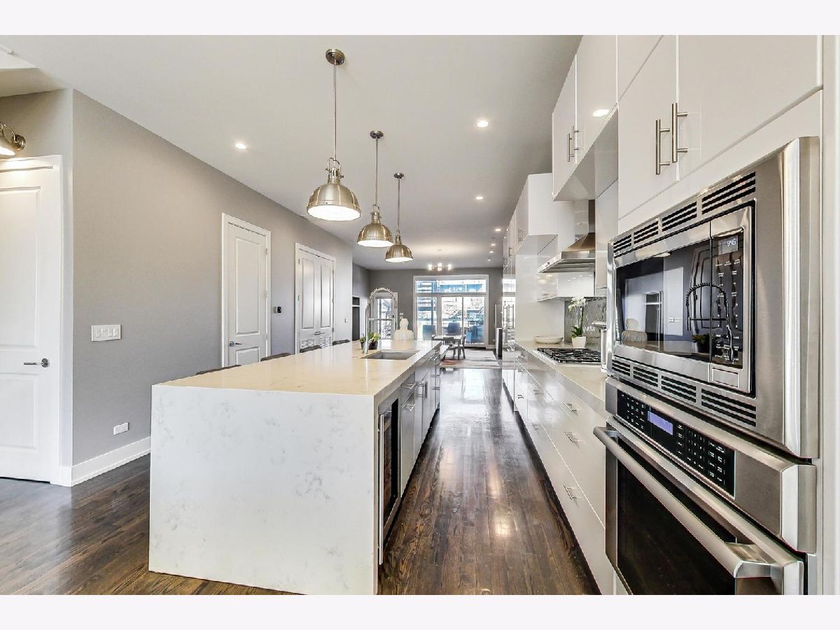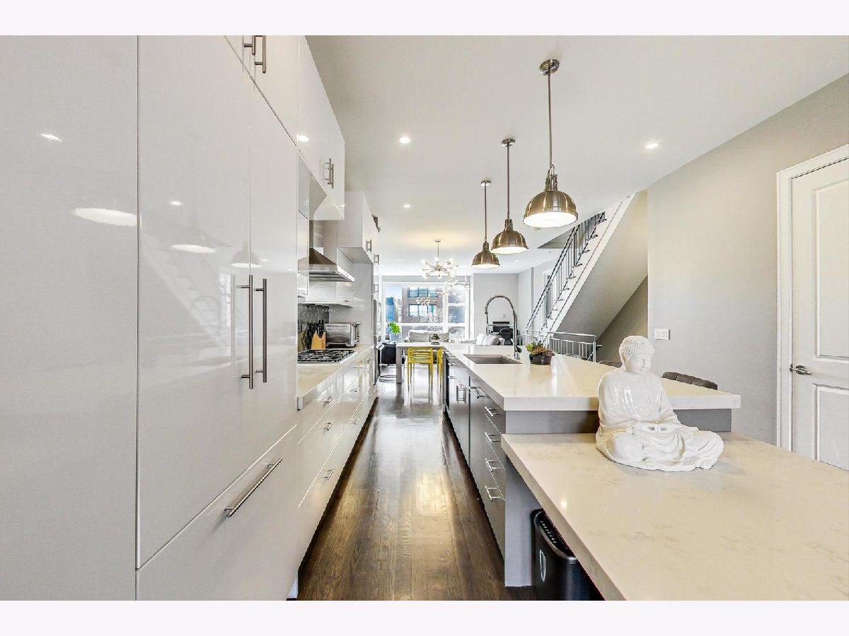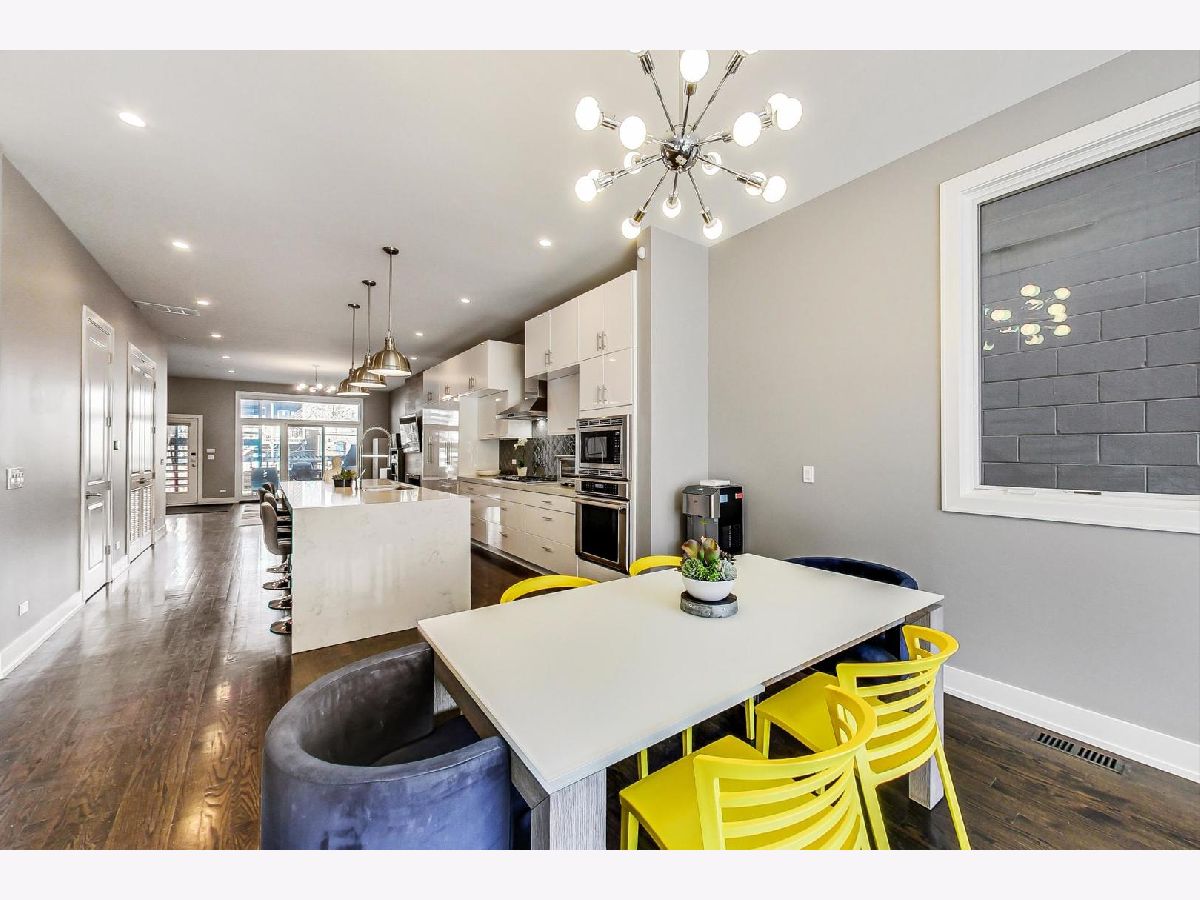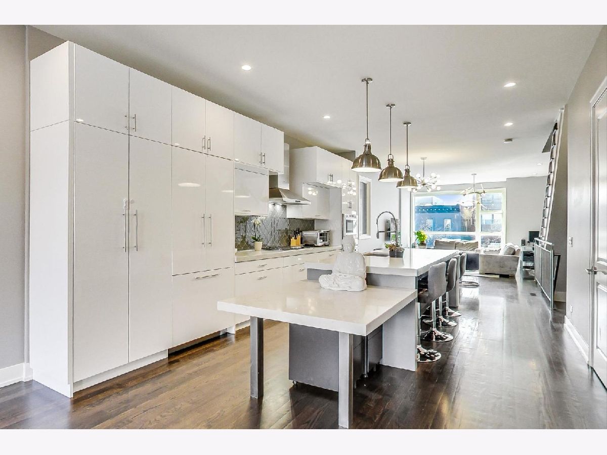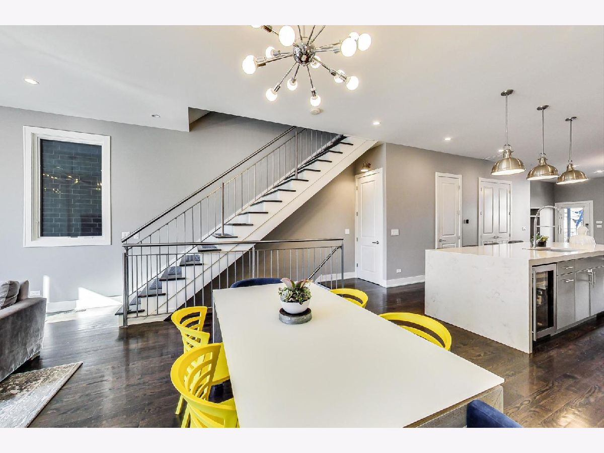A rare opportunity to own a highly customized, PENTHOUSE 3 bed/2.5 bath duplex-up with full rooftop deck in the ultimate West Town location! This unit was originally purchased pre-construction in 2015 and the owners made custom upgrades throughout the building process, setting this one apart from the rest. Located in an intimate two-unit building, this is one of the taller structures on the block with windows on four sides which offers an abundance of natural light in every room. The main level features two large living spaces, a dining room, open kitchen and convenient half bath. The transitional kitchen features a Thermdor custom designed range hood, Italian style cabinetry and 2.5" thick mitered quartz countertops with waterfall edge. All of the Thermador appliances are fully integrated with front panels that match the cabinets. Convenient U-line beverage center in the kitchen. The focal point of the kitchen is the 10 foot seamless island top with breakfast bar seating for up to 6 people with an additional attached table. There is an extra deep kitchen sink with a luxury Axor Citterio kitchen faucet. The designer family room light fixture was hand selected from Lightology. There are sleek wide plank hardwood floors that carry throughout both levels and the home has been freshly painted from top-to-bottom. On the second level you will find the three bedrooms and two full bathrooms. The spa-caliber primary bath features a HEATED porcelain tile floor, double vanity, frameless glass shower WITH STEAM and a separate tub. Thoughtfully selected Hansgrohe faucets and bath fixtures compliment the richness of the space. The primary bath has a Toto toilet and bidet system. LG washer and dryer located in a separate laundry room and the adjacent bedroom has an oversized large closet. Custom Smith & Noble horizontal, motorized window shades on the first level and custom blinds and drapery on the second level. Smart home automation with Ring doorbell, Ecobee thermostat, wifi connected light switches and Schlage door locks, all compatible with Amazon Alexa or Z-wave technology. The entire home is wired for ceiling speakers. The rooftop deck is the ultimate hangout space with sweeping skyline views. Roof deck is built with maintenance free composite decking and features an outdoor seating area, Definitive Technology speakers wired for music, play area, TV mount, gas and water hook ups, and interior bar with beverage center, sink, and cabinetry. Remarkable block filled with friendly neighbors and impromptu sidewalk happy hours and play dates. Walk down Chicago Ave and stop for groceries at Mariano's, pick up a pizza at Roots or have a beer at Funkenhausen. Quick access to 90/94 Expressway if you need to head to the airport or downtown. This is a commuter's dream! Ample street parking available for guests. Pet friendly building with a common turfed back yard. Imagine spending your next Chicago summer living here!