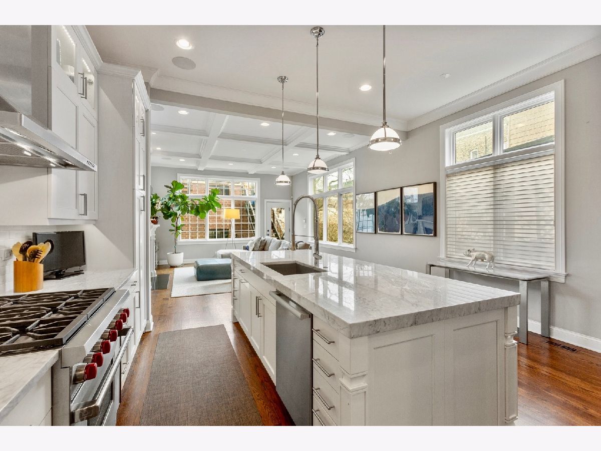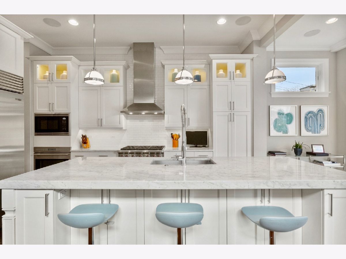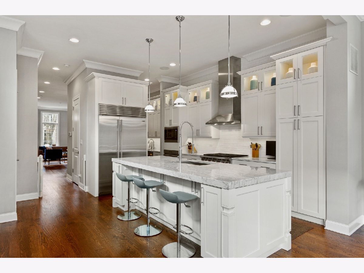Amazing all brick and limestone single family home in the heart of Bucktown with an incredibly high end fully built out on the rooftop and garage deck. As you enter the home, you're greeted with a beautiful living room featuring a wood burning fireplace and separate dining room. The stunning kitchen includes an oversized marble island, top of the line Wolf & SubZero appliances and a butler's pantry equipped with a beverage fridge and additional sink. The kitchen flows seamlessly into the family room, which boasts a second wood burning fireplace, large windows as well as a rare side wall of windows that fill the space with an abundance of natural light. The rear of the home connects to the backyard and garage custom rooftop deck - perfect for entertaining! The garage itself is heated and has an available lift for a 3 car configuration. The second level leads to 3 additional bedrooms and 2 bathrooms, plus a convenient second floor laundry. The primary suite features a spacious bedroom with fireplace, two walk-in closets and a lovely bathroom with two vanities, marble flooring and surround, separate soaking tub, steam shower, and heated floors. On the lower level, you'll find a substantial rec room with a wet bar, beverage fridge, two additional bedrooms and bathroom, laundry room - and the lower level has the highly sought after radiant heated floors to keep you warm in the cold Chicago winters. The AMAZING roof deck is an entertainer's dream and is one of the most spectacular in all of Bucktown. The fully built out rooftop includes a wet bar, beverage fridge, large bar area, sitting area, gas fire table, outdoor pool table, as well as a tv and retractable shades and a separate area that gets great sun with faux grass. The home is located in the dead center of the prime area of Bucktown at Wood and Wabansia. Walk to Damen shops/restaurants, the super popular 606 running/walking trail, both the blue line and Metra line, as well as easy access to 90/94 highway. Dog park just 3 blocks away as well as numerous playgrounds! ***Email John for full unbranded video***