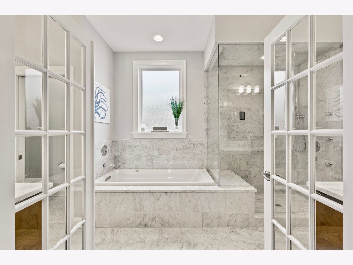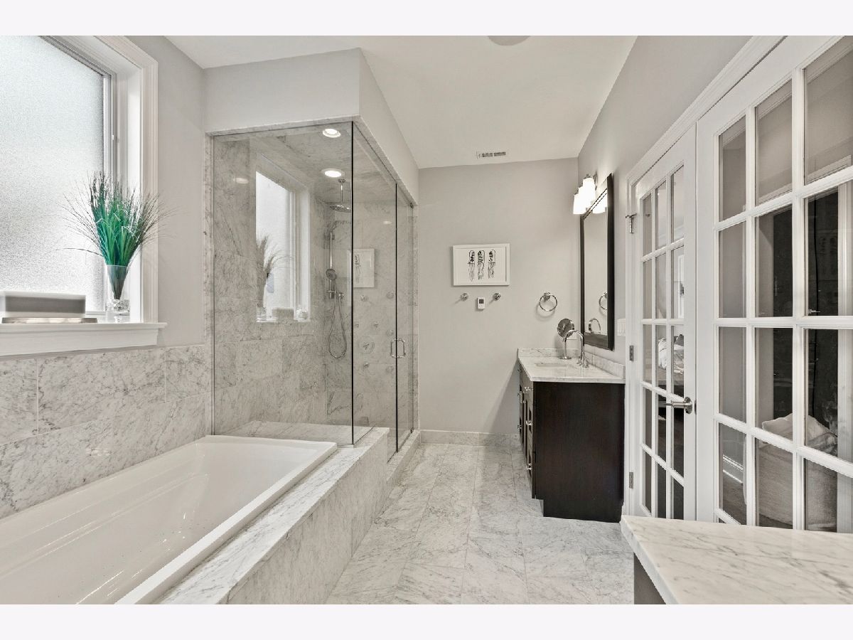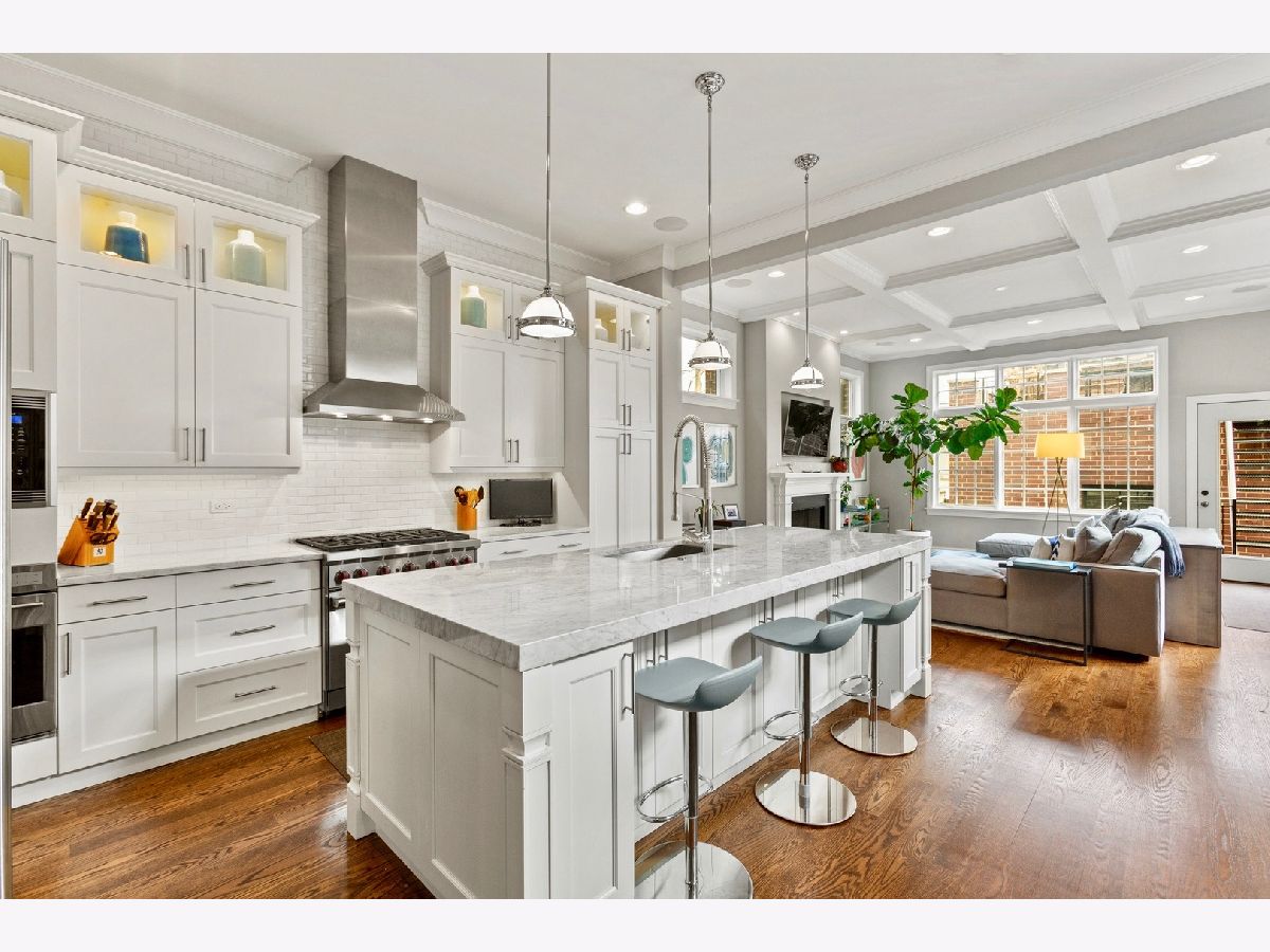 Amazing all brick and limestone single family home in the heart of Bucktown with an incredibly high end fully built out on the rooftop and garage deck. As you enter the home, you're greeted with a beautiful living room featuring a wood burning fireplace and separate dining room. The stunning kitchen includes an oversized marble island, top of the line Wolf & SubZero appliances and a butler's pantry equipped with a beverage fridge and additional sink. The kitchen flows seamlessly into the family room, which boasts a second wood burning fireplace, large windows as well as a rare side wall of windows that fill the space with an abundance of natural light. The rear of the home connects to the backyard and garage custom rooftop deck - perfect for entertaining! The garage itself is heated and has an available lift for a 3 car configuration. The second level leads to 3 additional bedrooms and 2 bathrooms, plus a convenient second floor laundry. The primary suite features a spacious bedroom with fireplace, two walk-in closets and a lovely bathroom with two vanities, marble flooring and surround, separate soaking tub, steam shower, and heated floors. On the lower level, you'll find a substantial rec room with a wet bar, beverage fridge, two additional bedrooms and bathroom, laundry room - and the lower level has the highly sought after radiant heated floors to keep you warm in the cold Chicago winters. The AMAZING roof deck is an entertainer's dream and is one of the most spectacular in all of Bucktown. The fully built out rooftop includes a wet bar, beverage fridge, large bar area, sitting area, gas fire table, outdoor pool table, as well as a tv and retractable shades and a separate area that gets great sun with faux grass. The home is located in the dead center of the prime area of Bucktown at Wood and Wabansia. Walk to Damen shops/restaurants, the super popular 606 running/walking trail, both the blue line and Metra line, as well as easy access to 90/94 highway. Dog park just 3 blocks away as well as numerous playgrounds! ***Email John for full unbranded video***