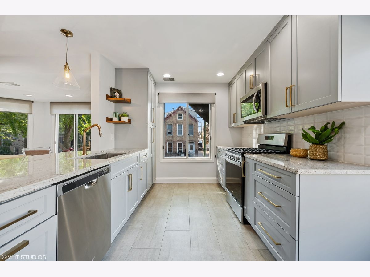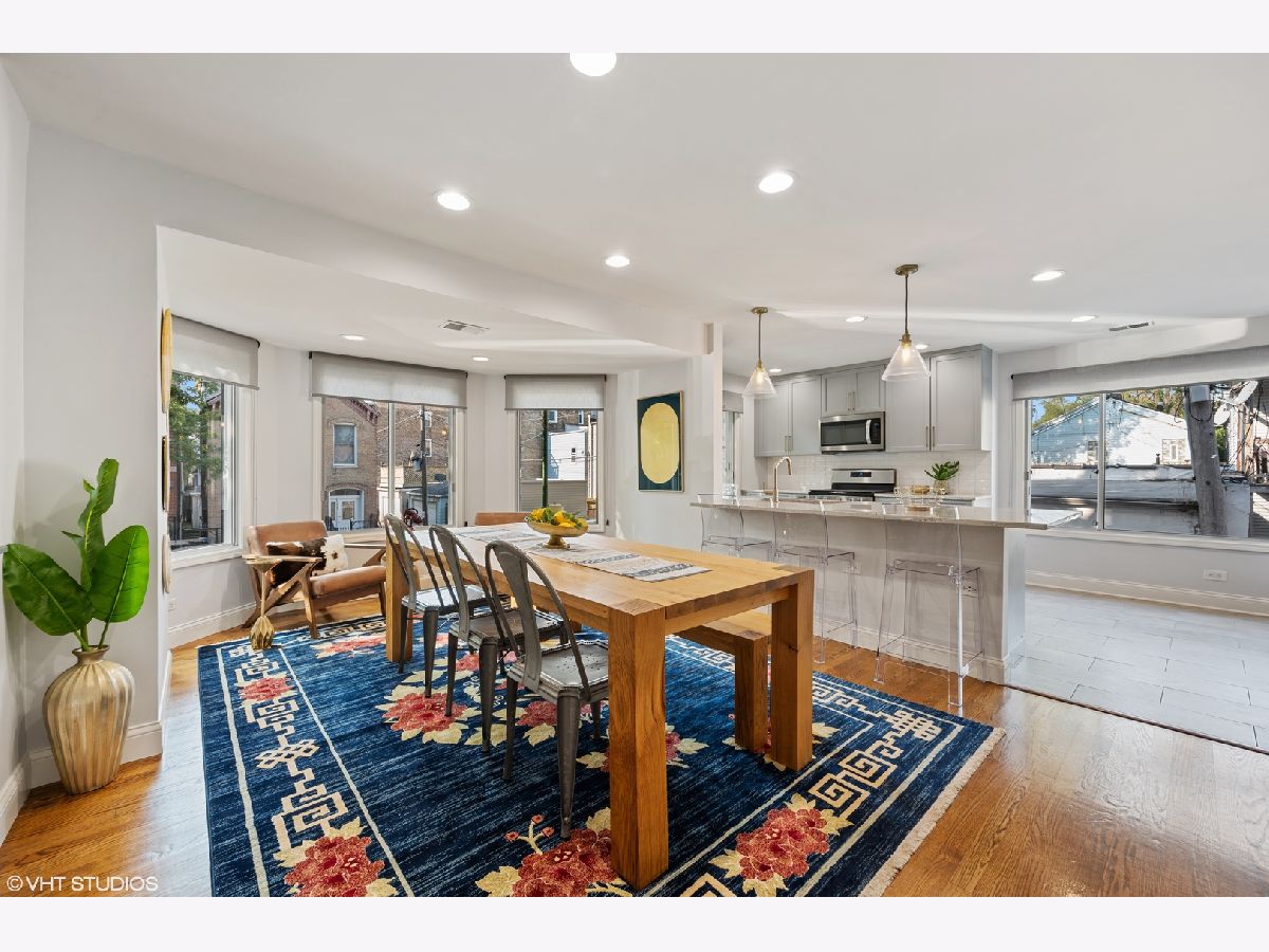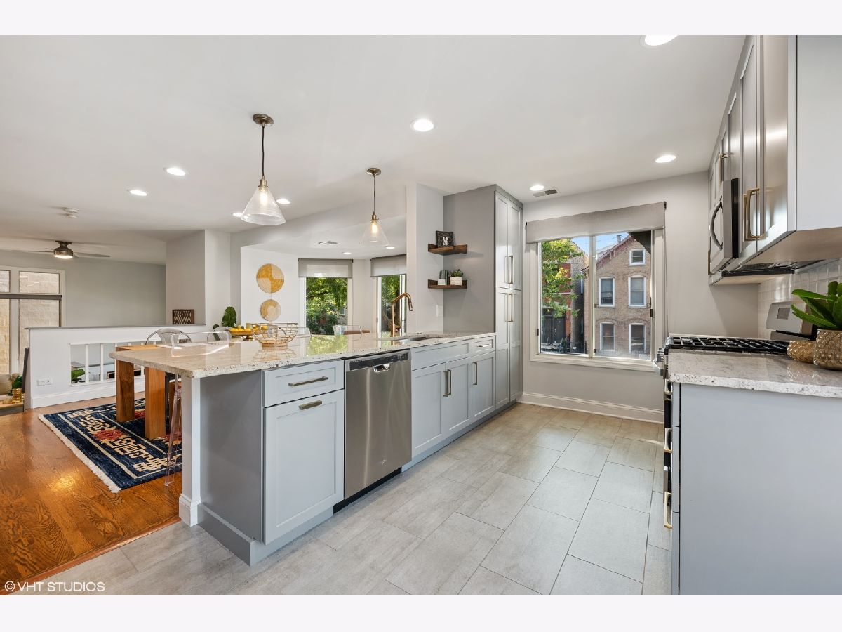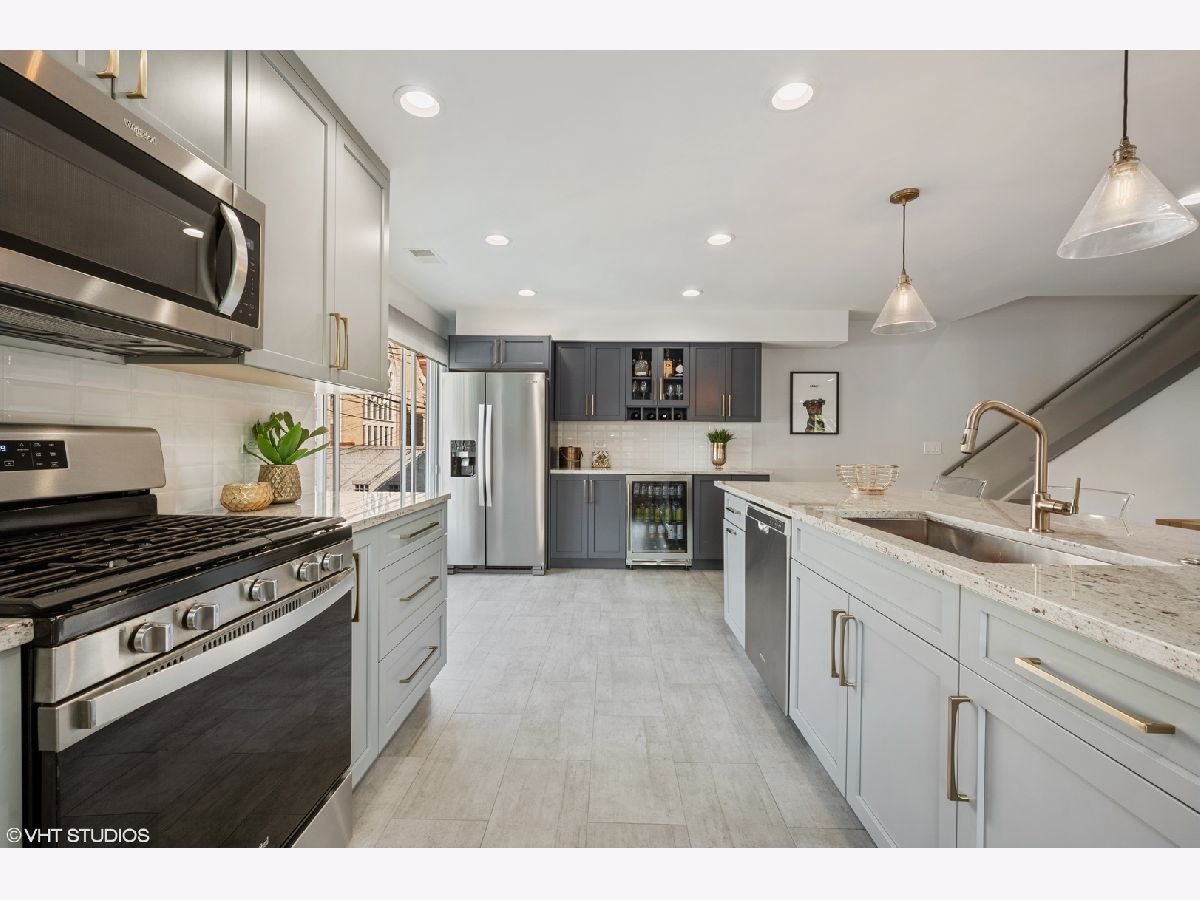 Sunny south facing, updated end unit in the heart of Bucktown/Wicker Park. This two-bedroom, 2.5 bath unit feels like a single-family home with 3 levels of extraordinary living space, private outdoor patio and an attached 2 car garage. Warm & inviting living room features high ceilings and a gorgeous fireplace. The impressive open kitchen has been expanded and is where you will entertain and enjoy most of your time. Timeless finishes include high end cabinetry with gold hardware that provides a big impact on style. Oversized island and separate coffee/wine bar area. Perfectly situated directly off the kitchen is your spacious dining room with a bay window overlooking the tree lined street. Upstairs are the 2 large ensuite bedrooms with organized closets. The inviting primary suite offers vaulted ceilings and a brand-new bath with dual sinks and an enormous walk in shower. The lower level is a multi-purpose room, this can be a family room / home office or 3rd bedroom. Best of all, enjoy your private fenced in patio. Side-by-side washer/dryer, ample storage and attached 2-car garage. A perfect location - Walk to the Blue Line at Ashland/Division or the Metra stop at Ashland/Clybourn. Incredible home in one of the best neighborhoods.