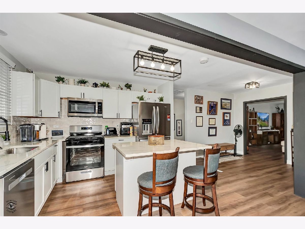 Your search ends here! This beautifully renovated 3-bedroom, 2-bath ranch home on a spacious corner lot features a brand-new open concept kitchen with quartz countertops, a spacious island, modern lighting, and stainless steel appliances. The gleaming vinyl flooring throughout creates a warm and inviting atmosphere. A new bay window in the large family room allows for plenty of natural light. The main bedroom includes an en suite full bathroom with meticulous details, and both bathrooms feature floating vanities and subway tile surrounds. All new exterior and interior doors come with modern hardware. The freshly stained deck is perfect for entertaining. The home also includes newer HVAC, a new hot water tank, and a new washer, dryer and custom installed blinds throughout. A brick paver driveway leads to a newer 2-car garage, complemented by fresh professional landscaping. Located close to I-57, Avenues Park, Fieldcrest Park, Oak Forest Park District, and Heritage Forest Preserve, this home offers modern amenities in a prime location. Don't miss this fantastic opportunity!