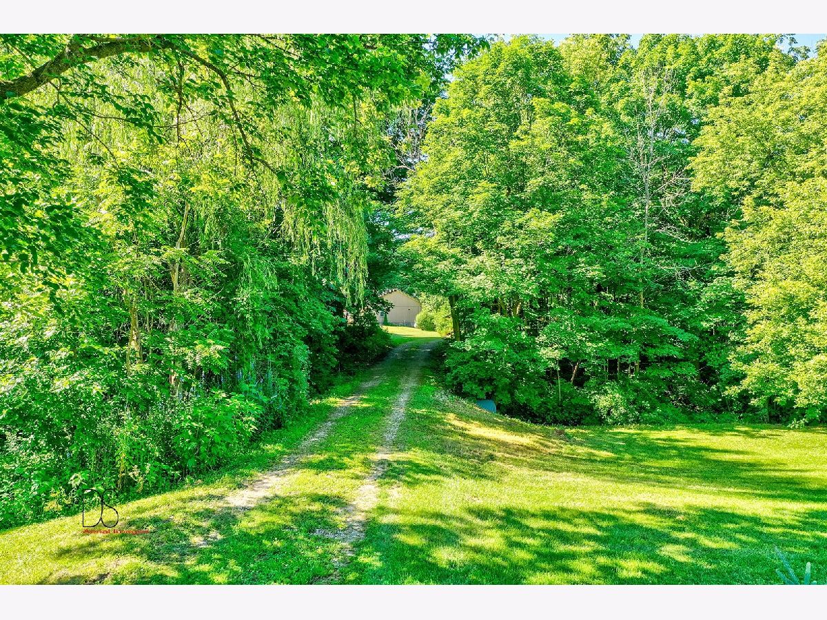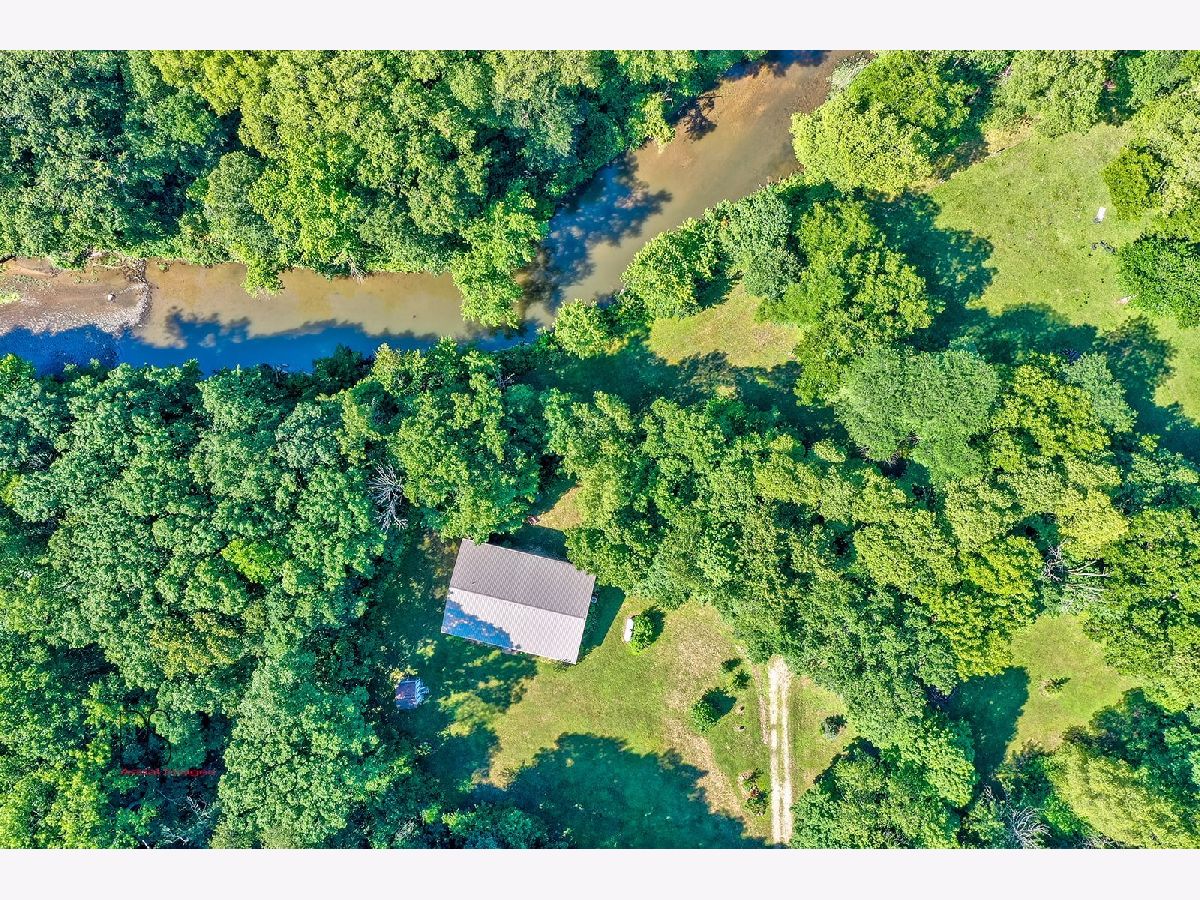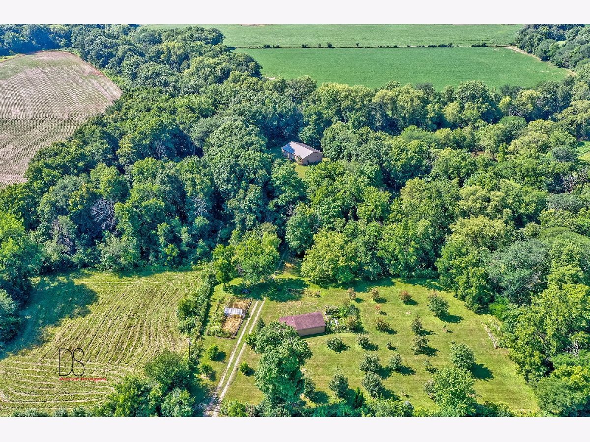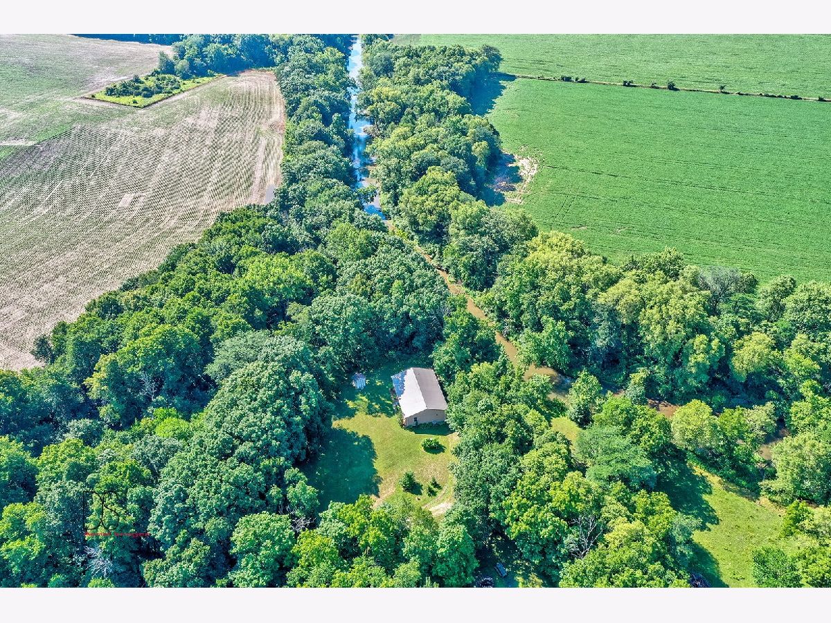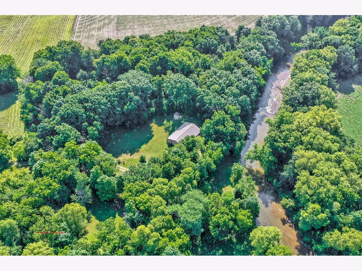 Rare opportunity to live on nearly 4 acres of private woods on Big Indian Creek. With over 280 feet of creek access in the rear and a small creek running through the center, the opportunities to enjoy nature at its best are bountiful. Cleary Building home is an open concept two bedroom/one bath home with eat-in kitchen open to living room; walkout basement and garage door leading to backyard/creek view. Easy to add additional bedrooms on either main floor or basement. Property is home to dozens of fruit trees including apple/plum/cherry/peach plus grape vines. Building for horses/bee-keeping area. Extraordinary property! Photos #26-#32 are photos of Shabbona County Park nearby. All dimensions are approximate.