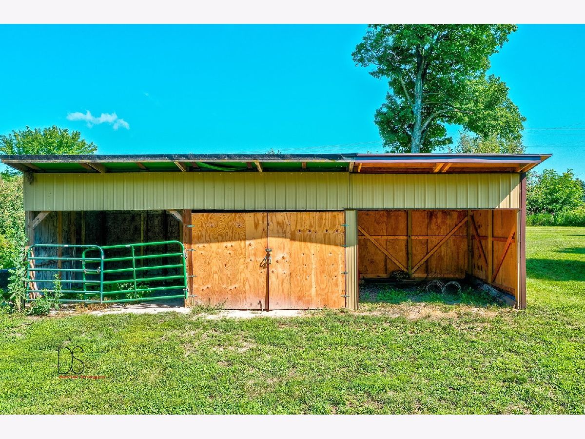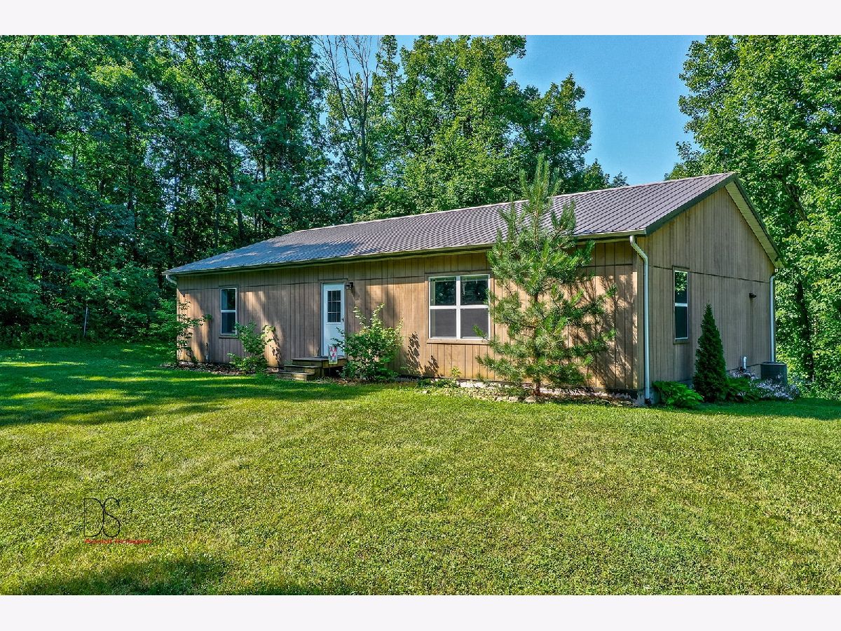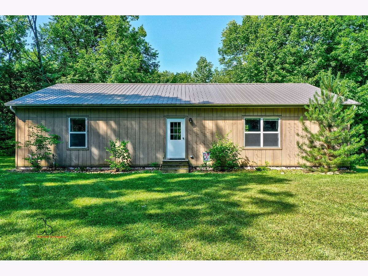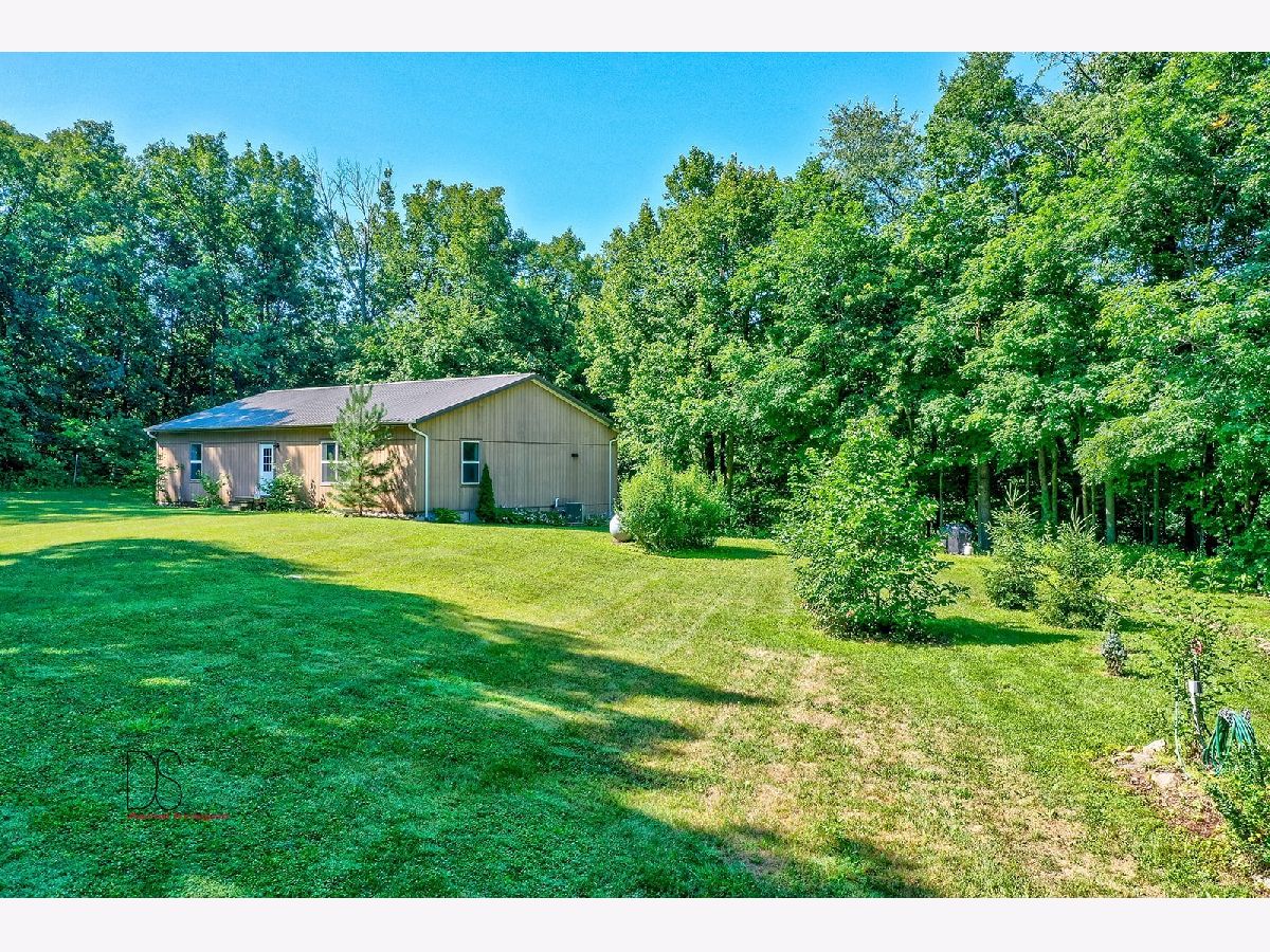 Rare opportunity to live on nearly 4 acres of private woods on Big Indian Creek. With over 280 feet of creek access in the rear and a small creek running through the center, the opportunities to enjoy nature at its best are bountiful. Cleary Building home is an open concept two bedroom/one bath home with eat-in kitchen open to living room; walkout basement and garage door leading to backyard/creek view. Easy to add additional bedrooms on either main floor or basement. Property is home to dozens of fruit trees including apple/plum/cherry/peach plus grape vines. Building for horses/bee-keeping area. Extraordinary property! Photos #26-#32 are photos of Shabbona County Park nearby. All dimensions are approximate.