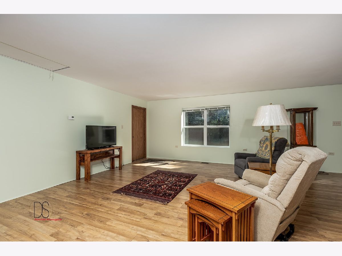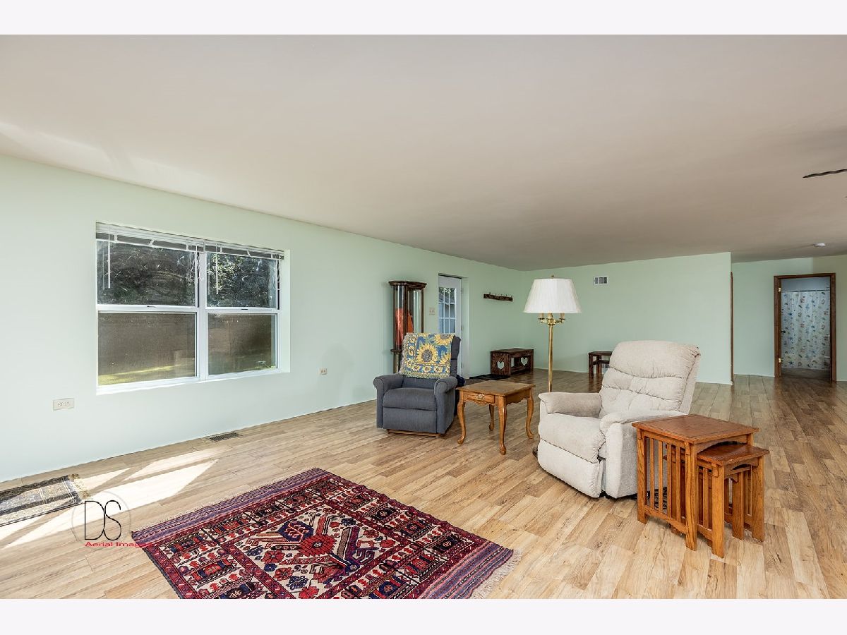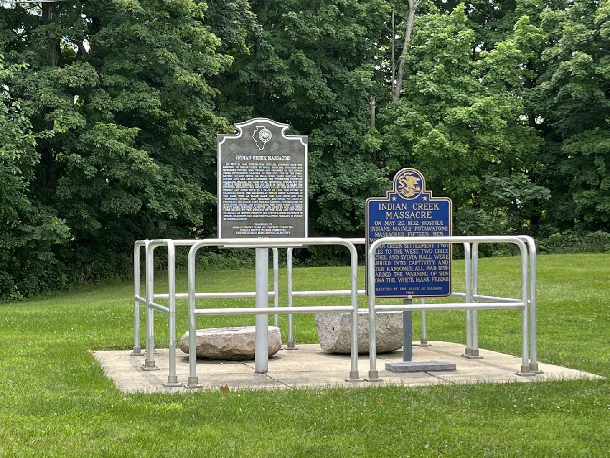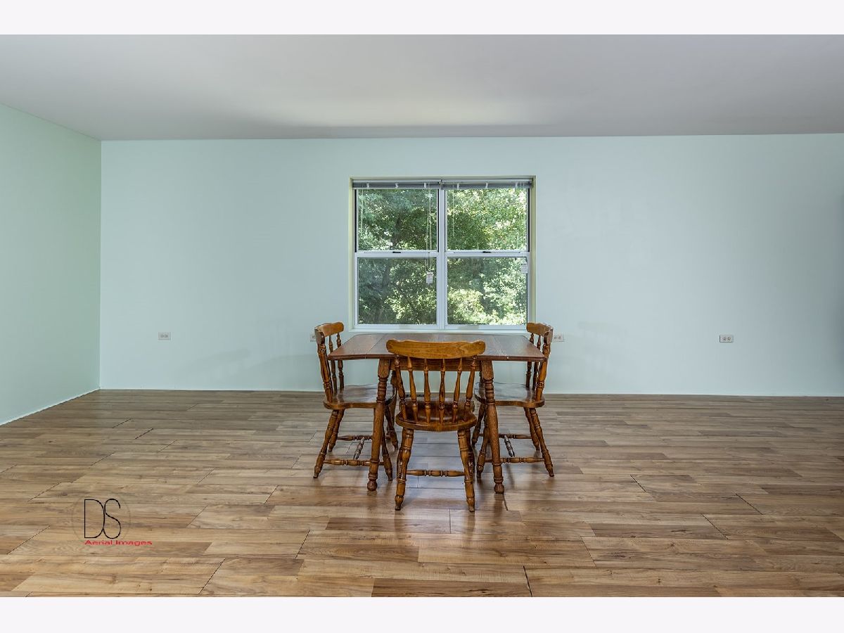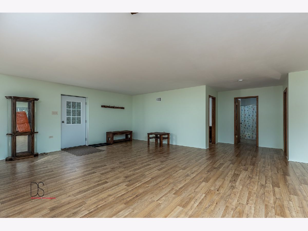Rare opportunity to live on nearly 4 acres of private woods on Big Indian Creek. With over 280 feet of creek access in the rear and a small creek running through the center, the opportunities to enjoy nature at its best are bountiful. Cleary Building home is an open concept two bedroom/one bath home with eat-in kitchen open to living room; walkout basement and garage door leading to backyard/creek view. Easy to add additional bedrooms on either main floor or basement. Property is home to dozens of fruit trees including apple/plum/cherry/peach plus grape vines. Building for horses/bee-keeping area. Extraordinary property! Photos #26-#32 are photos of Shabbona County Park nearby. All dimensions are approximate.