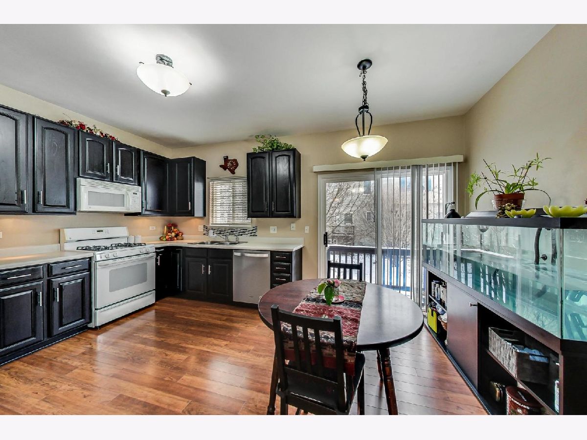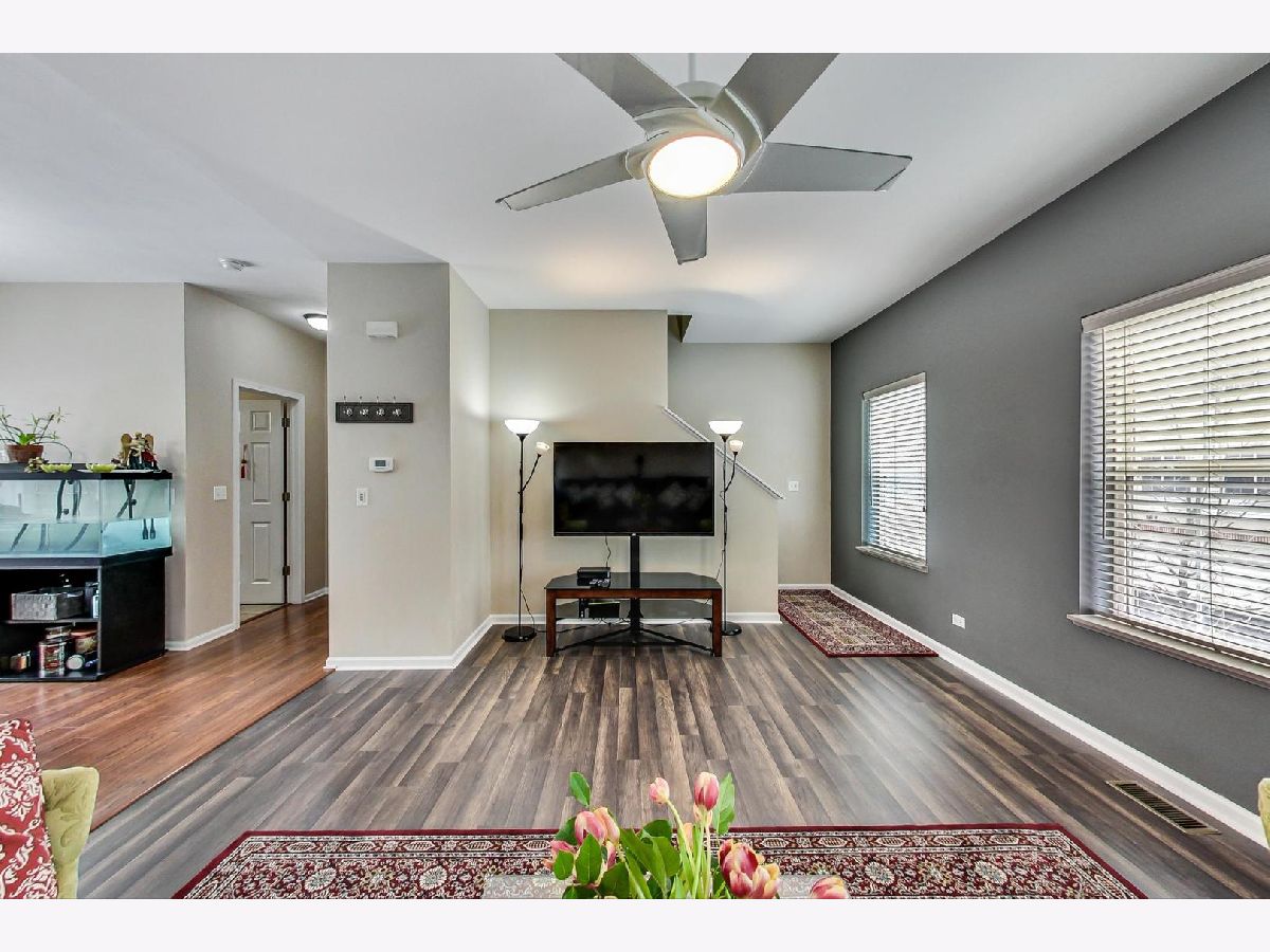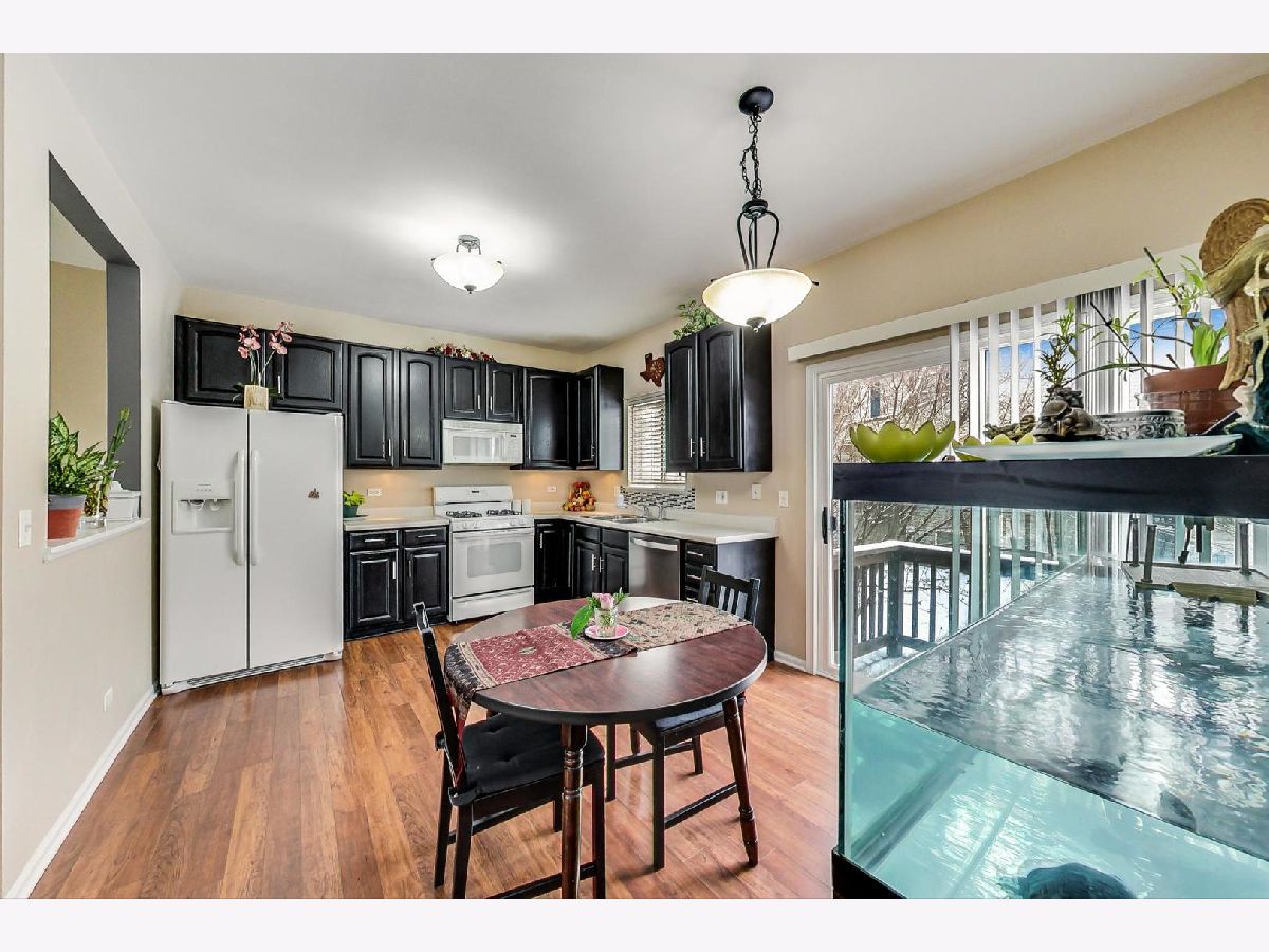 Remarkable townhome located in the Southwicke subdivision of Streamwood. Main floor features, spacious open floor plan with welcoming living room bursting with natural sunlight. Updated main floor half bath. New wood laminate floors throughout the main level. Modern kitchen includes a new dishwasher with kitchen table area. Private balcony for use adjacent to the kitchen. Second floor features large primary bedroom with a generous size walk-in closet and full bath. Sizeable 2nd bedroom features a ceiling fan with an ample sized closet space. 2nd floor laundry with a brand new washer. 2 car attached garage with 2 additional spaces to park on the driveway. Ample storage underneath the garage stairs and a separate utility/workspace room in the back of the garage. New hot water heater(2020). Home has been kept meticulously clean! Southwicke Park has a walking path around the tree lined subdivision. Well maintained community that's minutes from I-390 (8 mins) and Bartlett Metra Station(6 mins). Great location to shopping and entertainment as well.