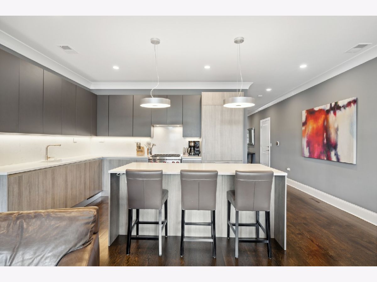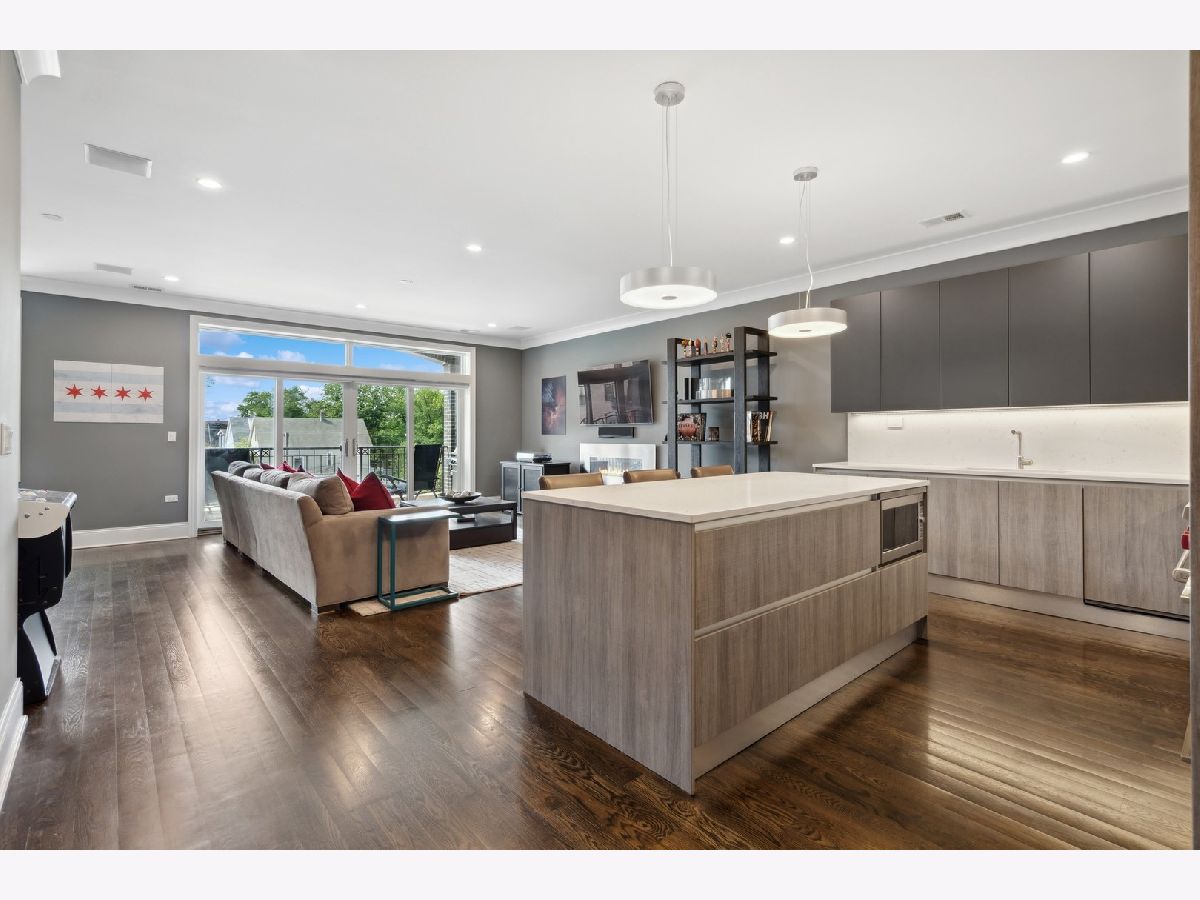 Walk to everything Roscoe Village has to offer from this 3 bedroom/2 bath home situated in a newer construction boutique building boasting high-end finishes, ELEVATOR, ATTACHED HEATED GARAGE PARKING, hardwood floors/millwork throughout and 3 OUTDOOR SPACES INCLUDING A PRIVATE ROOF DECK SPACE W/ELEVATOR ACCESS. Ideal layout features an open and spacious floor plan that effortlessly combines style and functionality. The living area is bathed in natural light, thanks to the high ceilings & south-facing 19' deck w/gas line - perfect for seamless entertaining and grilling. Gourmet kitchen is a chef's dream, including SCAVOLINI ITALIAN CABINETRY, WOLF/SUBZERO SS APPLIANCES, vented cooking hood and quartz island with breakfast bar. The primary bedroom is a tranquil oasis, featuring a custom organized walk-in closet, private deck and a luxurious en-suite bathroom with Toto & Graff fixtures, dual vanities, heated floor & spa-like shower. The two additional bedrooms are spacious and well-appointed, with plenty of closet space and large windows. Enjoy your MASSIVE (600SF) PRIVATE ROOF DECK AREA, accessible via the building's elevator. This outdoor sanctuary offers breathtaking panoramic views of the city and is the perfect place to relax or entertain. Well-maintained building includes private storage and Butterfly MX access/security system. When not enjoying your deck, walk to Whole Foods, Burley School, Target or Southport restaurants/shops!