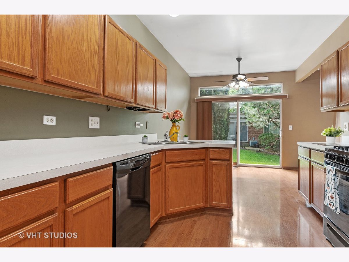 INVITING TWO-STORY END-UNIT TOWNHOME WITH FULL BASEMENT AND ATTACHED TWO CAR GARAGE! Convenient North Naperville location with 204 schools! Private entrance, 9 foot ceilings and wood laminate on first floor. Generous kitchen cabinets, counter space, overhang for stools and nice pantry. Dining room fits 70x40" table with great view! Over-sized windows with transom, sliding-glass door to back patio with privacy trees and green open area. Roomy bedroom suite with dual closets, private bath, double sink, large shower and dual closets. Spacious second bath with soaking tub and extra counter and cabinet space. Basement rec room (27x22!), office and laundry with hanging area and storage. End unit adds private entrance, extra first floor window with transom, additional privacy for the back patio, brick wrapped around the unit and side yard that's great for relaxing in Adirondack chairs or playing ball! New roof! New gas range! 3 yr new W/D! Newer appliances, faucets and light fixtures! Close proximity to schools, I-88, Dining, Entertainment, downtown Naperville and Metra with many express trains!