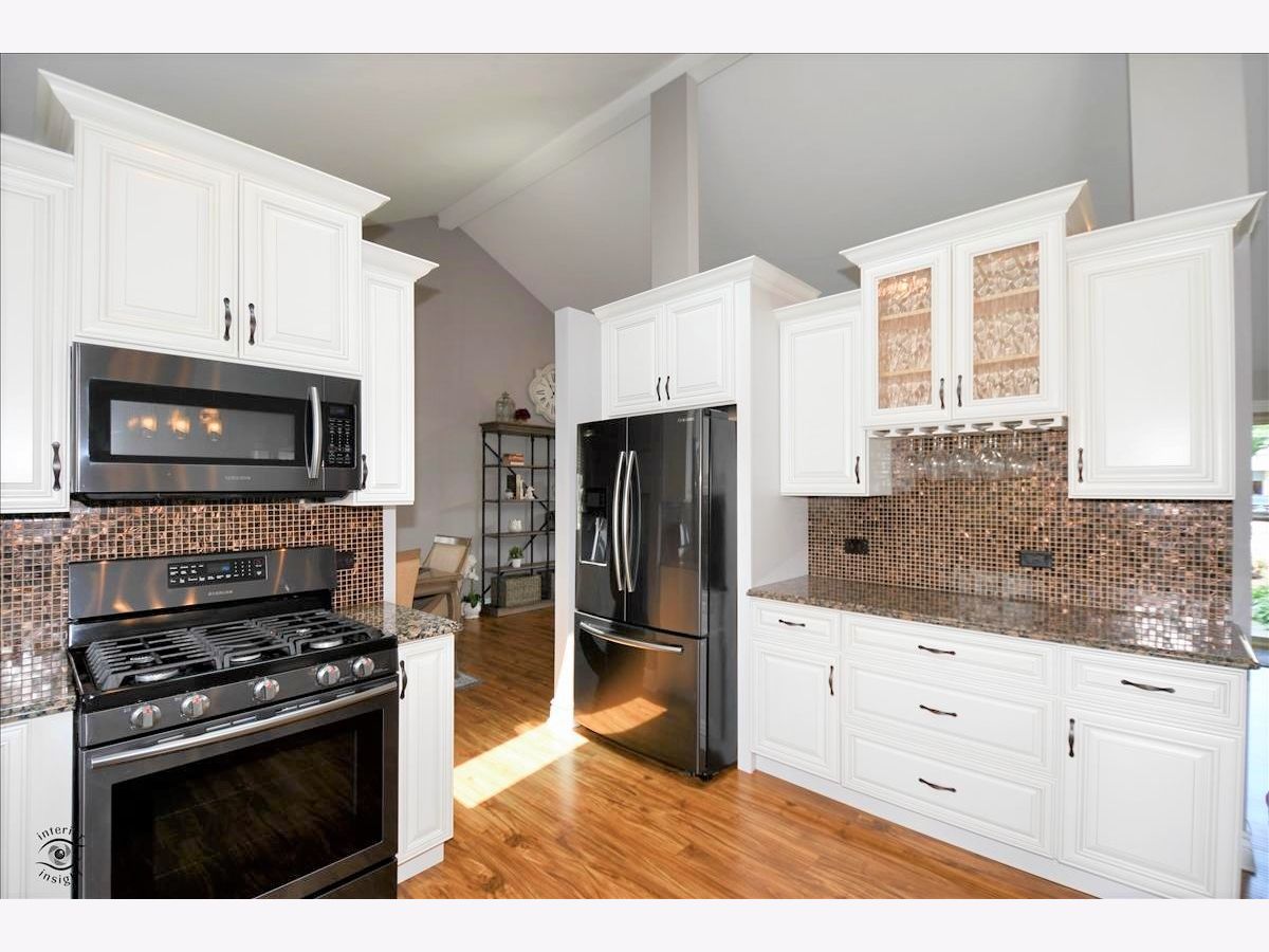 Come see this STUNNING MOVE-IN-READY, Exquisitely Updated meticulously maintained split level that features an open and airy living space with cool neutral hues, vaulted ceilings, crown molding, wrought iron spindles on staircase. Breathtaking kitchen boasts custom antique staggered white cabinets, granite countertops, beautiful backsplash, dark stainless steel appliances, large kitchen island with additional storage, vaulted ceilings and skylight. Easy to maintain hardwood floors throughout the entire home, included in all bedrooms. Sparkling bathrooms with glass shower doors. Primary bedroom features walk-in closet and additional closet with built-in organizer. Large lot that is steps from the school and directly across the street from playground. New roof and sunlight in 2018. This home could be yours!