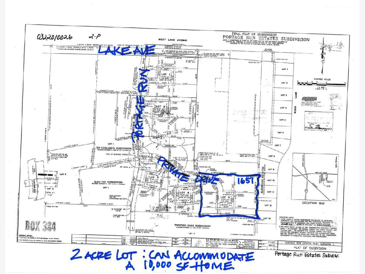 This is a unique opportunity to build the home of your dreams on this 2 acre parcel - close to everything Glenview has to offer, but in a quiet spot surrounded only by trees and beautiful vegetation. The parcel has been cleared and is ready for you to build! Bring your ideas and your architect. Or, we have approved plans for the perfect home, as well. Ask us about it. This is your chance to design and create your dream home on this one-of-kind, once-in-a-lifetime, amazingly scenic and secluded TWO-ACRE parcel -- literally blocks to all of the action and gems that Glenview has to offer (shopping at the Glen, downtown Glenview, convenient expressways, close to O'Hare, top-ranking schools, etc). Enjoy this bucolic and pastoral part of Glenview which gets its plant life from the nearby Glenview Grove. This parcel is gorgeous in every way. We've done all the hard work to make it easy for you! This is a unique opportunity to build on an untouched piece of land which is surrounded only by Mother Nature. This lot offers a rare and extraordinary opportunity for someone looking to build a spectacular home (up to 10,000 square feet) on a wooded, TW0-ACRE parcel. Nestled off of a private driveway off of a prestigious street lined with multi-million dollar homes, this gorgeous property is perfect for the person looking to be surrounded by natural vegetation and the peaceful sounds of birds and dropping leaves. Now, more than ever, we are all looking for wide-open space with clean air and away from people. Look no further. You have found the perfect spot to build your special home.