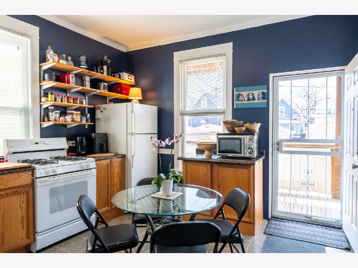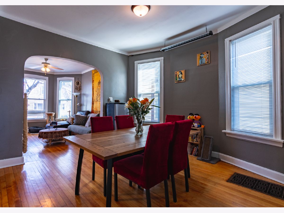 This Amazing Two-flat family-occupied bungalow is located in a great friendly neighborhood on the edge of the benefits of Logan Square, Hermosa, and Humboldt Park is move-in ready and truly the best of two centuries. The lower three-bedroom unit retains its gorgeous vintage charm and original features while the upper two-bedroom unit boasts more modernized finishes. The modern rehabbed owner's unit features bamboo flooring in the living room and both bedrooms. Stylish wooden blinds maintain privacy on the front windows and in both bedrooms while the living room has wicker and black-out shades. Both bedrooms have walk-in closets with lots of great shelving. The light and airy kitchen is ready for your culinary artistry and entertaining with two skylights, lots of cabinets, a baker's rack, hooks for kitchen-aid accessories, a built-in rack for wine glasses, and a 3-tier stainless steel cart for pasta rolling or bread baskets. An awning window lets in lots of light that is ideal for growing your own herbs. Kitchen electricity is spread over four circuits with lots of outlets to easily accommodate lots of appliances without ever tripping a breaker. The beautifully updated bathroom has an oversized bathtub and a power-flush toilet that will never clog. A full-height walk-out basement provides lots of room for storage or expansion. A finished laundry room with lots of cabinets and shelves will keep all your cleaning supplies and laundry super organized. Avers Avenue is a neighborhood one-way street with permit parking conveniently located near pre-and grammar schools, transportation including the Metra, numerous conveniences, and easy walking distance to the 606 Trail. Let this be your oasis. It won't be available for long! Separate Heat and electricity. Very spacious walk-out basement room to expand. Amazing backyard with 3 car parking pad with room to add a garage. Definitely, an amazing Oasis to come home to.