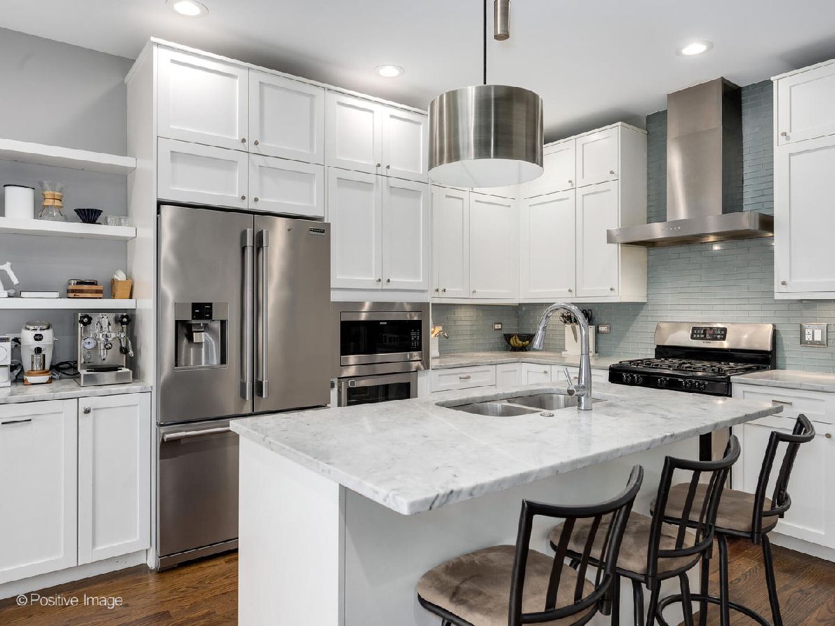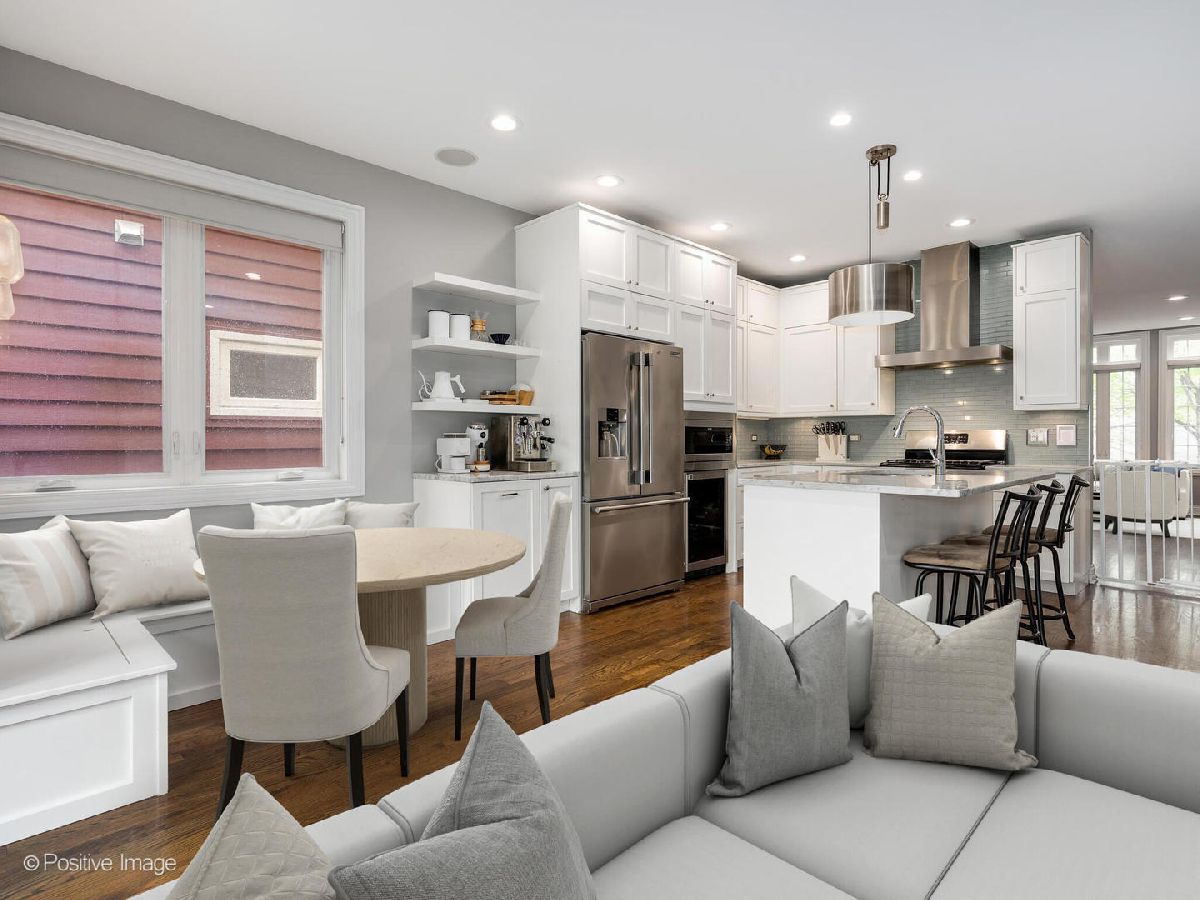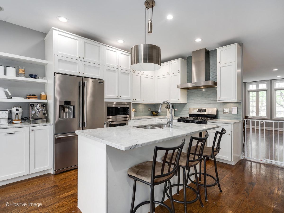 Fabulous all brick masonry home by esteemed Noah Properties, at a great price point. Located in hot West Bucktown, this home is located a stone's throw from the ever popular 606 Trail, as well as so many other conveniences. Situated with a sunny western exposure, there are beautiful hardwood floors that run throughout the main and second floor. Desirable floorplan with the gourmet kitchen open to the family room space complete with built-in breakfast nook, and family room with gas fireplace, and custom built-ins. Classic white shaker cabinetry, Marble counter-tops, center island, exhaust range hood, and full subway tile backsplash. Great second floor layout, with extraordinary primary suite, and both the second and third bedrooms having walk-in closets. Inviting lower level recreation room is highlighted by the dry-bar with beverage refrigerator. Laundry room is smartly laid out with side-by-side washer/dryer, utility sink, work counter-space, and additional storage. Enjoy the professionally landscaped backyard, outfitted with turf grass, and a great deck perfect for grilling and relaxing. Coveted 2-car garage. Maplewood Park at your doorstep, and an easy walk to the Western Blue line stop, and all the amazing bars/restaurants in Logan Square & Bucktown.