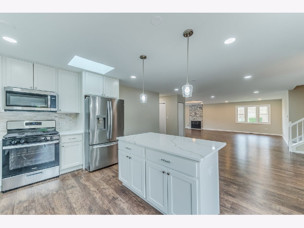 WOW! Better than NEW! Completely remodeled and ready to move in. No need to wait for new construction. This home exudes Style, Class and Elegance completed with an amazing functionality! Fantastic open floor plan that is great for everyday living and entertaining. Light filled living room with tray ceiling, laminate wood floors and fireplace with stone ledger is the focal point of the room. Get the kitchen of your dreams with new 42" white shaker style cabinets, quartz countertop, New SS appliances, new tile backsplash and island with additional cabinets and space for bar stools. Spacious and beautiful master suite offers spa like bathroom with newly tiled shower, custom glass door, new vanity. 2 more bright and spacious bedrooms and a full remodeled bathroom complete this level. Newly finished basement offers additional space for entertaining, laundry and storage room and combined. Large crawl space for extra storage. Newer roof, windows and siding. New hot water heater. Incredible location, minutes from I-55, downtown Plainfield, shops and restaurants.