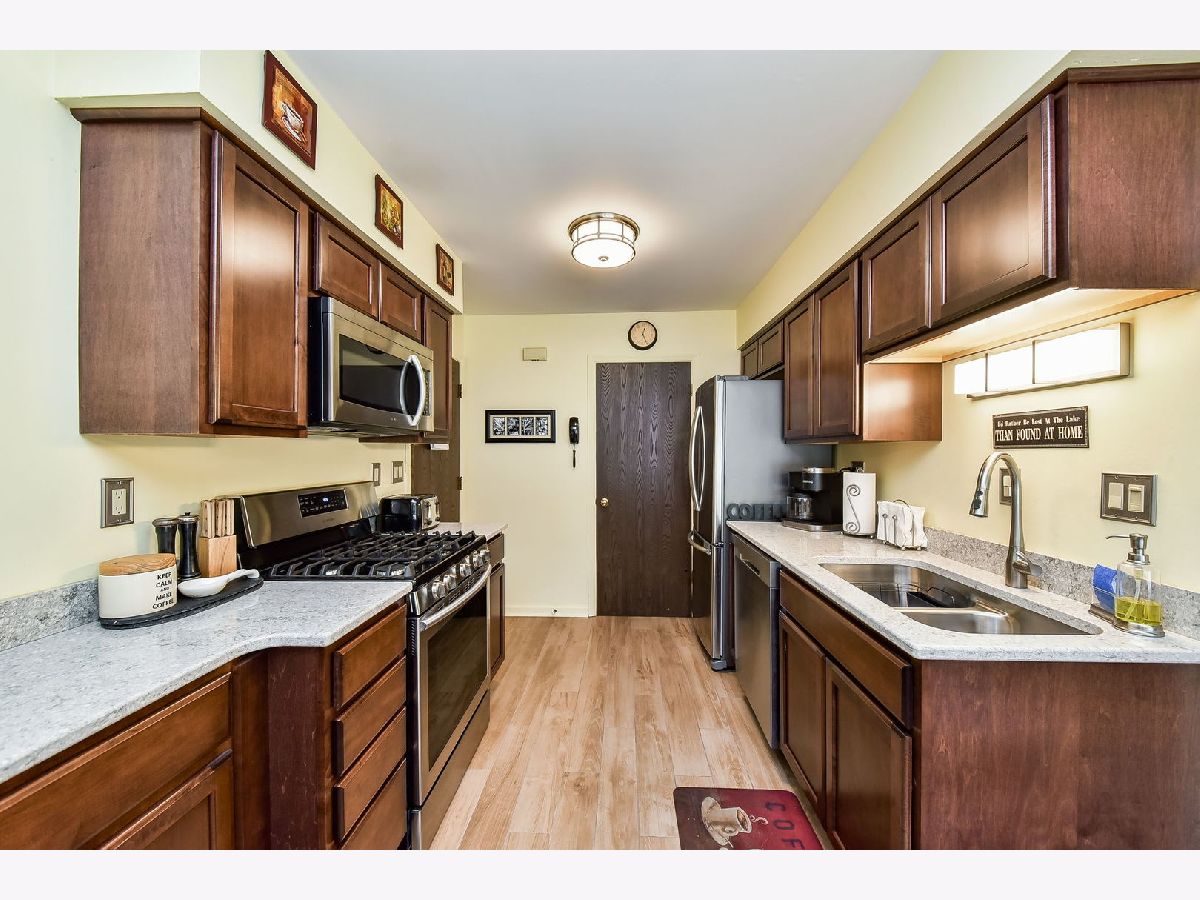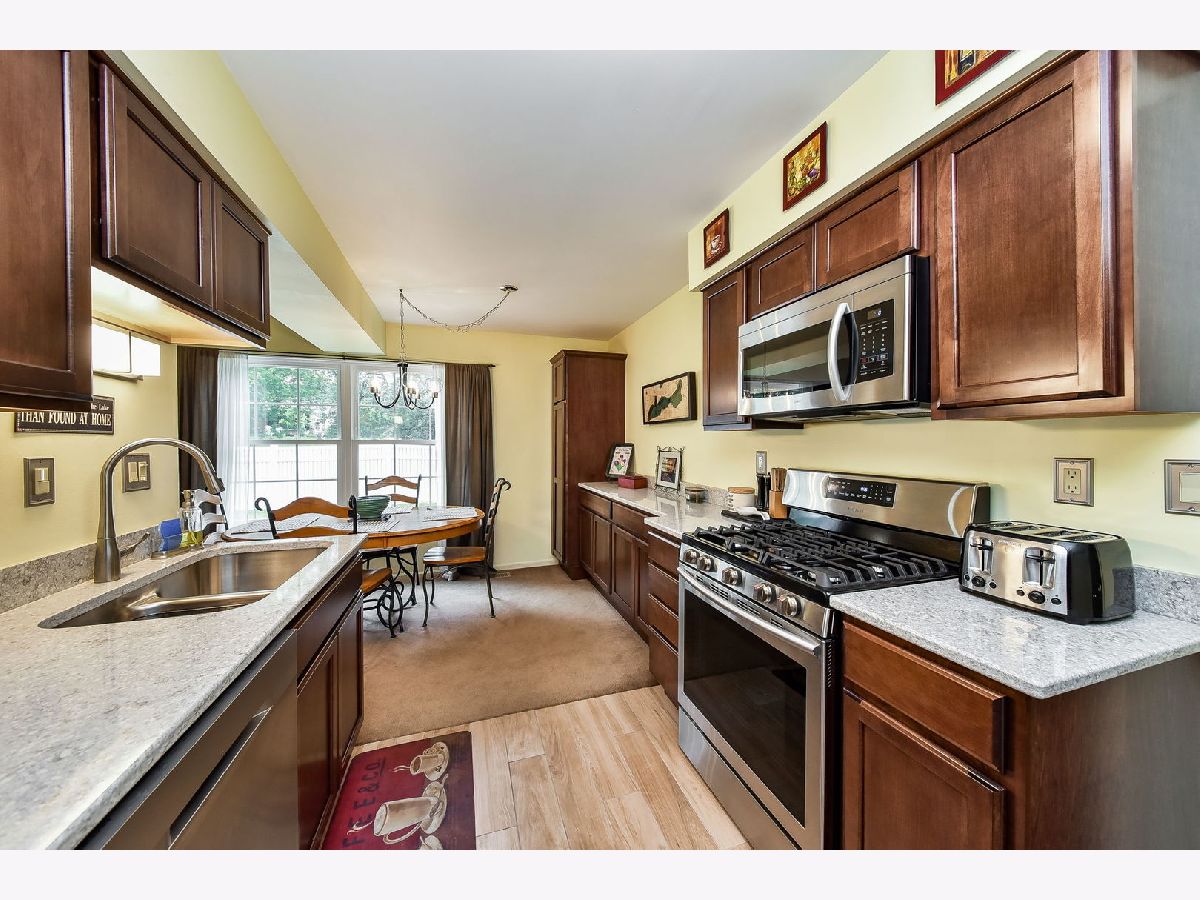 The very nicest rehab we've seen to date at The Trees of Wheaton! This two story end unit is light and bright with its newer Pella windows. The spacious living room affords plenty of space for family & friends and an oversize window highlights the dining area. The kitchen boasts beautiful maple cabinetry with deep drawers, quartz countertops, stainless appliances and new porcelain tile flooring. The powder room has the same porcelain tile floor and shares space with main level laundry. Access to the private garage completes the main level. Upstairs, don't miss the huge walk in closet in the hallway. The primary bedroom also offers a good size walk in closet. The hall bath has been beautifully updated and the second bedroom is perfect for guests or for use as a home office. The swimming pool is perfect for summer entertaining. This unit is wonderfully private and quiet, back far enough that road noise is minimal. Having a party? There is easy access for overflow. The Trees of Wheaton neighborhood is conveniently located near highways, the Metra train and Northwest Hospital (formerly Central DuPage Hospital). Come take a look - you'll love it!