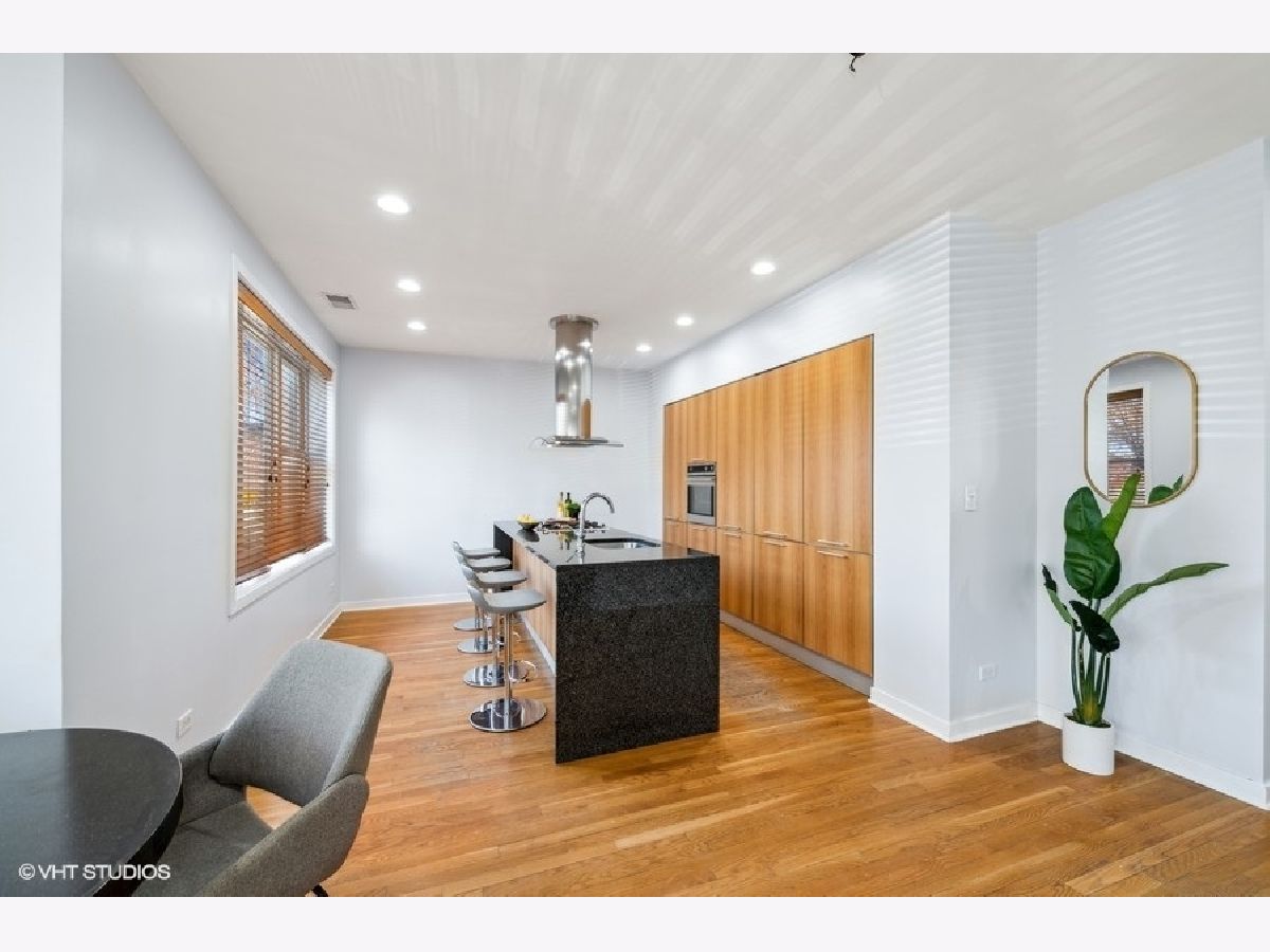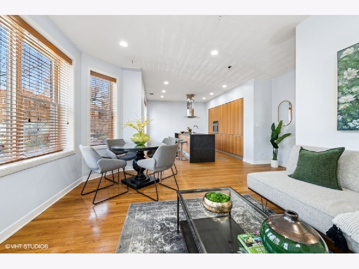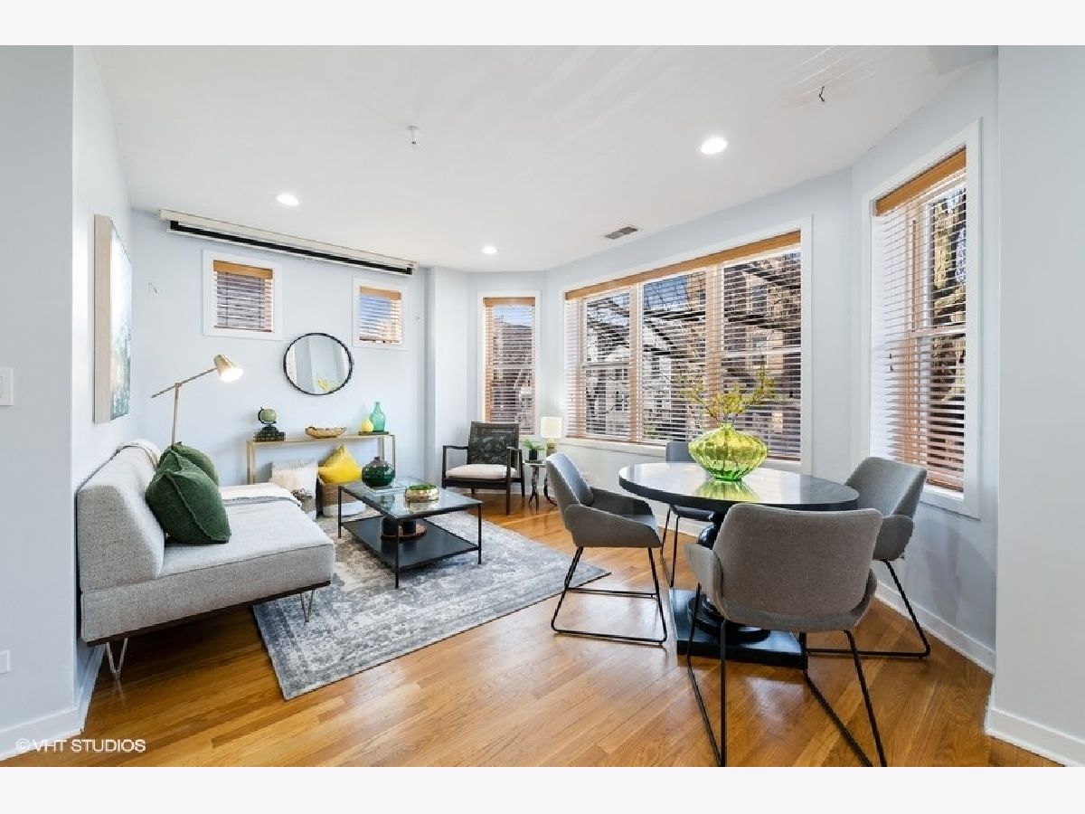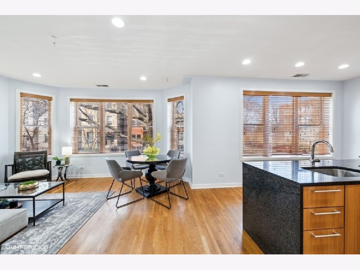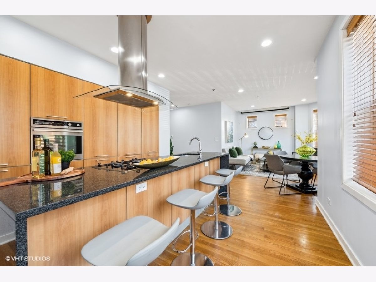 New to market sunny and light 2 bedroom/2 bathroom condo 1 block from The 606. Open concept main living area with a bay window allows natural light to flood into the space. European style kitchen with German appliances including built in refrigerator/freezer and dishwasher. Large granite island with waterfall edges. Recessed LED lights in the foyer and main living area. Nice sized bedrooms with large closets. Bathrooms boast modern look with custom tile in each. A jacuzzi tub in the first bathroom along with a floating vanity and stand-up shower in second bath. Natural hardwood floors throughout, In-unit washer/dryer, pre-wired for surround sound. Additional storage in rear common space 3x7. Easy permit street parking. Pet friendly. Countless neighborhood amenities abound and include a local grocery store, restaurants, and shops. Solid professionally managed HOA, Monthly HOA $295. New roof and tuckpointing completed in 2021