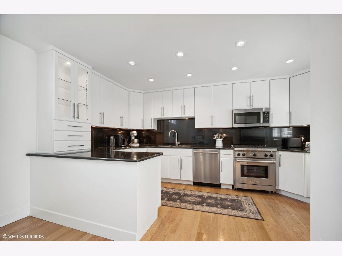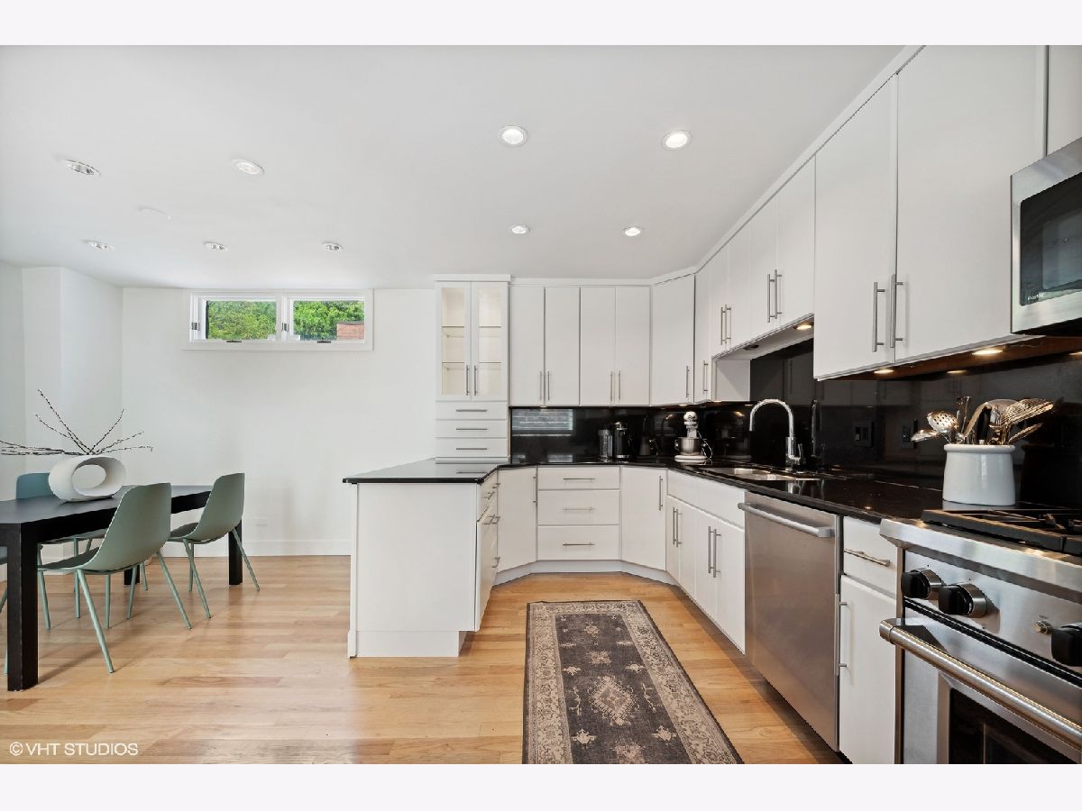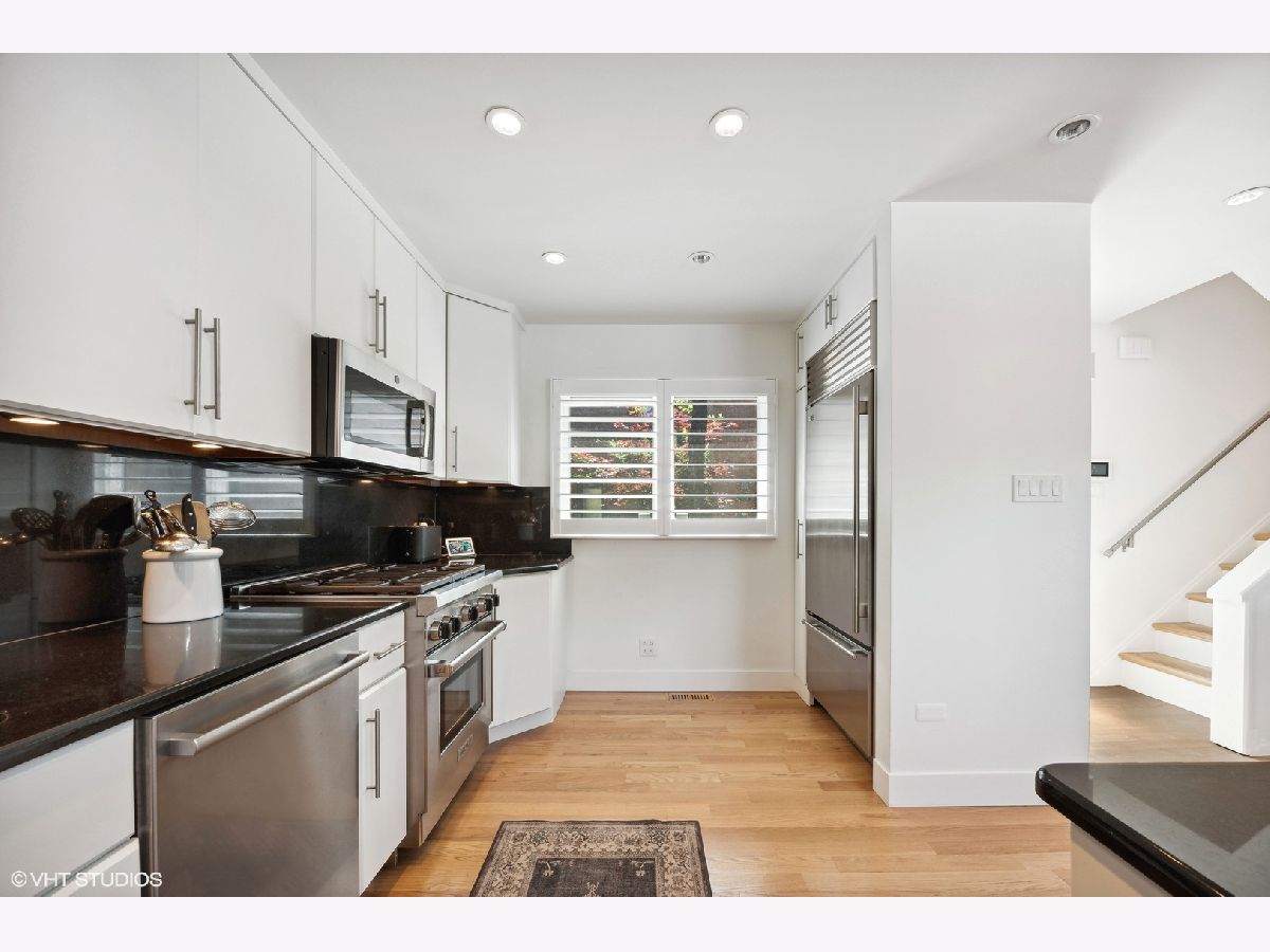 Nestled on a serene, tree-lined street in prime Lincoln Park, this fee-simple, full masonry townhome boasts four levels of functional living space, two inviting outdoor areas, extensive updates, and truly lives like a single-family home. Pull into your private one-car garage and step into an entertainer's haven, the expansive living room features new hardwood floors that seamlessly flow to your private patio, an ideal setting for grilling, gardening, and hosting. The chef's kitchen has been tastefully upgraded with top-of-the-line appliances including a Wolf range, Subzero fridge, and Bosch dishwasher, complemented by custom full-height cabinetry, granite counters and backsplash, and a conveniently adjacent dining area. Each bedroom in this move-in-ready home is bathed in natural light through oversized windows with new plantation shutters, features new hardwood floors throughout, high-end custom closets featuring LED lights and pull-outs, and has a dedicated full bath. The primary suite boasts a spa-like white marble bath, complete with a glass shower featuring penny tile flooring and a built-in bench, and tons of storage. Need a home office? You will love the second bedroom, which offers a full wall of custom, open shelving with storage below, enhanced by quartz counters, the perfect office space, complete with a rare green marble bathroom with an oversized and luxurious marble shower. The third bedroom comfortably accommodates a king-sized bed and features a recently updated all-white bath, showcasing quartz counters and a glass shower/tub combo. Step out onto your expansive private rooftop deck sitting atop a new tear-off roof, recently enhanced with Trex decking, offering skyline views and a perfect vantage point for the air and water show-a coveted spot for hosting and unwinding during sun-soaked summer days. The first floor presents a generous flex space that can adapt to your needs, whether as a home gym, family room, office, or theater and offers a well-equipped laundry room with side-by-side washer/dryer, as well as an abundance of storage. Situated just steps away from an array of exceptional restaurants, grocery stores, shops, and vibrant nightlife, including Trader Joe's, Jayson Home, CB2, Pottery Barn, Whole Foods, Anthropologie, Sephora, Summer House, Vinci, Alinea, and more. Located in the highly sought-after Lincoln Elementary school district and 0.3 miles from the North/Clybourn red line station. This home is sure to check every box. Welcome home!