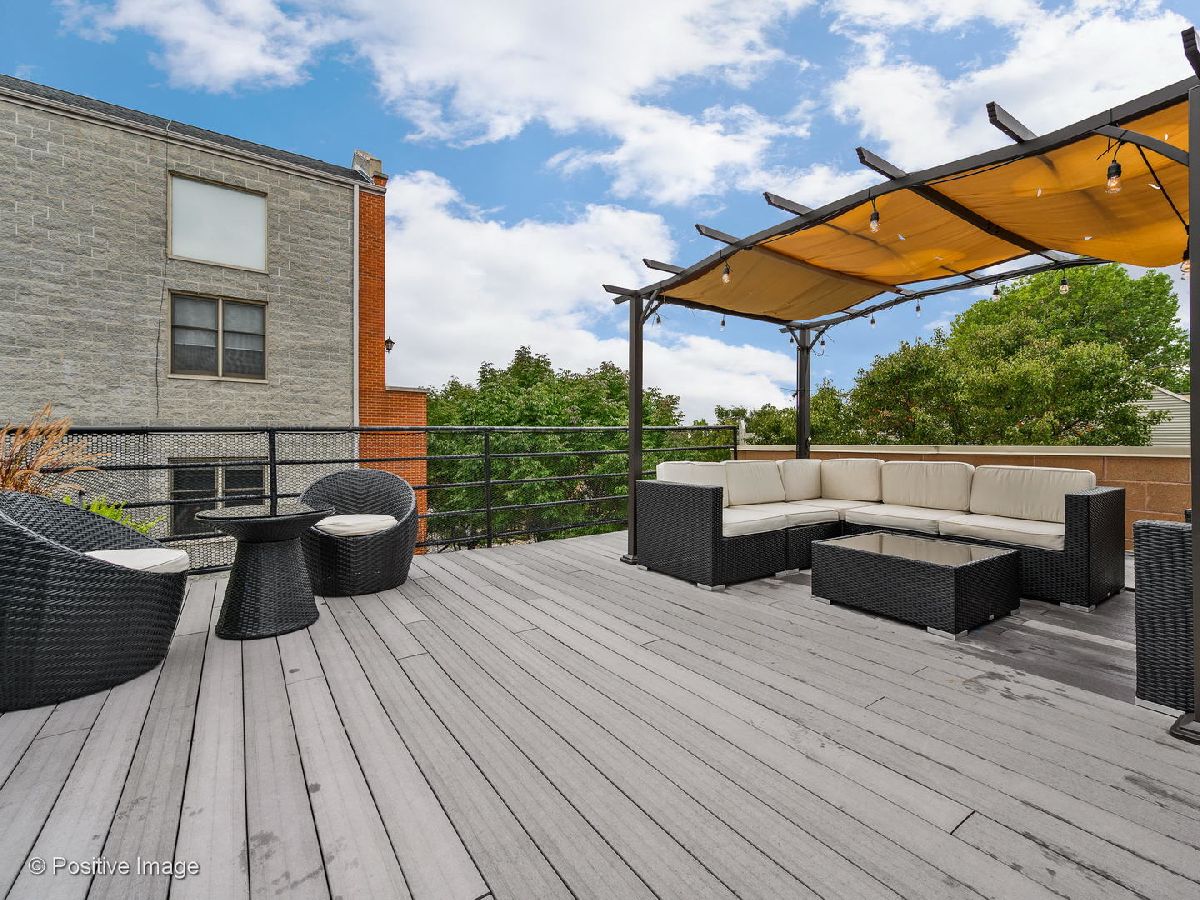 One of a kind opportunity on West Town's finest street. This beautiful home boasts over 3500 square feet of living space and features many updates completed in past 5 years including all new flooring(living room heated), new ClimateGuard windows, new Lennox air conditioners, new roof, new Ultradeck rooftop deck, brand new kitchen with Liebherr refrigerator, freezer and wine fridge, Miele range, and Bosch double oven. New cabinets and quartz countertops. Rooftop doghouse was extended out to make office/den and buffet with built-in cooler and cabinets, and walk directly out onto rooftop deck with no steps up or down. Corner lot allows for tons of light inside and airy feel on the rooftop. Amazing spot for entertaining. Secret basement sauna with clear white Aspen wood and high end Harvia heater. Walk from here to many restaurants, bars, breweries, and shops on Chicago Avenue and as a bonus, there is a Nema 14-50 outlet in the attached 2-car garage for your Tesla!