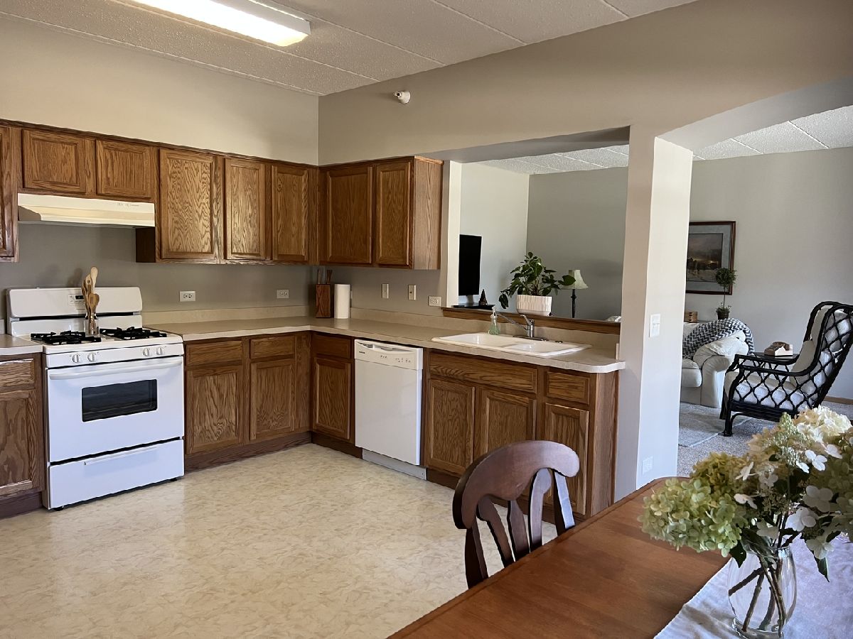 Highly sought after 1st Floor Condo is move-in ready. One level living in this immaculate 2 bed 2 bath flexicore unit with garage just steps from the back door. Sunny and light filled with plenty of windows and a private patio off the living room. Brand new carpet and neutral colors throughout. This unit shows like new construction, lightly used by seniors since it was built. Very generous kitchen with ample cabinets and counters. Sink overlooks the living room and lovely dining room adjoins the kitchen. Laundry room features full size washer and dryer Convenient rear entrance through the laundry room leads to one car garage. HWH new in 2021. Great location close to shopping, highways and walking/bike trails. Rentable unit. Quick close ok.