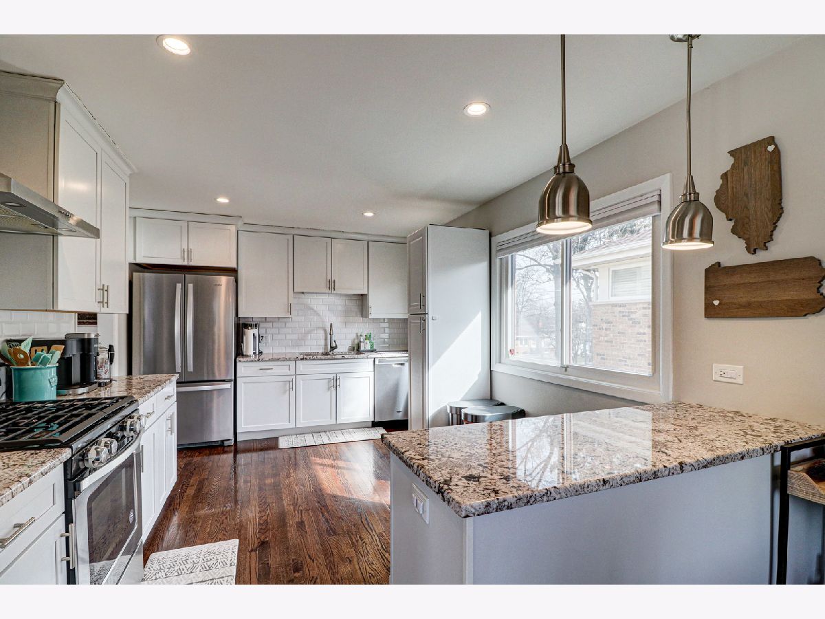 Beautifully updated home near downtown Palatine in Fremd high school district. Recent updates(2019) include new kitchen with white shaker cabinets, peninsula, granite counters, SS appliances, crown molding, and brushed Nickle hardware. Bathrooms were also completely updated and feature fine marble and porcelain tile. Walk out to brand new deck and patio for summer fun, and outdoor AV hookups to watch the big game. Just a gem.