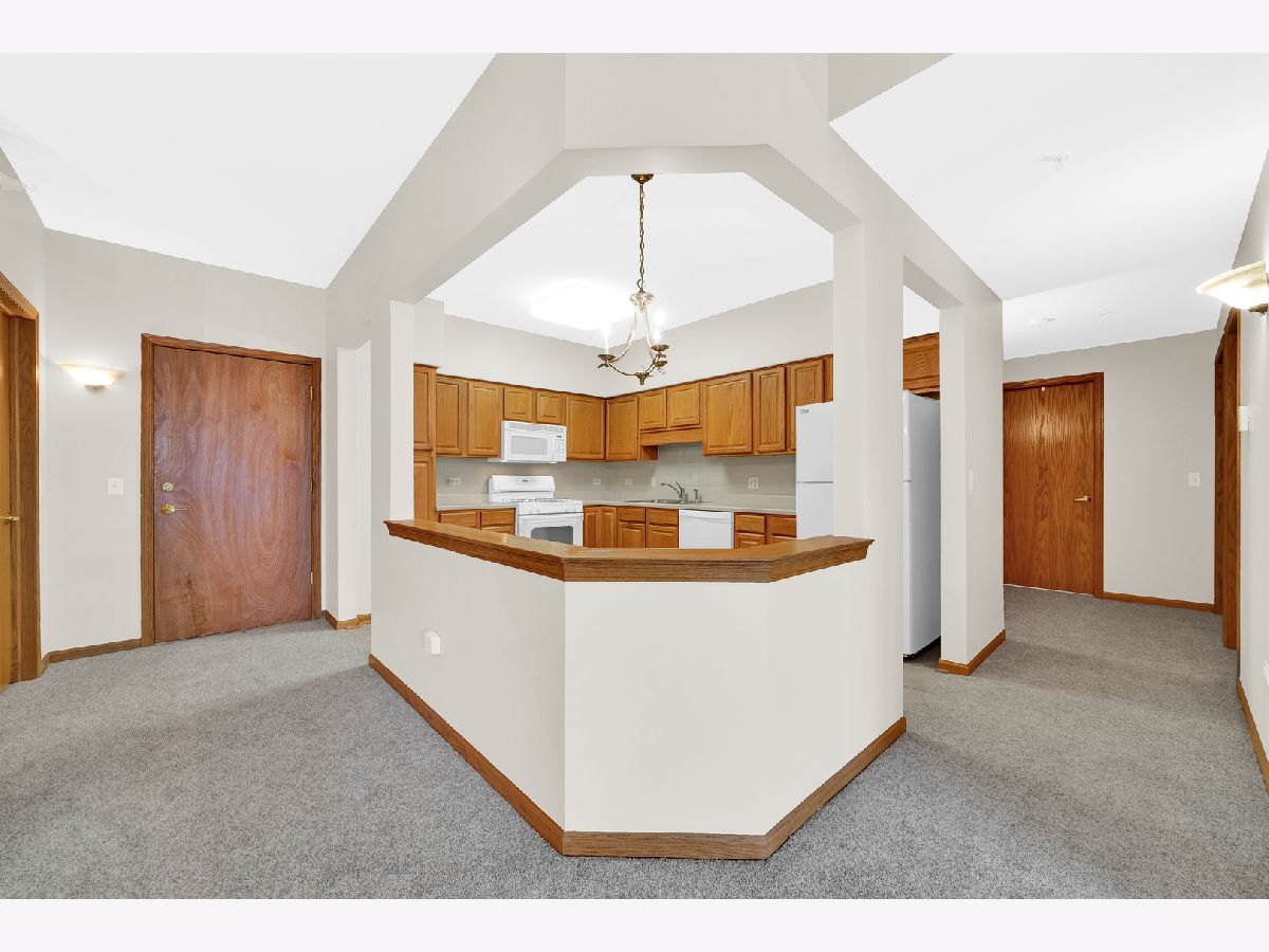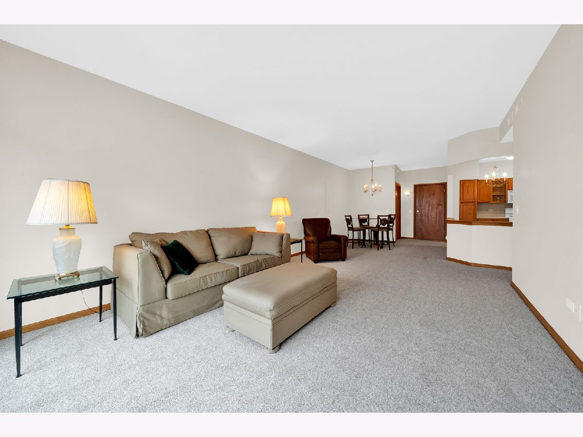 Rarely available top floor unit with tree tops and downtown of Des Plaines views at desirable River Mill building. Newer quality construction built by Norwood Builders in quite location, yet only steps from Metropolitan Square, shopping, restaurants and Metra station. Light, move-in ready 2-bedroom condo with huge balcony and in-unit washer and dryer. Brand new carpet with premium padding and fresh paint throughout. Large walk-in coat closet and good size linen closet. Eat-in kitchen with new stove, microwave and dishwasher. Heated parking in secured garage and huge (9x6) storage closet. Quite living with thermal pane windows, concrete floors and wall slabs. Ideal location with easy access to I-294/I-90, O'Hare airport and Downtown of Chicago. Pet friendly building!