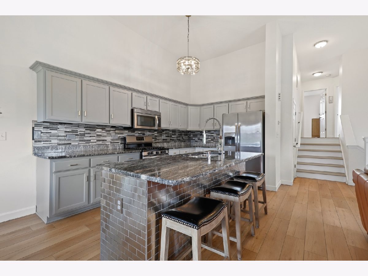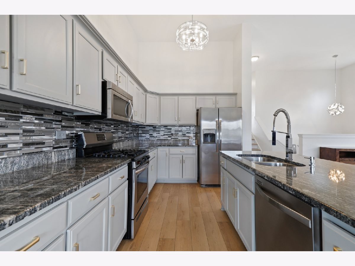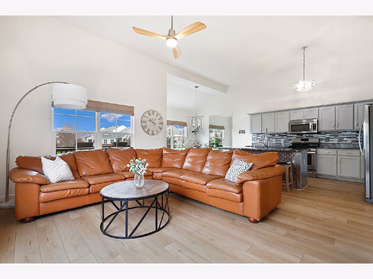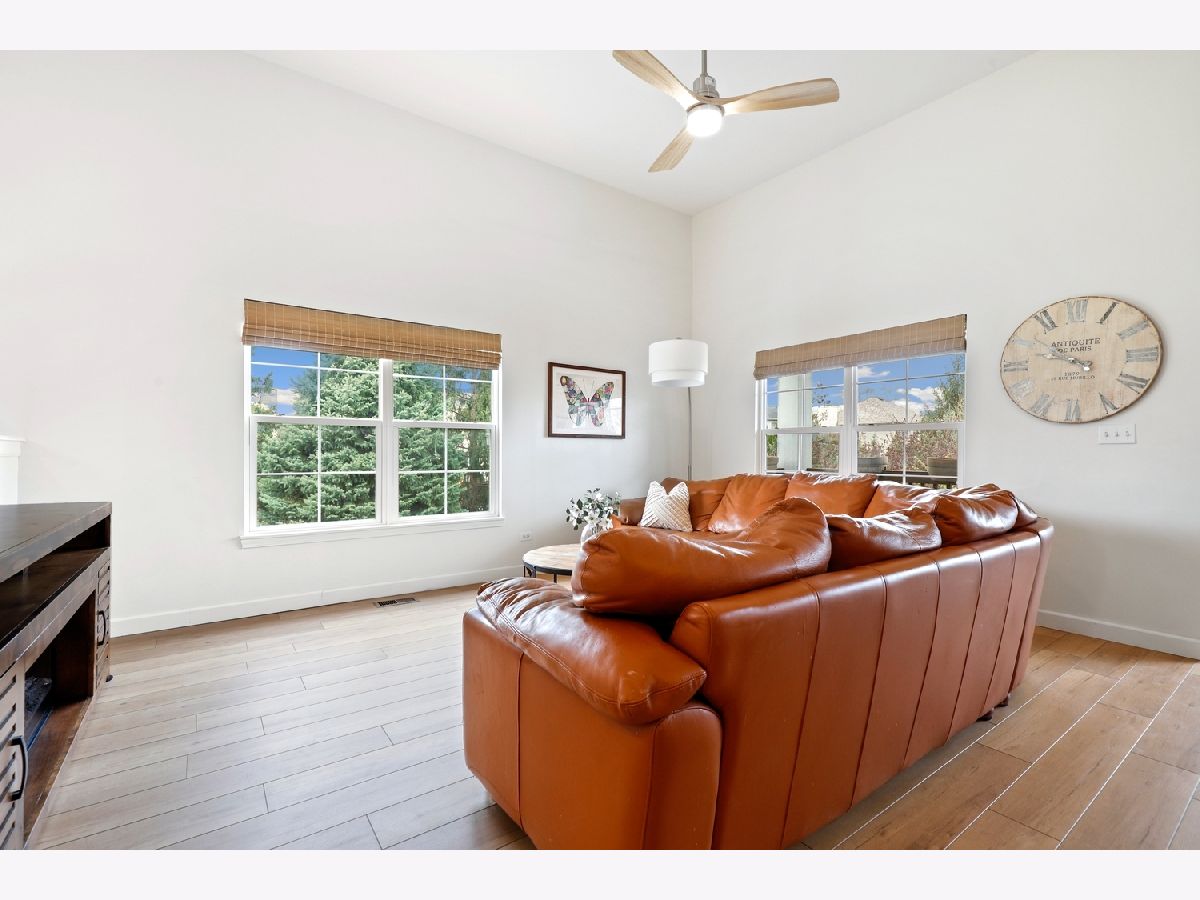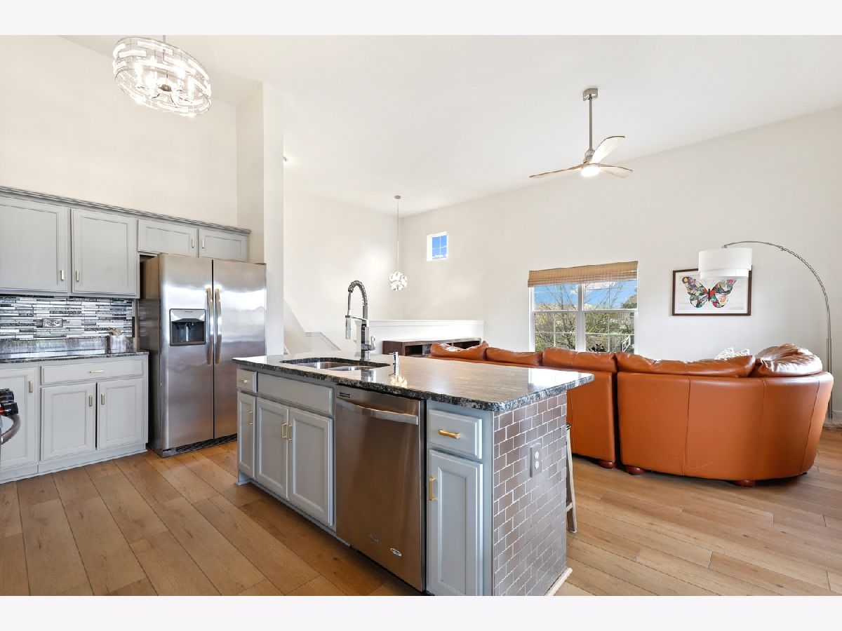 Welcome to this beautifully updated and spacious 2-bedroom, 2-bath end-unit townhome in desirable Arbor Creek, offering over 2,000 square feet of comfortable living space and a walkout basement. You'll love the open-concept layout featuring soaring ceilings and a stylish, modern kitchen complete with granite countertops, a large island, stainless steel appliances, 42" cabinets, and ample storage. The dining area opens to a charming wooden balcony, perfect for relaxing or entertaining. The sun-filled living room is bright and inviting, while the primary suite offers a private, updated bath with dual vanities and a generous walk-in closet. The walkout lower level boasts epoxy floors, a concrete patio, a storage area, and a dedicated laundry room with washer and dryer included (new in 2024). Enjoy brand-new luxury vinyl plank flooring throughout, plus recent updates including remodeled bathrooms, roof (2023), A/C (2023), Furnace (2022) and Water Heater (2018). All this in a prime location near the mall, Route 59 shopping, and with easy expressway access. Being sold As-Is - don't miss your opportunity to make this lovely home yours!