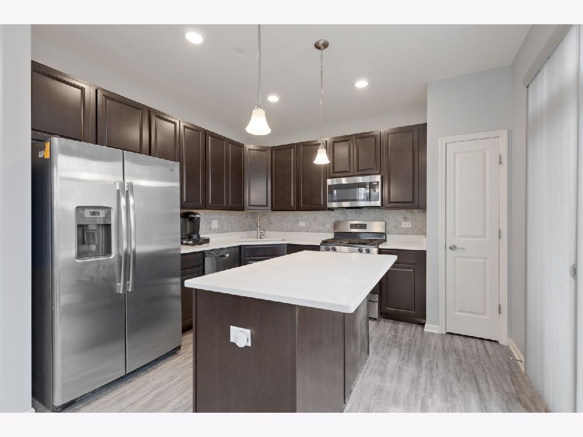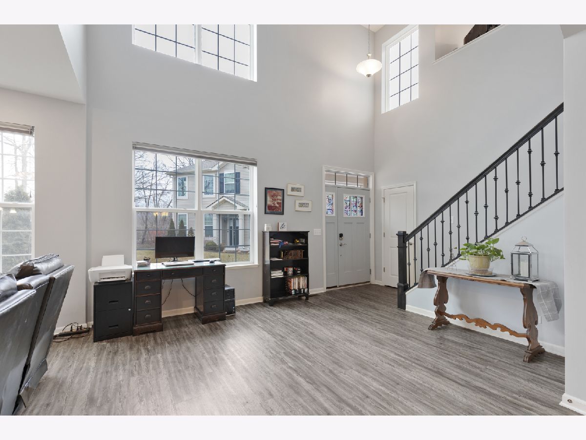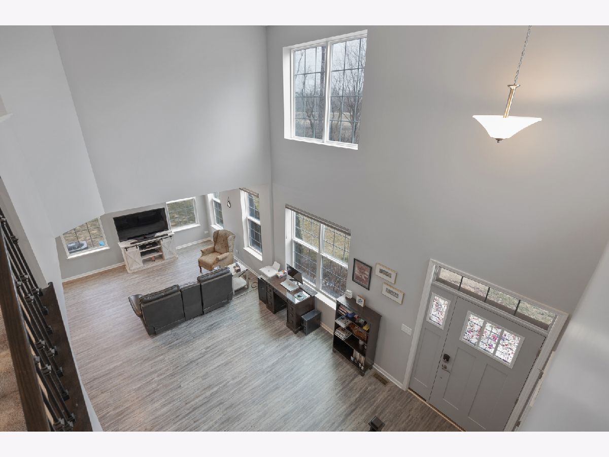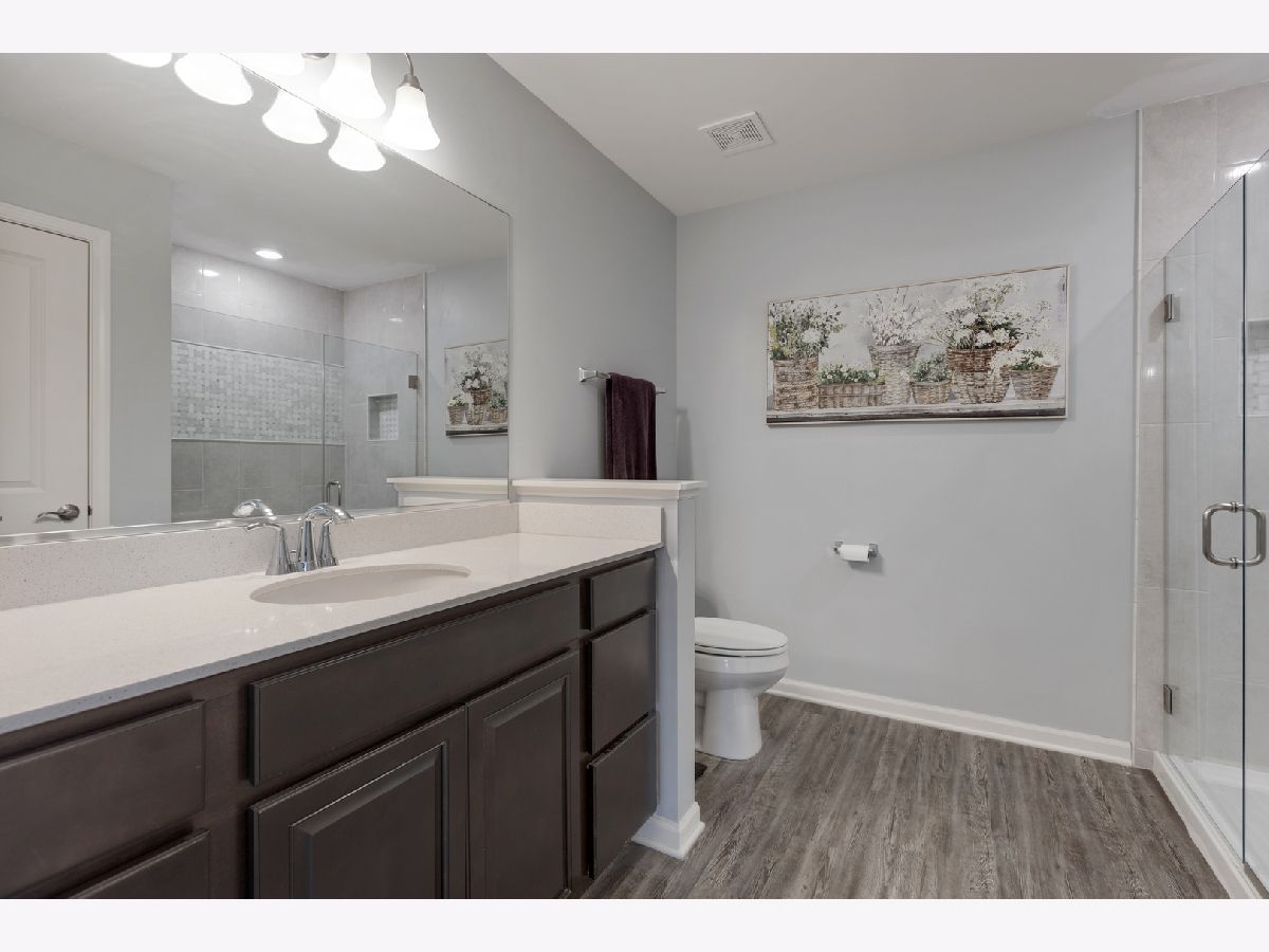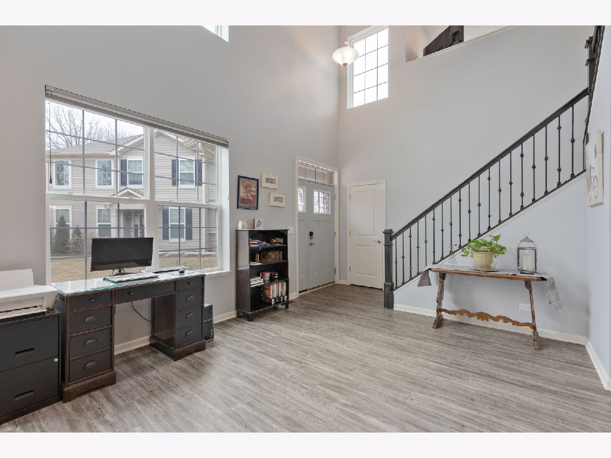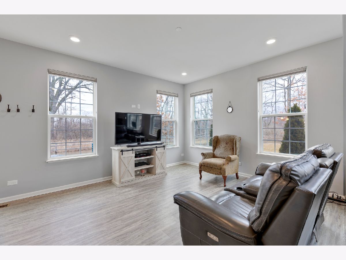 END UNIT on one of the best lots in the community! Enjoy the expanded stamped concrete patio looking out to a pretty wooded area. The big side yard is a bonus when you're entertaining or need space for the kids to play. So many sought after upgrades... luxury vinyl plank on entire main floor, 9 foot ceilings, 42" maple cabinets and white frost quartz in the kitchen, convenient breakfast bar that is open to the family room, GE stainless steel appliances, decorative wrought iron stair railings, white two panel doors throughout, video doorbell & Honeywell smart thermostat. The master bedroom is generously sized with an impressive walk in closet and en suite with a brand new tiled walk in shower & glass door. The loft works well for a home office, exercise room or play room and it has a lovely pond view. Prairie Common is minutes from shopping and very convenient to I-88.