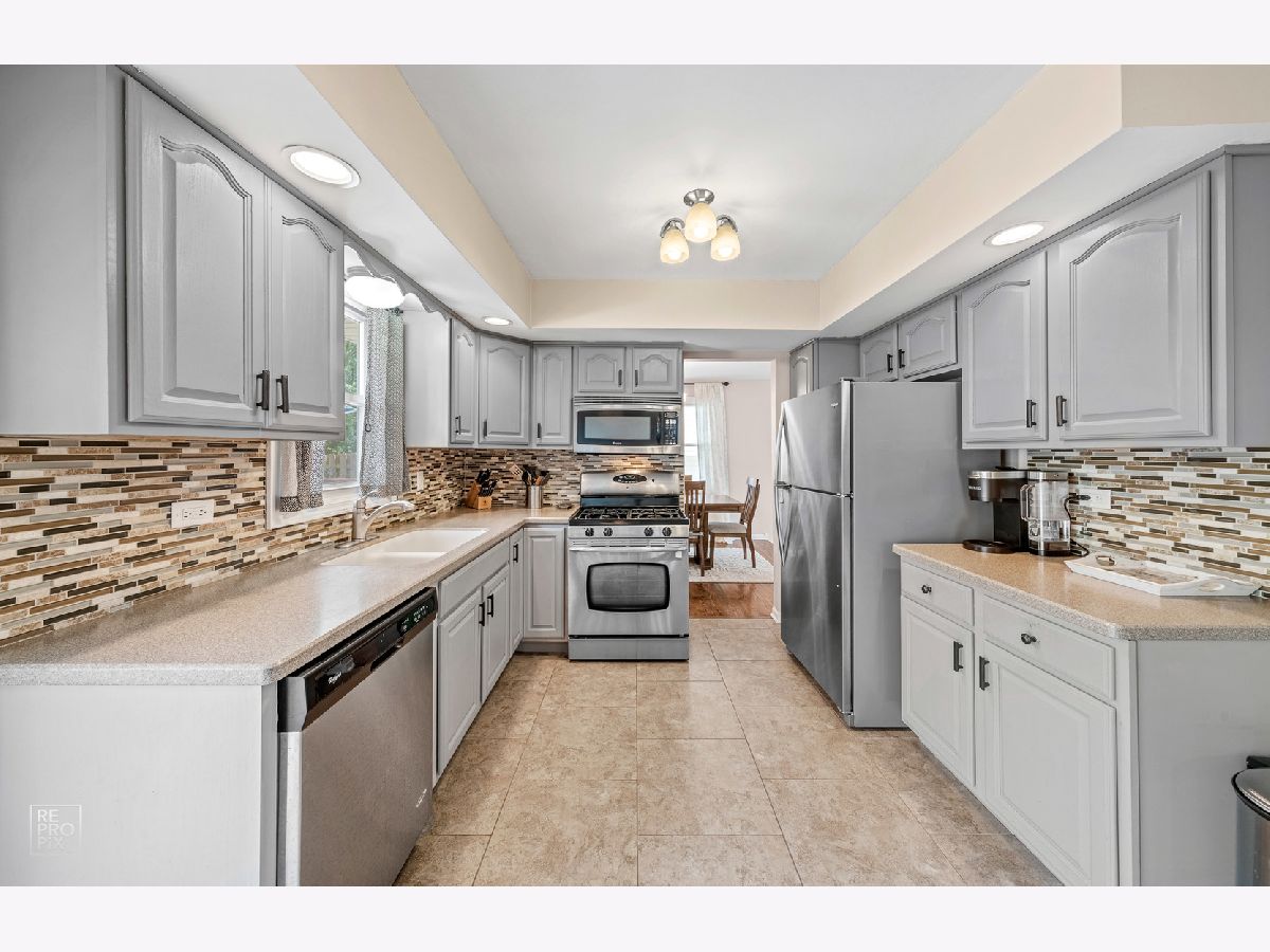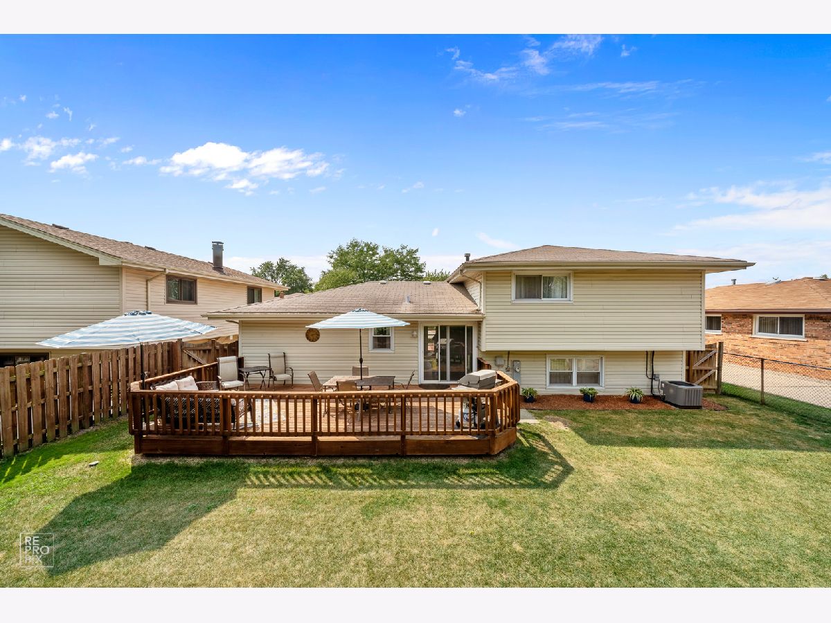 A truly move in ready home. Most everything in this home has been updated in the last few years, including newer a/c (2017), wooden feature wall in family room, dimmer light switches, updated hardwood flooring, tiling, carpeting, epoxy flooring in garage & more. Classic kitchen has been updated w/resurfaced cabinets, new back splash, solid surface counters, SS appliances. Modern bathrooms have been remodeled w/granite counters, stylish tiling, decorative vanities, barn style doors & matching fixtures. Spacious bedrooms w/good closet space while master bed has large walk in closet. Roof, siding, windows, patio door updated in last 10 years. Nice big fenced in yard w/storage shed, over sized deck & no neighbors in back, home backs up to greenhouse. Inviting front entrance w/brick pavers walkway & beautiful landscaping. 2 car attached garage w/additional parking space in driveway. Home has been meticulously maintained & cleaned. Great Tinley Park location, close to shopping, restaurants and schools.