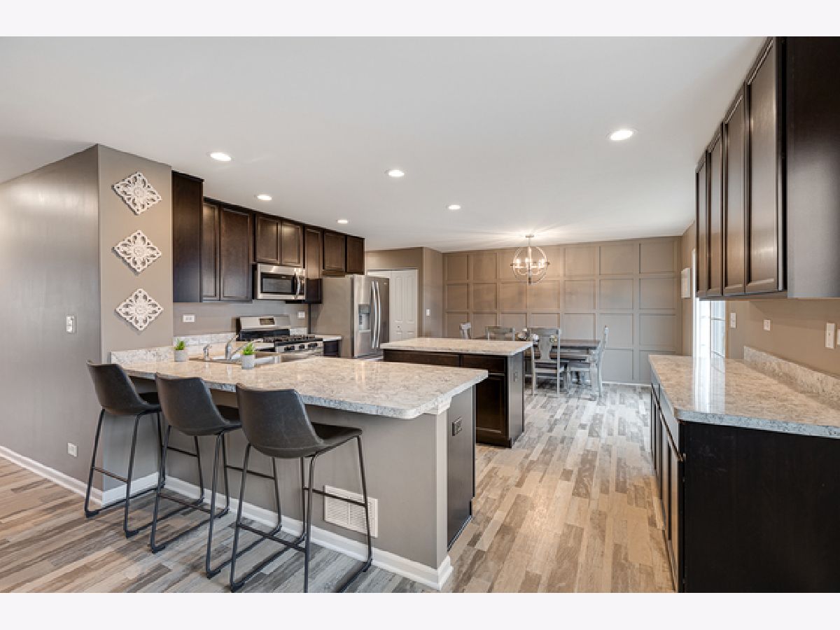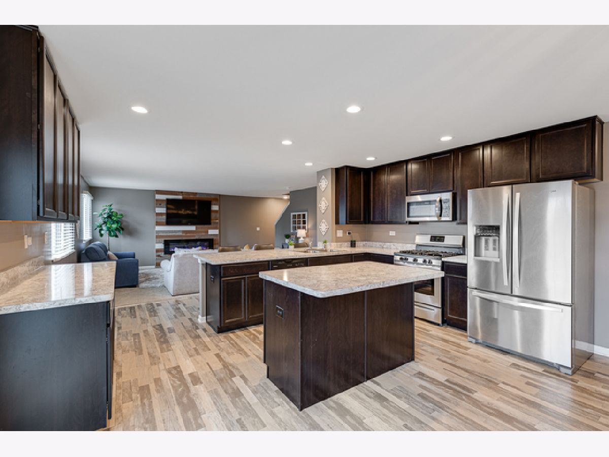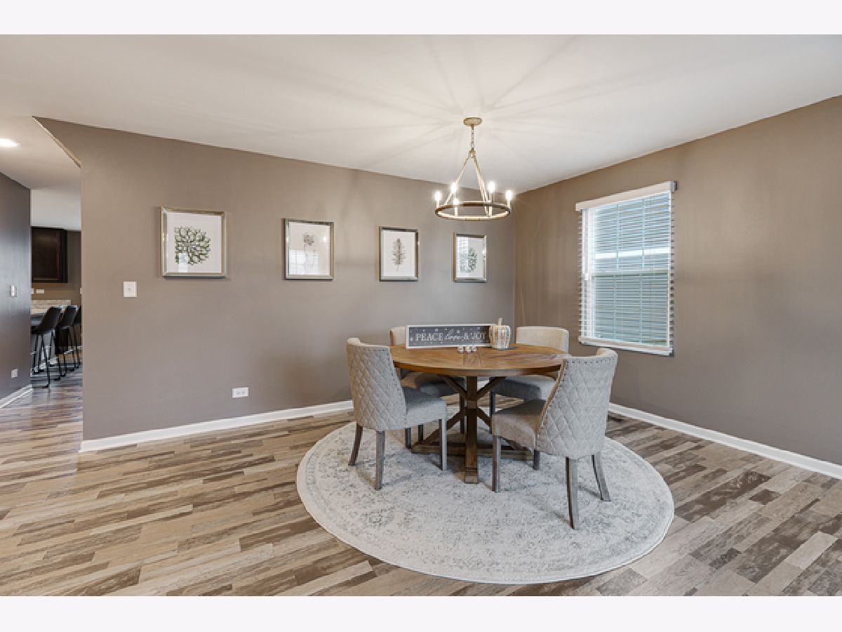 Stylish and chic home that is like brand new; fresh out of a designer magazine! Open spaces and a flowing layout make this a perfect home for anyone who loves to entertain! Beautiful custom color paint through out, high end wood laminate flooring with grain like detailing, white trim, and unique light fixtures! The main level boasts an expansive living/dining combo that leads to the open kitchen layout complete w/dark chocolate cabinetry, new s/s apps, eating area w/crown molding accent wall, recessed lighting, island & breakfast bar that peers into the cozy family room. Excellent area for guests to sit by the electric fireplace and mingle while dinner is cooking! 2nd level is comprised of a comfy loft, 3 spacious bedrooms, and a huge master suite + elegant private bath & WIC. Full unfinished english/lookout basement w/2 large windows! Fenced in backyard w/deck & patio! Great location close to forest preserves, dining options & schools!