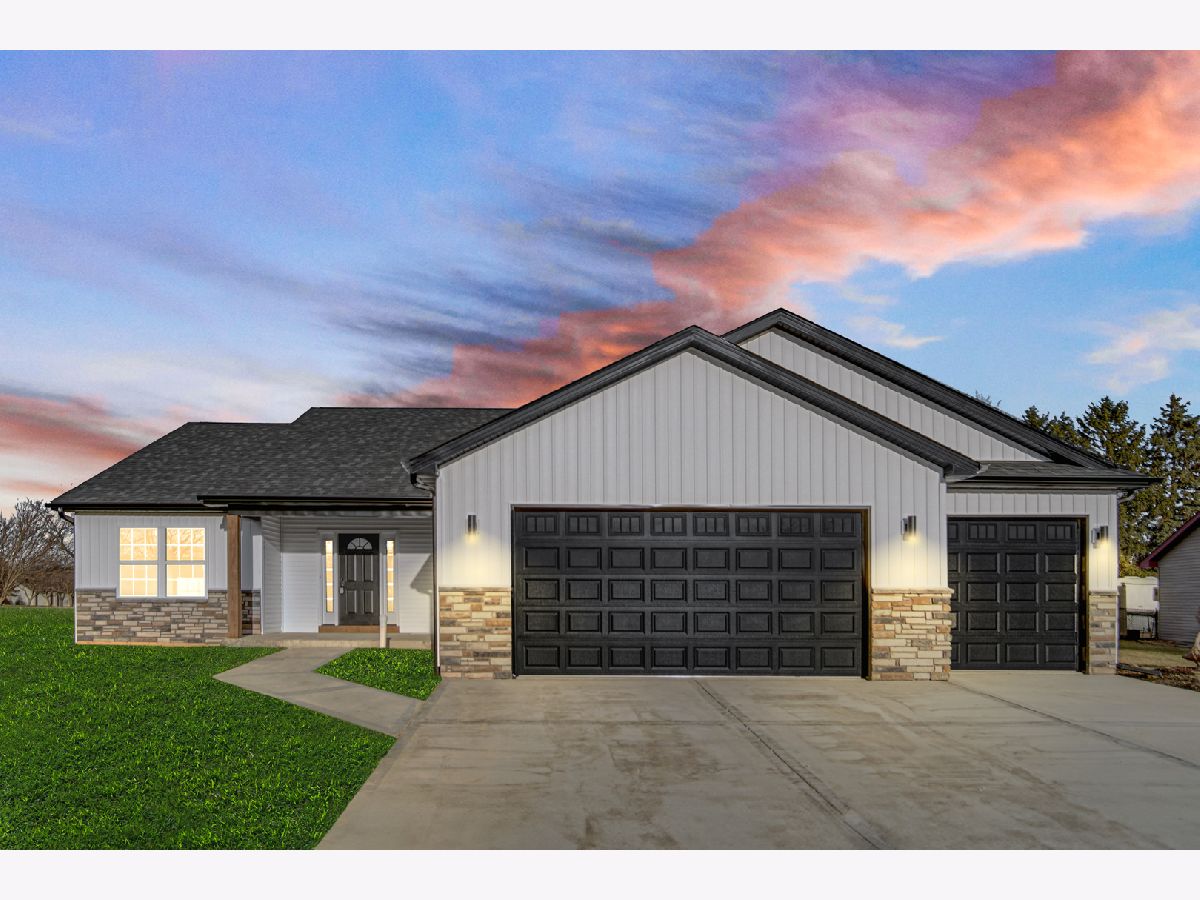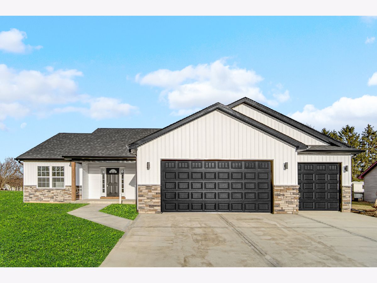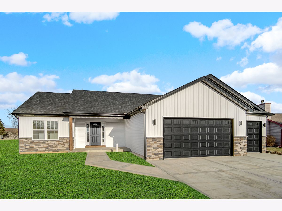 Welcome to your future new construction dream home nestled in the heart of Manteno! Ready to move in now! This beautifully designed 1,800 sq. ft. ranch home boasts an open-concept floor plan with soaring vaulted ceilings. Every detail is brand new, offering the perfect combination of style and function. The spacious kitchen features slow-close shaker cabinets, luxurious quartz countertops, and a striking quartz backsplash, complemented by brand-new Whirlpool stainless steel appliances. The living room is highlighted by a gorgeous accent wall, creating an inviting and contemporary space perfect for entertaining. Relax in the generously sized primary bedroom with his and hers closets and indulge in the luxurious ensuite with modern finishes! For added convenience, the home includes an attached 3-car garage and a full unfinished basement with plumbing already roughed in for a future bathroom, allowing for endless customization options. Situated on an oversized .69-acre premium lot in a quiet cul-de-sac, you'll enjoy both privacy and space to relax or entertain. This home is ideally located in the heart of downtown Manteno, offering easy access to great schools and convenient commuting options. Don't miss the opportunity to make this stunning, brand-new home yours today!