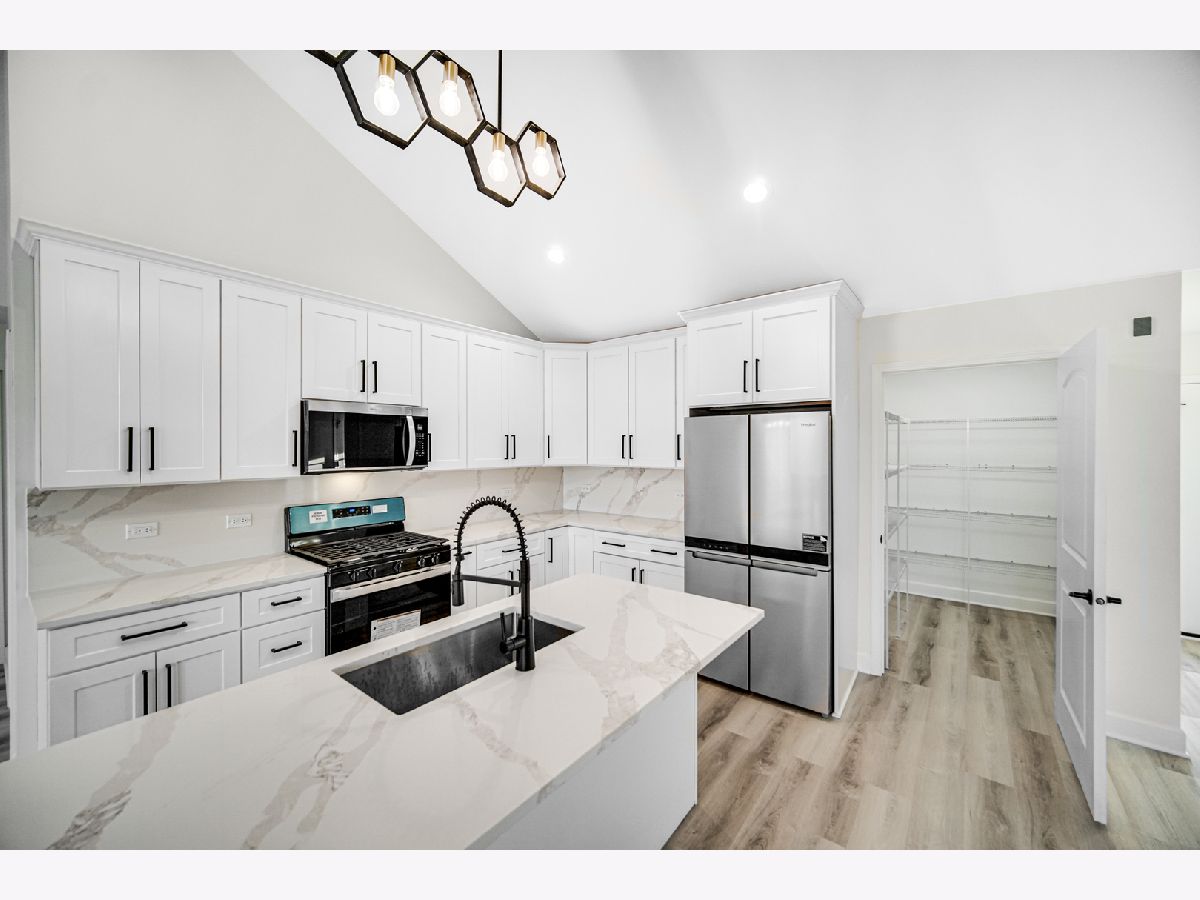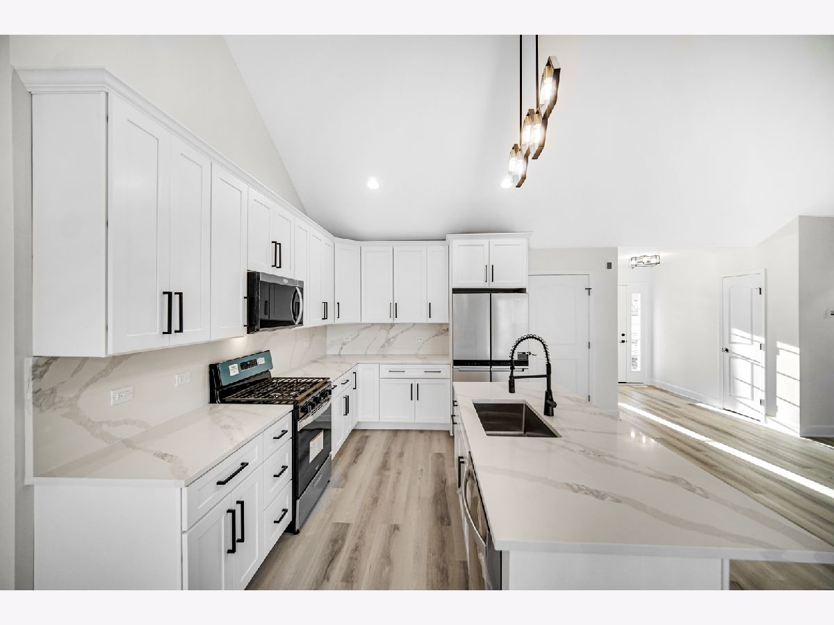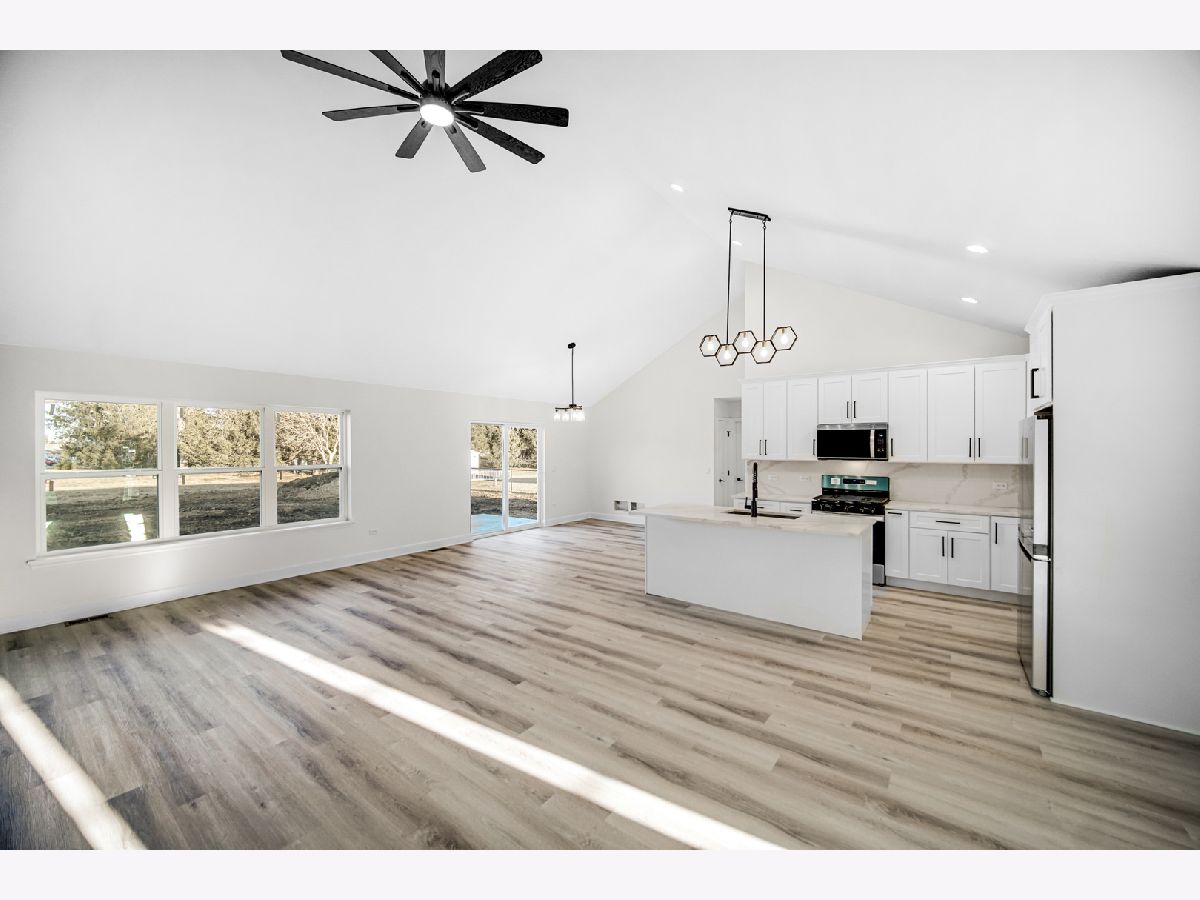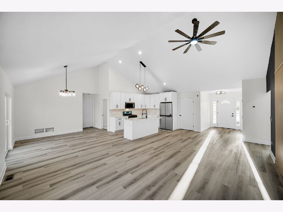 Welcome to your future new construction dream home nestled in the heart of Manteno! Ready to move in now! This beautifully designed 1,800 sq. ft. ranch home boasts an open-concept floor plan with soaring vaulted ceilings. Every detail is brand new, offering the perfect combination of style and function. The spacious kitchen features slow-close shaker cabinets, luxurious quartz countertops, and a striking quartz backsplash, complemented by brand-new Whirlpool stainless steel appliances. The living room is highlighted by a gorgeous accent wall, creating an inviting and contemporary space perfect for entertaining. Relax in the generously sized primary bedroom with his and hers closets and indulge in the luxurious ensuite with modern finishes! For added convenience, the home includes an attached 3-car garage and a full unfinished basement with plumbing already roughed in for a future bathroom, allowing for endless customization options. Situated on an oversized .69-acre premium lot in a quiet cul-de-sac, you'll enjoy both privacy and space to relax or entertain. This home is ideally located in the heart of downtown Manteno, offering easy access to great schools and convenient commuting options. Don't miss the opportunity to make this stunning, brand-new home yours today!