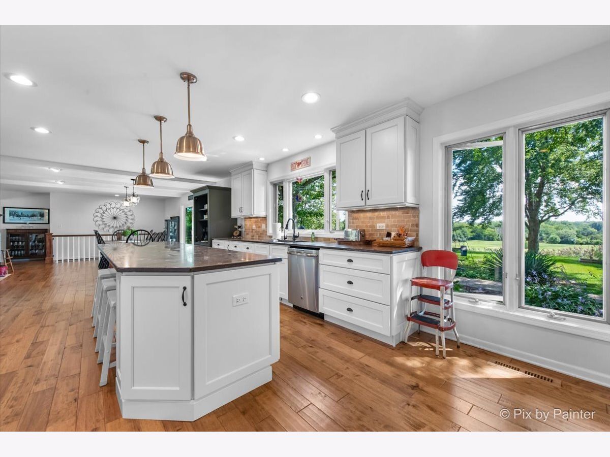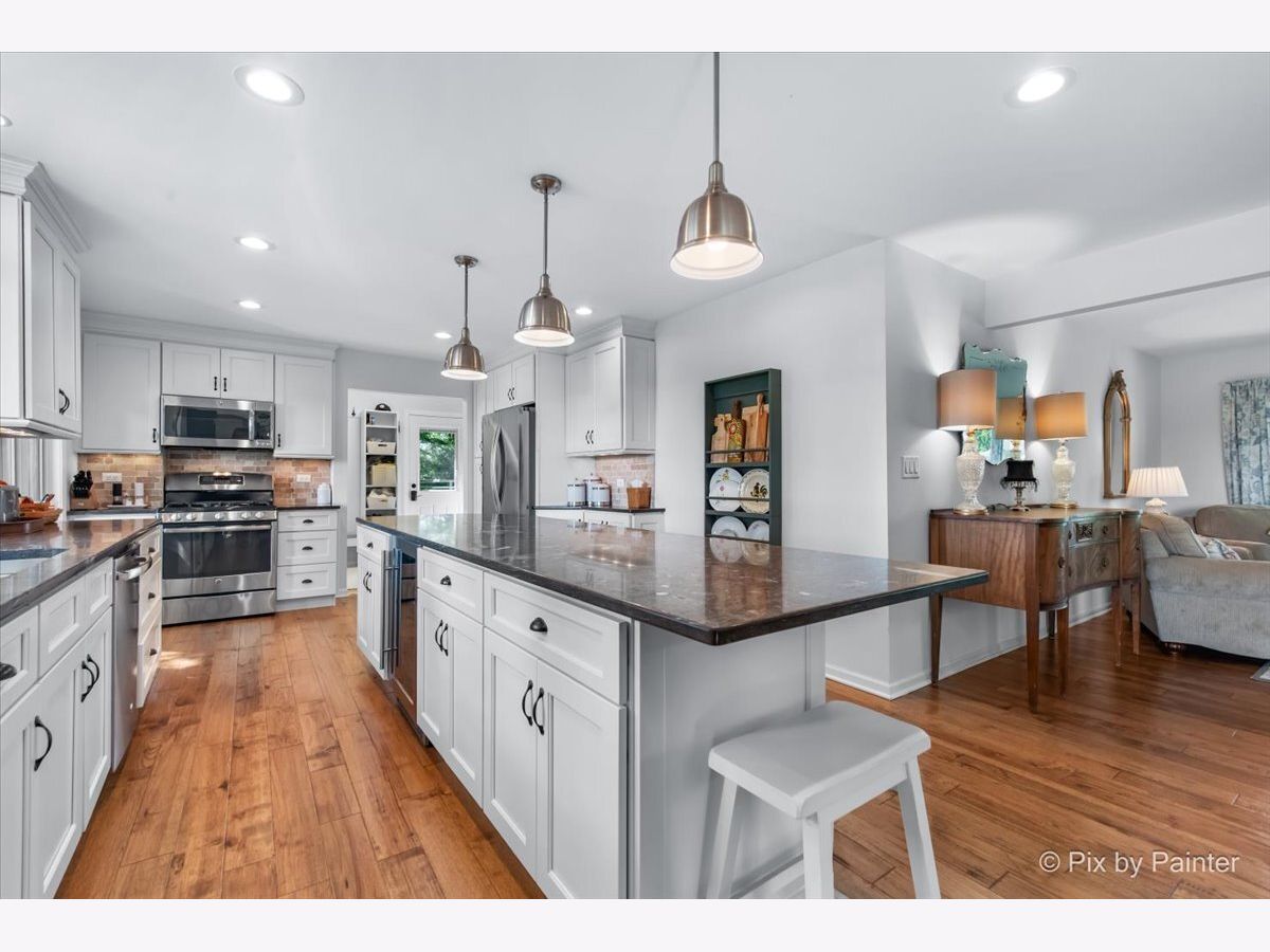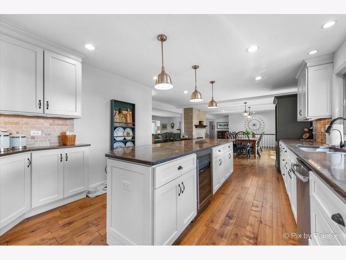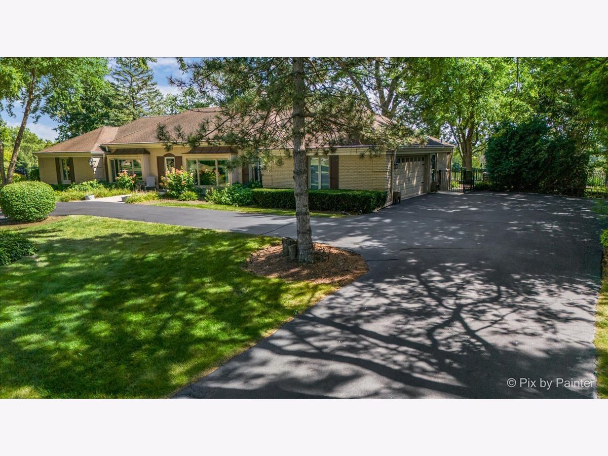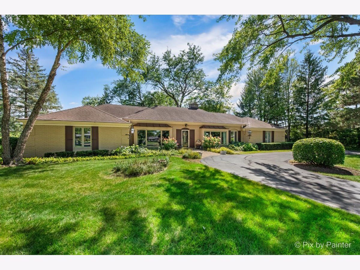**MILLION DOLLAR VIEWS** Whether you love to golf or not, this lot is definitely BREATHTAKING! Approximately just over 2/3 acres backing to Makray Golf Course! The BEST part is that the home is situated back from the course, so no worries about golf balls even coming near your home! Once inside, the views are AMAZING!! Perfect for entertaining on the custom & expanded brick paver patio with side lights, firepit & walls (prior deck has been completely removed & replaced with brick in 5/2018)! Separate & large wrought iron fenced area - great for dog run or to keep kids safe for playing! Drive up to the circular driveway with a side load garage & side driveway to explore all this brick ranch home offers! Home is completely remodeled, including professionally removing walls to create an OPEN FLOOR PLAN! Main level with new hardwood floors (in 4/2015) in living, dining, kitchen & hall! Newer carpeting in all 3 bedrooms (in 1/2017)! Enjoy the living room with the 2 sided wood burning fireplace to the dining room! HUGE bay windows in both living & bedroom (currently used as an office)! Dining area with GORGEOUS views through the newer expanded sliding glass doors (in 5/2018) that open to the patio! Kitchen has been completely gutted & restructured (in 4/2015) to accommodate today's needs including plenty of all custom cabinets with crown moldings, unique granite countertops, reverse osmosis (in 4/2015), expansive kitchen island with beverage fridge, a large seating area & copper lighting, built-ins, recessed lighting, stainless appliances with new refrigerator (in 7/2024), stone backsplash & large window over sink to enjoy those beautiful views! Laundry room off of kitchen with new washer (4/2024) & dryer (7/2023)! If you think that you are already in love, just step into the spacious master/primary bedroom that that leads to the private bathroom with a huge walk-in closet! (The prior 4th bedroom was reconfigured and remodeled to create this spacious bathroom.) All done in 4/2016 with a double sink white vanity & porcelain floors, plus plenty of storage and dresser areas for everything that you can ever think of or need room for! In addition there is a large stand alone new soaker tub, huge glass stand up shower with built-ins & 2 separate shower heads! The the large walk-in closet offers even more options for storage! Not to mention the private toilet area with even more privacy & storage! ALL 3 bedrooms are oversized including the huge picture window (currently used as an office) to enjoy the beauty that nature brings into the home! The FULLY gutted, walls sealed & remodeled (in 2/2022) ginormous FULL basement (adds another FINISHED 1700 SF) is brightly lit loaded with recessed lights, has luxury vinyl plank flooring & carpet - wonderful for entertaining large parties! Enjoy the original mid-century glass block bar & a 2nd bar area has an extra sitting area great for all your guests! The rec room is also great for watching all those movies or sport events! There are many more surprises at the other side of the basement which offers a gutted and redone bathroom (in 2/2022) with its own toilet & urinal area ;-) PLUS behind the doors there is a lot of storage areas so no need to worry about where to put everything! To top it off, many of the big ticket items have been done: plumbing, electric & ejector pit replaced (in 4/2015), water softener in (4/2016), sump pump (in 7/2020), water heater & septic box with new lines (in 1/2022), furnace, central air & (in 2/2022), new air pump in (6/2023)! The 2 car side load garage with newer garage door opener (in 1/2017) & garage door springs (in 7/2020) also has easy access directly inside the home with new side door (in 7/2024)! (LOOK UP THE PRIOR PHOTOS TO SEE THE TREMENDOUS CHANGES MADE TO THIS HOME!) The OTHER BEST part is that it is approximately only 1.5 miles to downtown Barrington: Metra Train Station, shopping, restaurants & theater! *HIGHEST & BEST DUE 10:00 PM ON 9/9/25**