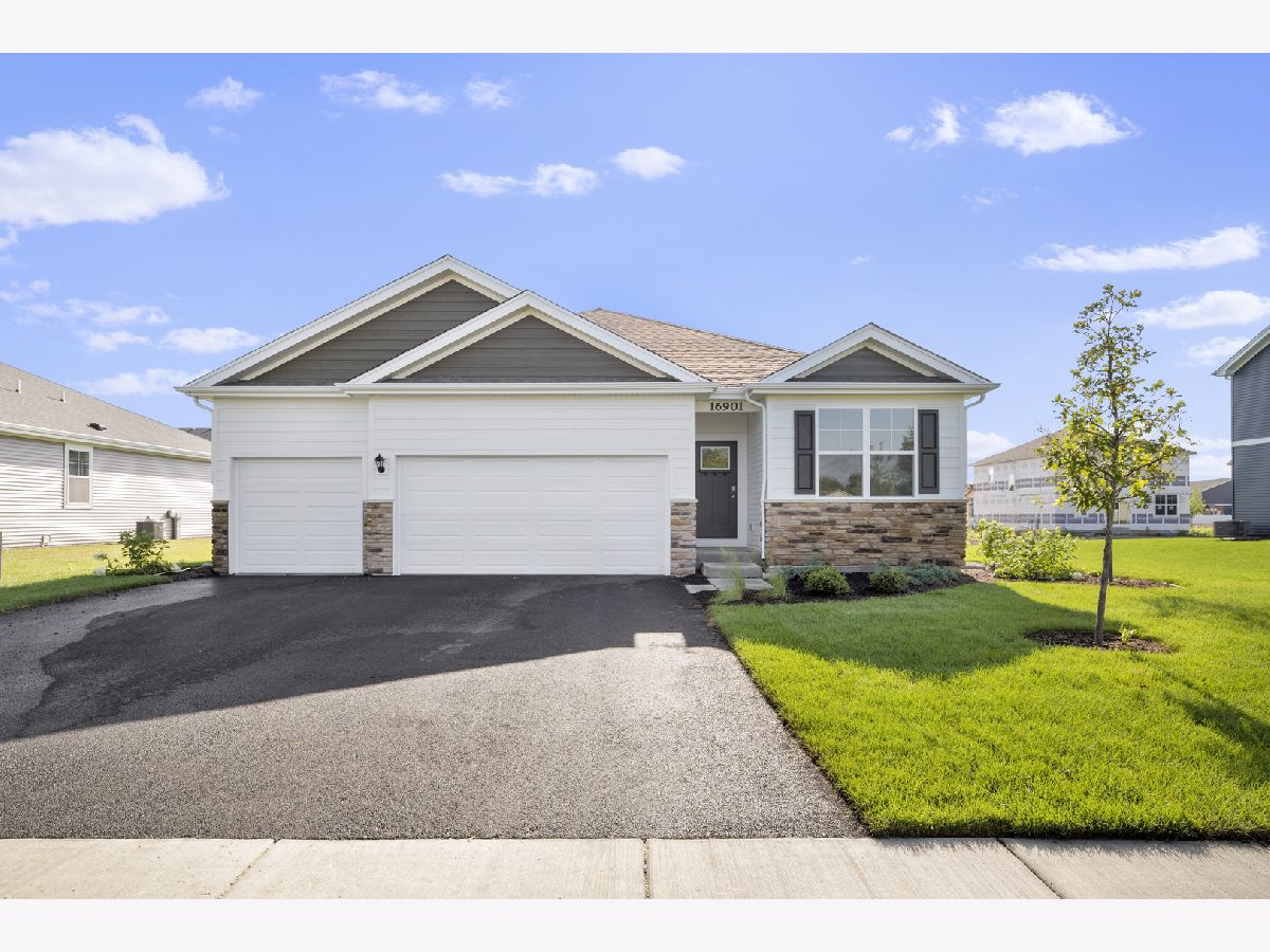 Stunning stone/brick accents, large windows and architectural shingles set the stage for this stunning 4 bedroom, 2 full bath and 3 CAR GARAGE RANCH home! Placed on over a 1/4 acre, with both a FULLY SODDED and landscaped YARD, this single-story home is a must see! You'll love all the not so standard premium features the Fairfield home plan offers. Entering the bright and spacious foyer is just the beginning! Let the 9' CEILINGS lead the way! The spacious OPEN CONCEPT kitchen makes entertaining a breeze; featuring a COOK'S DREAM KITCHEN, equipped with timeless designer cabinetry, a WALK-IN PANTRY, QUARTZ countertops and a large kitchen ISLAND! Enjoy your meals in the breakfast area or on the 15' x 8' private COVERED BACK PATIO! Three secondary bedrooms and a full bath accompany a large retreat. The ENSUITE showcases a comfort height DUAL VANITY, private WATER CLOSET and huge WALK-IN CLOSET! Saving the large additional 1550 square foot basement ready for you to personalize with an open wall and carpeted stairs leading to the best surprise in this gorgeous ranch! Sleep well knowing all #DR Horton homes in Chicagoland offer Smart home technology and a 1, 2, & 10 year Home Warranty. Schedule an appointment today!