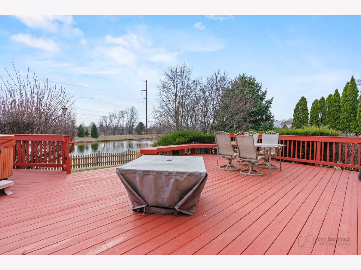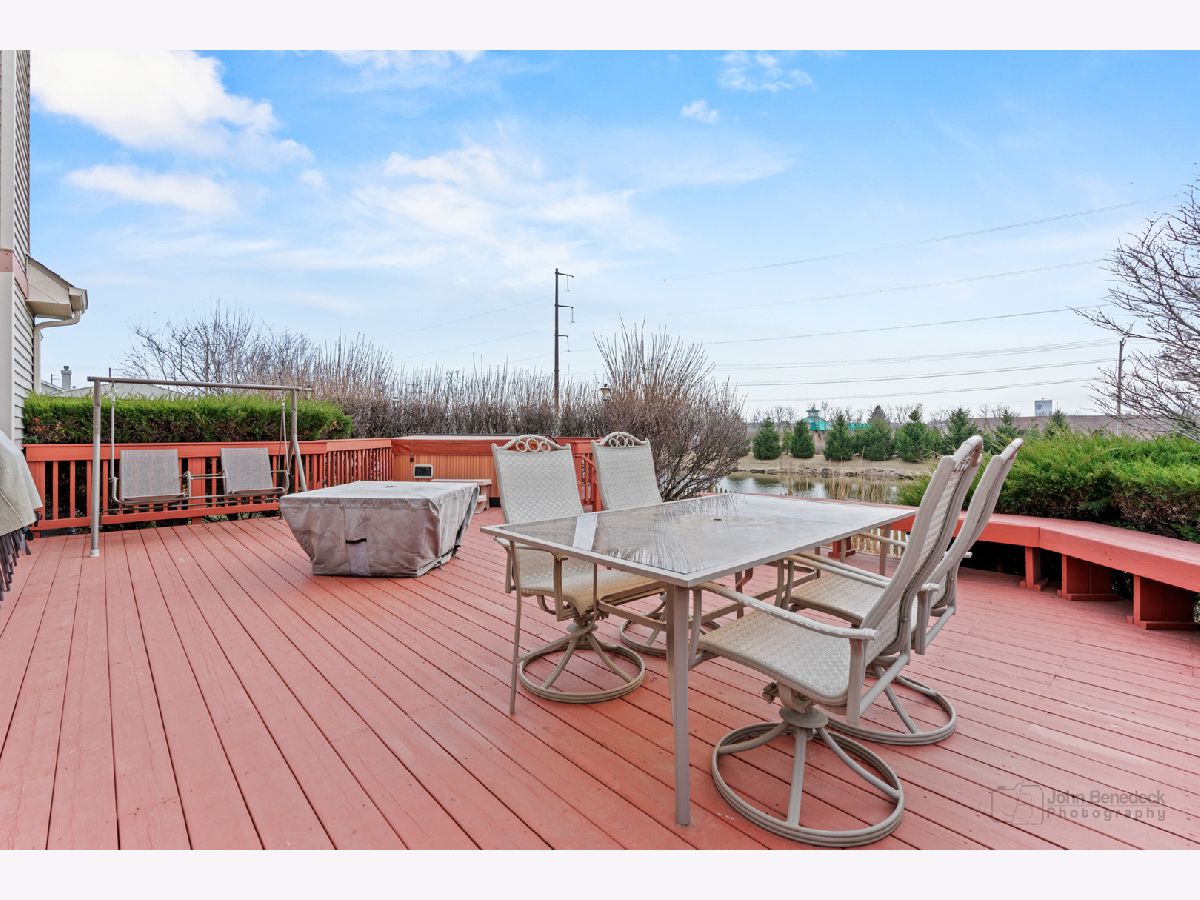 Welcome home to this charming 3-bedroom, 2.5-bathroom retreat, nestled on a picturesque lot with serene pond views. From the moment you step inside, you're welcomed by soaring cathedral ceilings and an abundance of natural light streaming through the expansive windows. The main level features luxury vinyl flooring, adding warmth and elegance throughout. Gather in the expanded family room, where a cozy fireplace invites you to relax, or work from home in the dedicated office space. The kitchen and dining areas flow effortlessly, making entertaining a breeze. Upstairs, you'll find three spacious bedrooms, plus a versatile loft that could easily become a fourth bedroom. The primary suite is a true retreat, offering a walk-in closet and a private ensuite bathroom. Looking for extra space? The unfinished basement provides endless possibilities-storage, a home gym, or your dream design project. Step outside to your fully fenced backyard, complete with a deck and hot tub, perfect for enjoying peaceful pond views. The sprinkler system keeps your lush lawn looking its best year-round. This home is the perfect blend of comfort, functionality, and charm-don't miss your chance to make it yours! Recent updates include Roof in 2019, windows (transferable warranty) 2023, water heater 2024, new wood laminate flooring on main level in 2017 & 2024. Nordic Track treadmill also included in sale.
