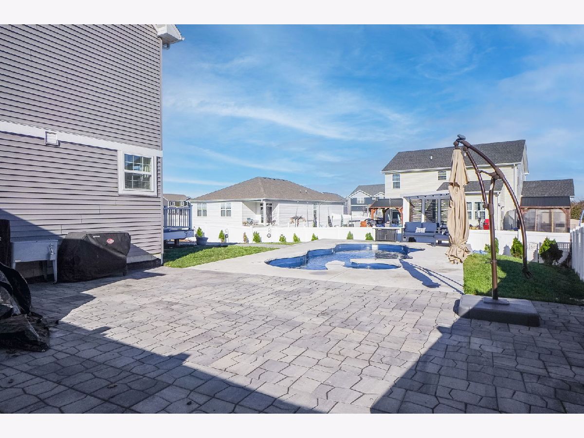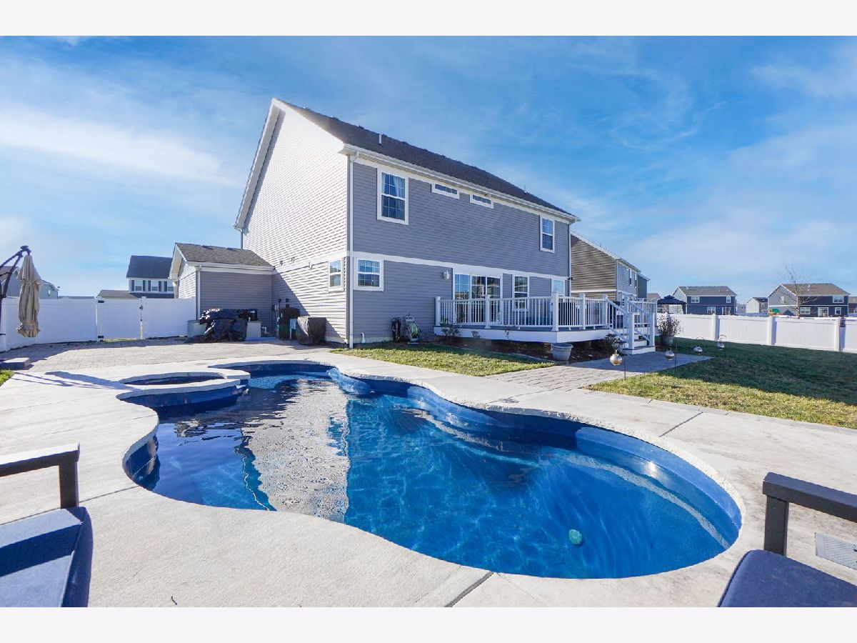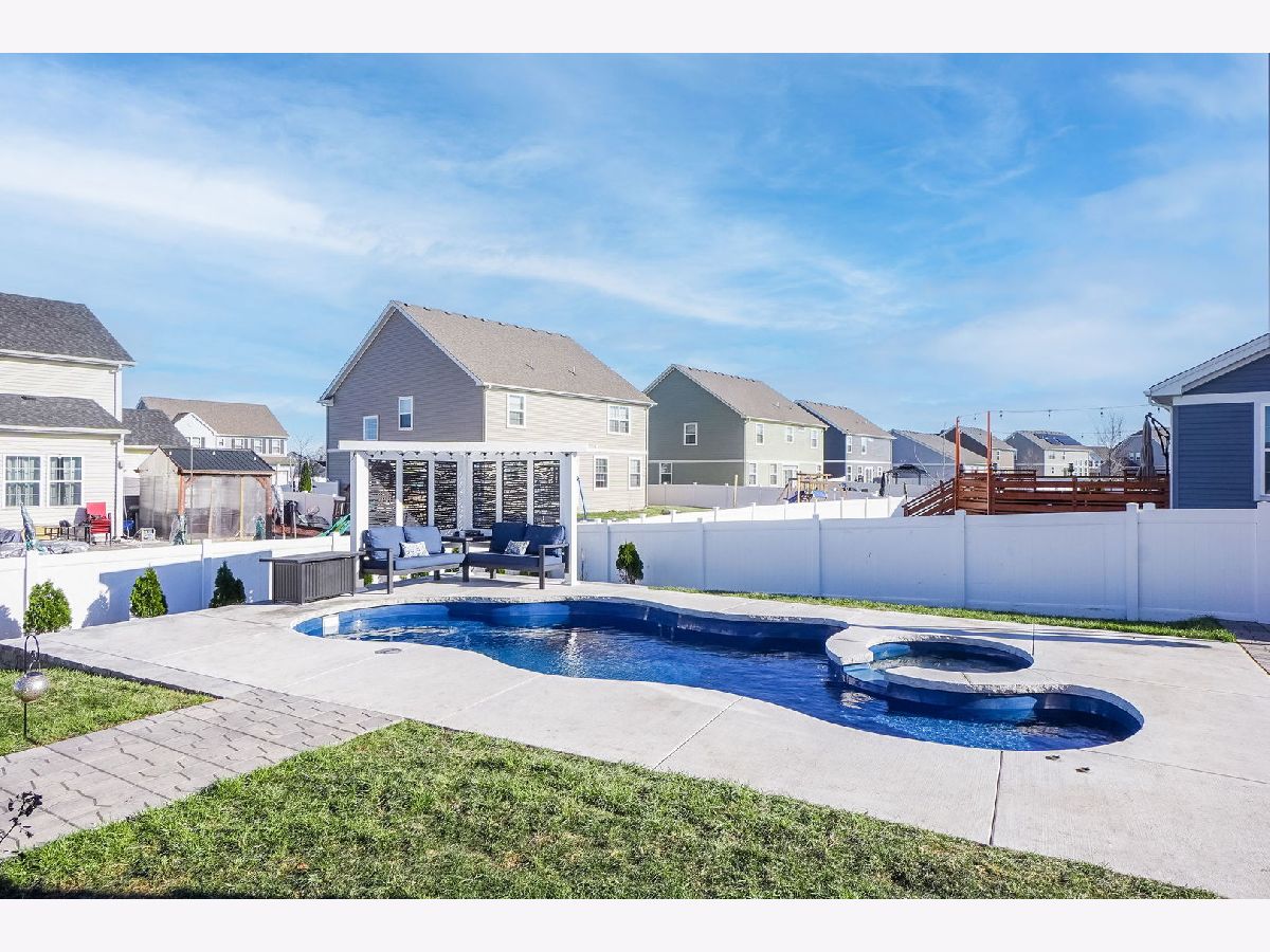 Don't wait for new construction when you can get this upgraded finished 4 bedroom home that is an entertainers dream! The open concept layout offers a huge living room and dining room with upgraded light fixture. The family room overlooks the amazing kitchen with loads of contemporary grey cabinets, upgraded lighting, a large island, walk-in pantry and outfitted with all stainless steel appliances that stay. The kitchen also allows for a large eat-in table that overlooks the approximate 16 x 24 Trex deck, a perfect spot for a quiet dinner or large party. From the deck you can move down to the fully fenced yard and the approximate 27 x 25 patio to take in and enjoy the brand new in-ground salt water pool with built-in hot tub that includes the pergola with built-in seating. Back yard also comes with removable raised garden beds. Summers will never be the same with all the enjoyment you'll get in this back yard. Back inside the home you can spread out upstairs with the large loft that could be closed in for a 5th bedroom or used for a 2nd family room or kids play room. The master suite offers 2 walk-in closets, overhead lighted ceiling fan and master bath with dual sink vanity, linen closet and walk-in shower. 3 additional spacious bedrooms have ample closet space and overhead lighting. Guest bath offers tub/shower combo with transom window as well as a dual sink vanity. The convenient 2nd floor laundry room also comes with a washer and dryer that stay. If you're hoping for lots of storage space or more space to grow in this home you can have it with the full unfinished basement. There are endless possibilities of use in the basement. In addition to all the home has to offer it also has a 3-car garage to keep your cars nice and dry during the winter months. Home is located just minutes from the clubhouse and community waterpark. It is also a short few minute drive to downtown Plainfield where you can enjoy a variety of restaurants, shops, bars and community events like parades and car shows.