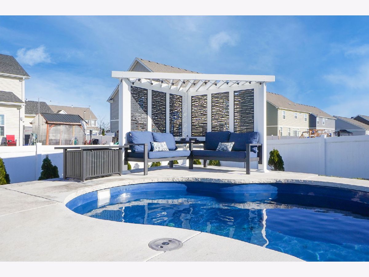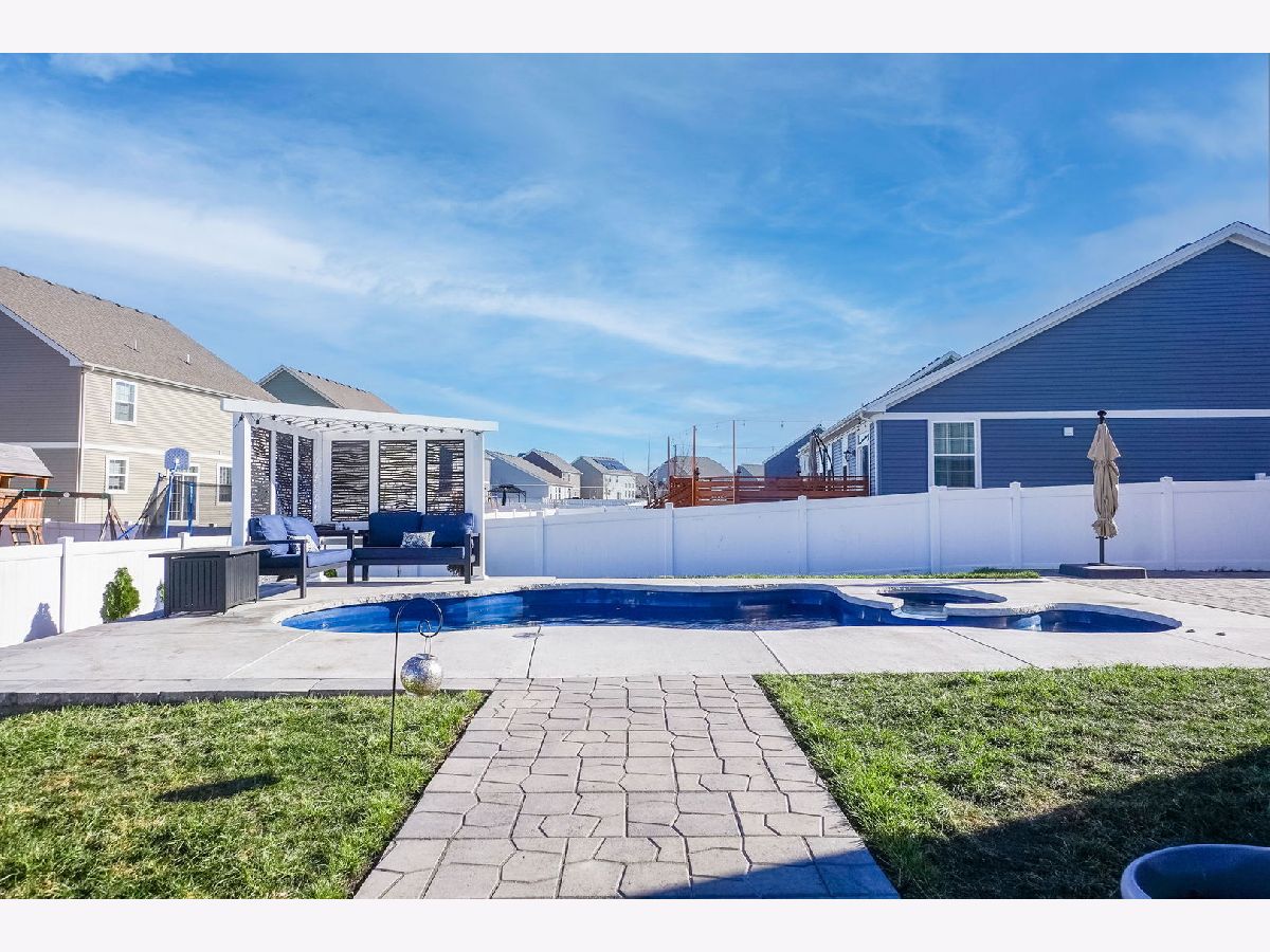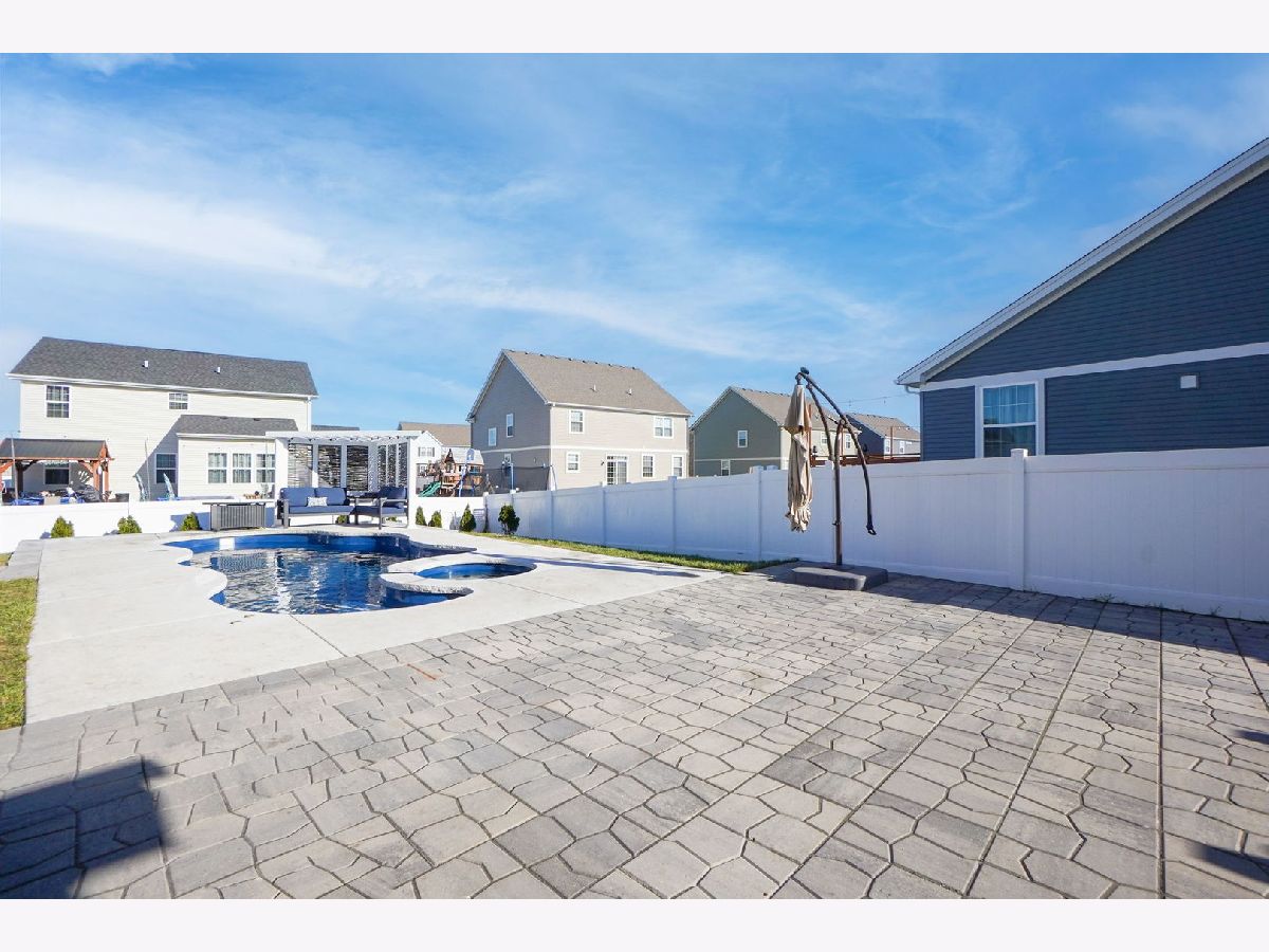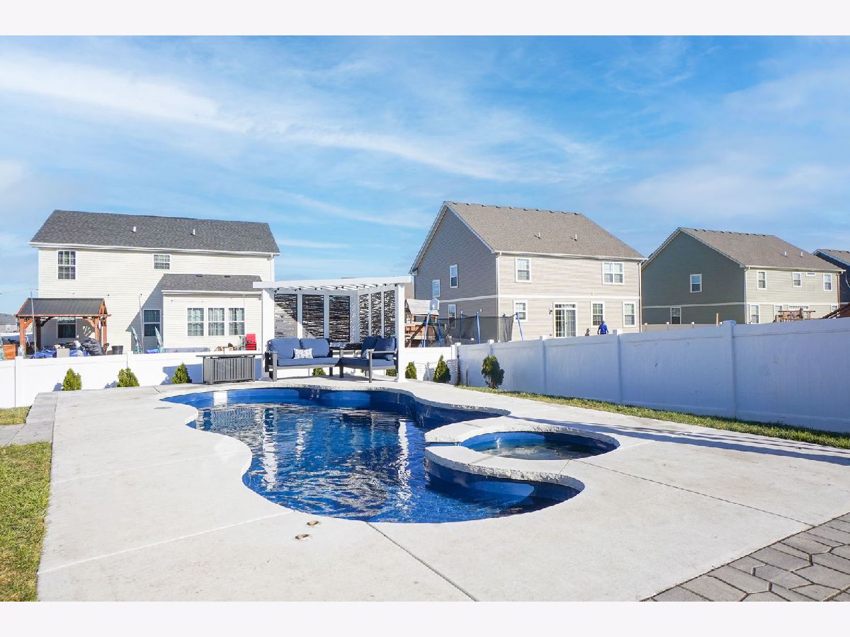Don't wait for new construction when you can get this upgraded finished 4 bedroom home that is an entertainers dream! The open concept layout offers a huge living room and dining room with upgraded light fixture. The family room overlooks the amazing kitchen with loads of contemporary grey cabinets, upgraded lighting, a large island, walk-in pantry and outfitted with all stainless steel appliances that stay. The kitchen also allows for a large eat-in table that overlooks the approximate 16 x 24 Trex deck, a perfect spot for a quiet dinner or large party. From the deck you can move down to the fully fenced yard and the approximate 27 x 25 patio to take in and enjoy the brand new in-ground salt water pool with built-in hot tub that includes the pergola with built-in seating. Back yard also comes with removable raised garden beds. Summers will never be the same with all the enjoyment you'll get in this back yard. Back inside the home you can spread out upstairs with the large loft that could be closed in for a 5th bedroom or used for a 2nd family room or kids play room. The master suite offers 2 walk-in closets, overhead lighted ceiling fan and master bath with dual sink vanity, linen closet and walk-in shower. 3 additional spacious bedrooms have ample closet space and overhead lighting. Guest bath offers tub/shower combo with transom window as well as a dual sink vanity. The convenient 2nd floor laundry room also comes with a washer and dryer that stay. If you're hoping for lots of storage space or more space to grow in this home you can have it with the full unfinished basement. There are endless possibilities of use in the basement. In addition to all the home has to offer it also has a 3-car garage to keep your cars nice and dry during the winter months. Home is located just minutes from the clubhouse and community waterpark. It is also a short few minute drive to downtown Plainfield where you can enjoy a variety of restaurants, shops, bars and community events like parades and car shows.