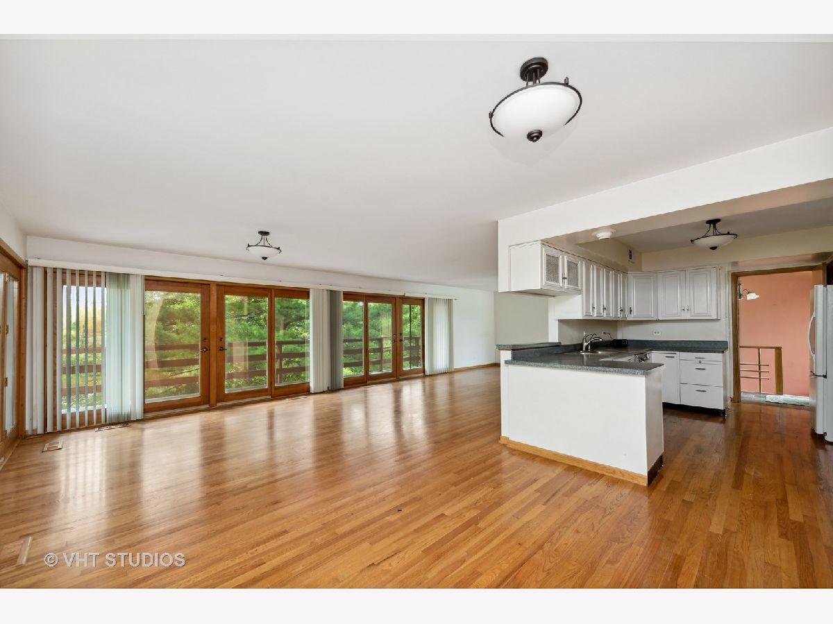MULTIPLE OFFERS RECEIVED Highest and Best Due 8/21 6:00PM. California Style Hillside Ranch set high on a hill on just over a half acre with multiple-tiered decks overlooking the back yard with beautiful, mature trees on a quiet tranquil cul-de-sac just minutes from downtown East/West Dundee. Sprawling with over 2900 square feet and full of potential! The many windows immerse you in the nature that surrounds the home. Enter into a welcoming foyer with plank ceiling, stone flooring, spacious open living areas with sliders to the second level deck and out to a three season room. The lower walkout is accessed by the open staircase in the foyer down to the entertaining area with fireplace/wood burning stove and a wall of slider doors to a full deck spanning the entire length of the home. Also in the lower level are two additional bedrooms, a full bath and laundry area. All four bedrooms have sliders to the deck area. The master en suite features a walk-in closet with an additional cedar closet. Every season showcases beautiful views of the trees, designed in 1968 with both entertaining and communing with nature in mind. Home sold in as is condition. No information is available as to condition/ages of mechanical systems, roof, appliances etc as this is an estate sale. Close to shopping, restaurants, Metra, highway.